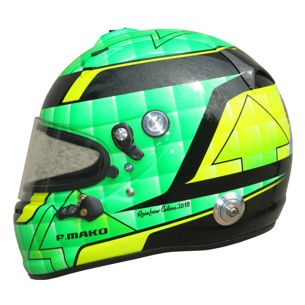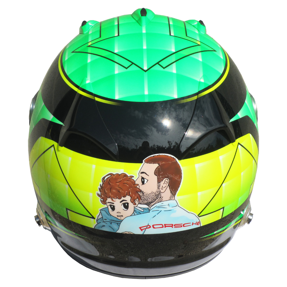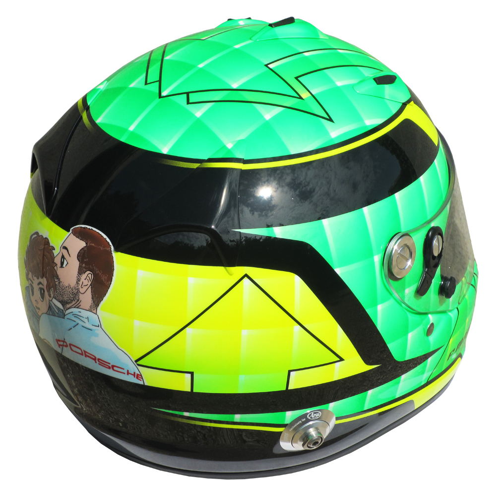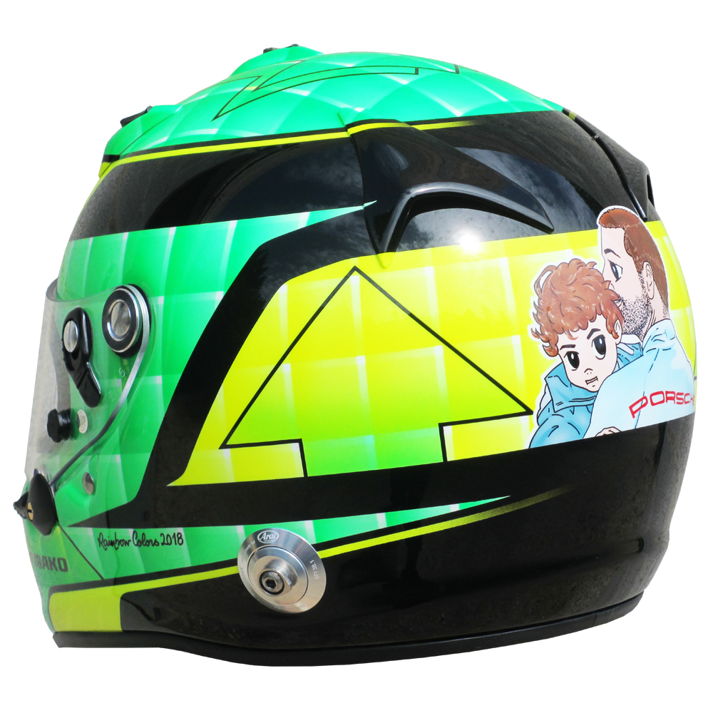 Circuit 2018 Frédéric MAKOWIECKI #1 Casque Arai GP6 RC, peint par Christian Roux / Rainbow Colors en 2018 pour Frédéric Makowiecki, Team Porsche, 24 h du Nurburgring. Précédent Suivant