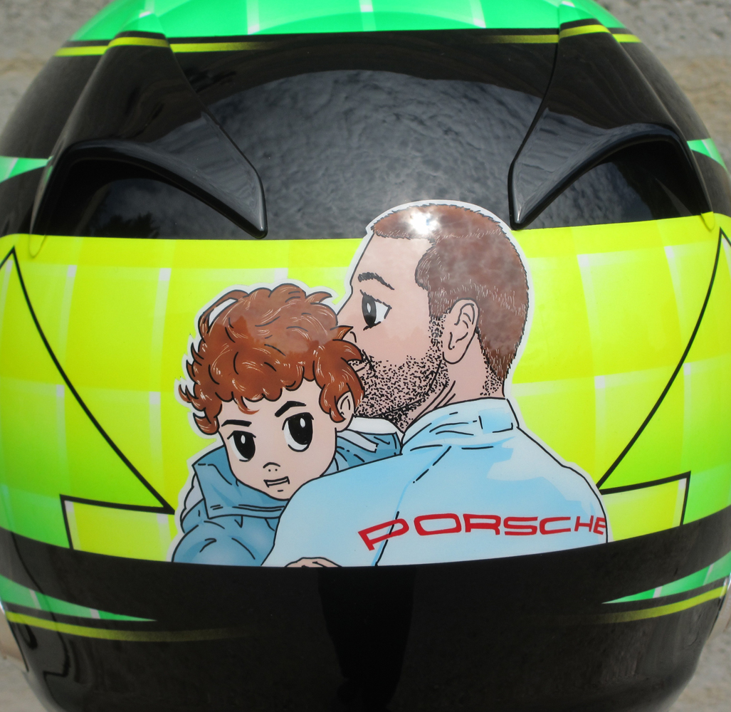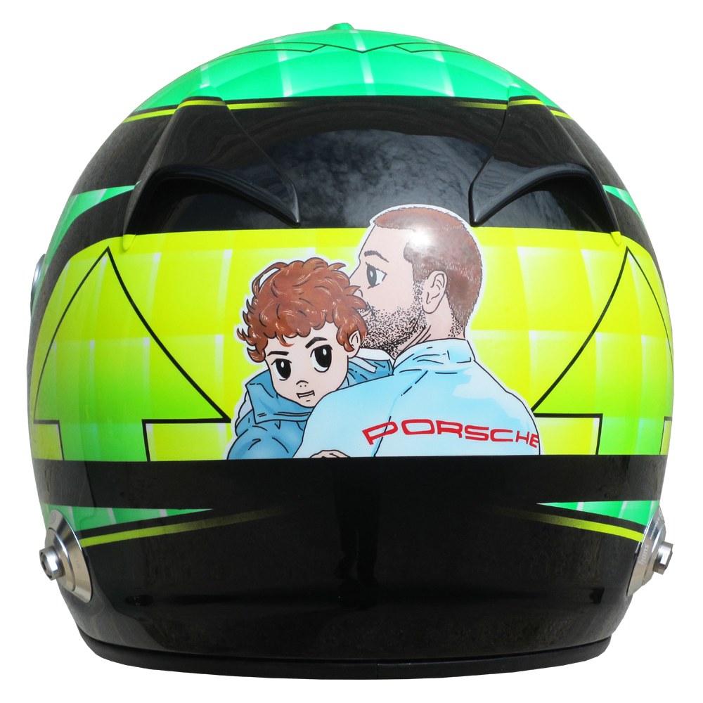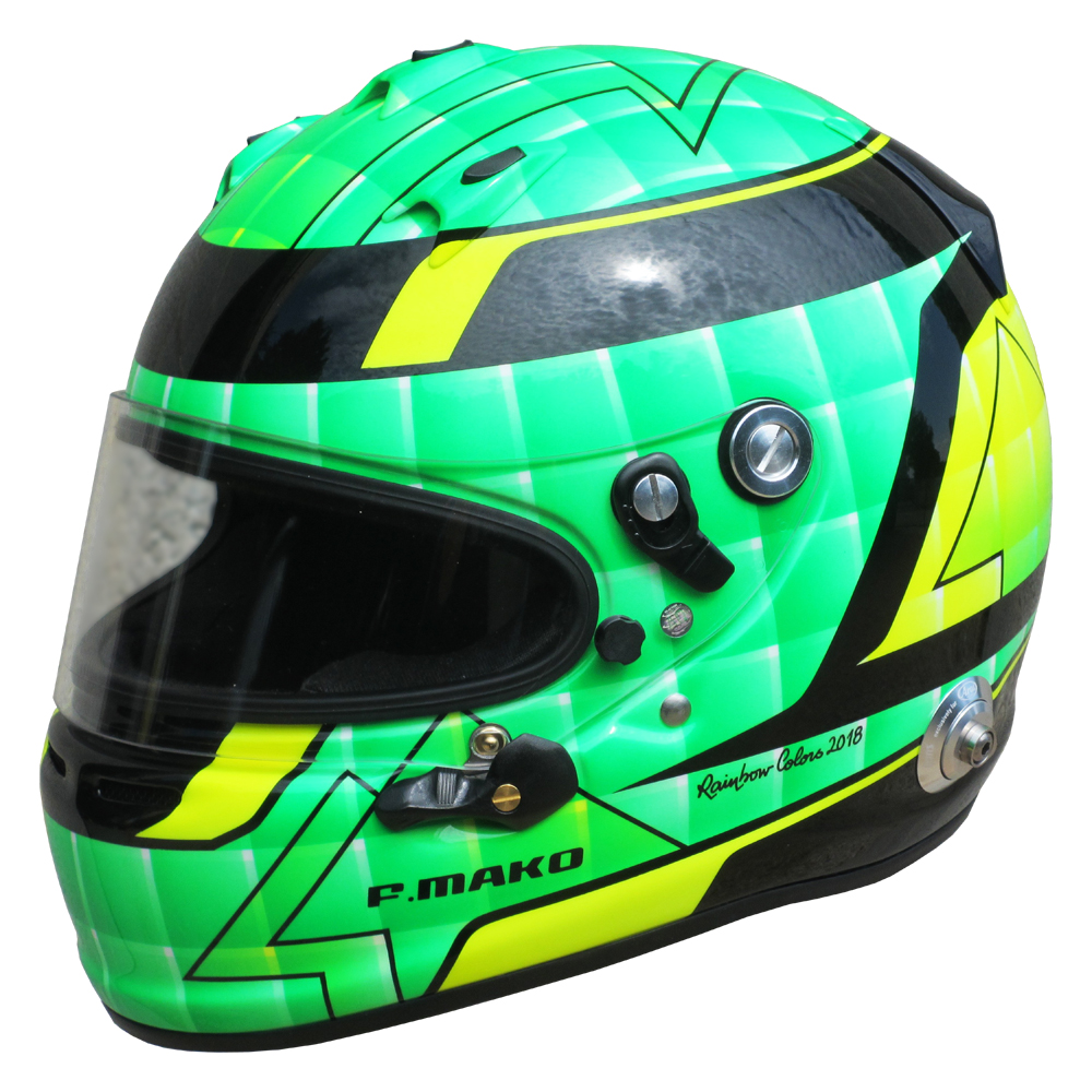 Circuit 2018 Frédéric MAKOWIECKI #1 Casque Arai GP6 RC, peint par Christian Roux / Rainbow Colors en 2018 pour Frédéric Makowiecki, Team Porsche, 24 h du Nurburgring. Précédent Suivant
