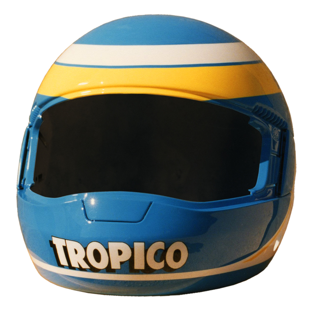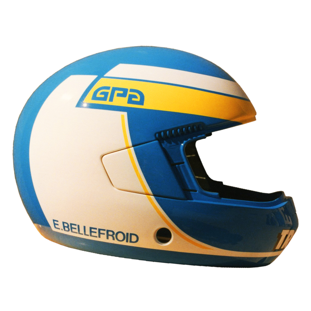 Circuit 1988 Eric BELLEFROID #1 Casque GPA C2G, peint par Christian Roux / Rainbow Colors en 1988 pour Eric Bellefroid, Team KTR, Championnat de France de Formule 3 et Colt Racing, Championnat international de Formule 3000. Précédent Suivant