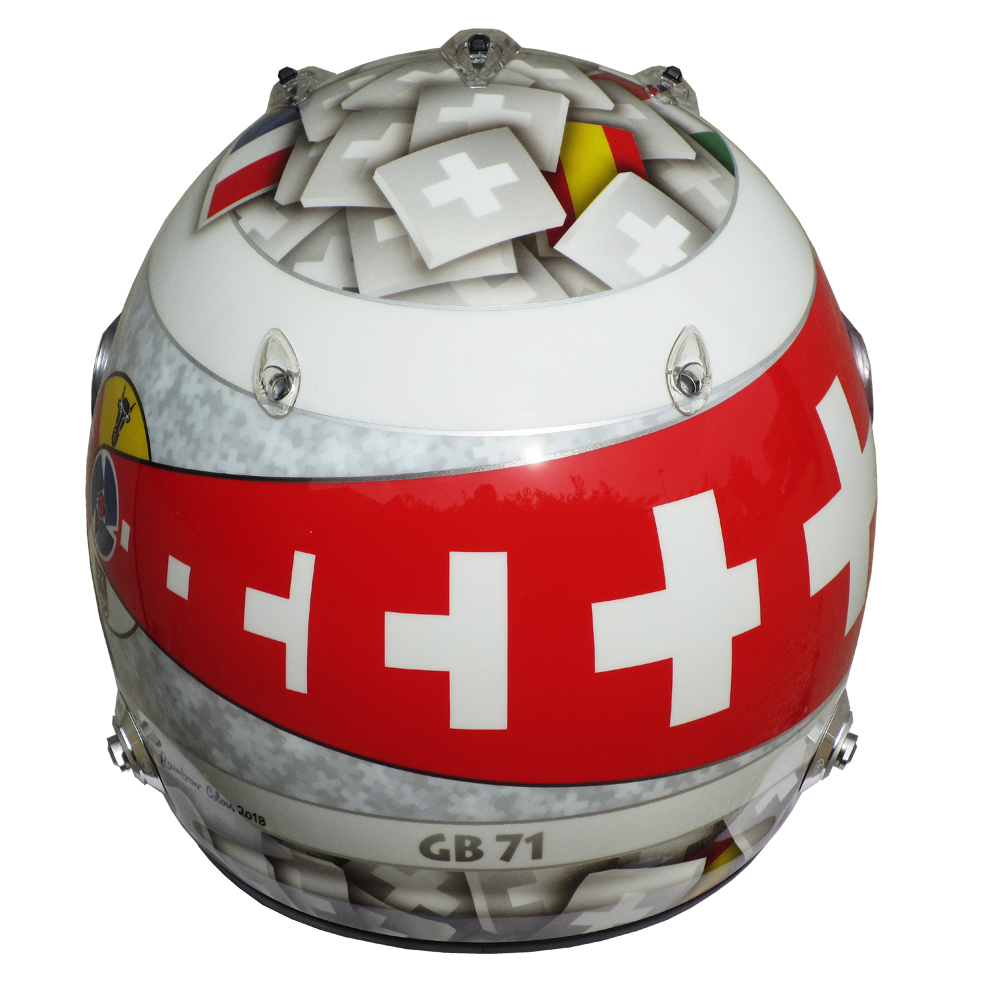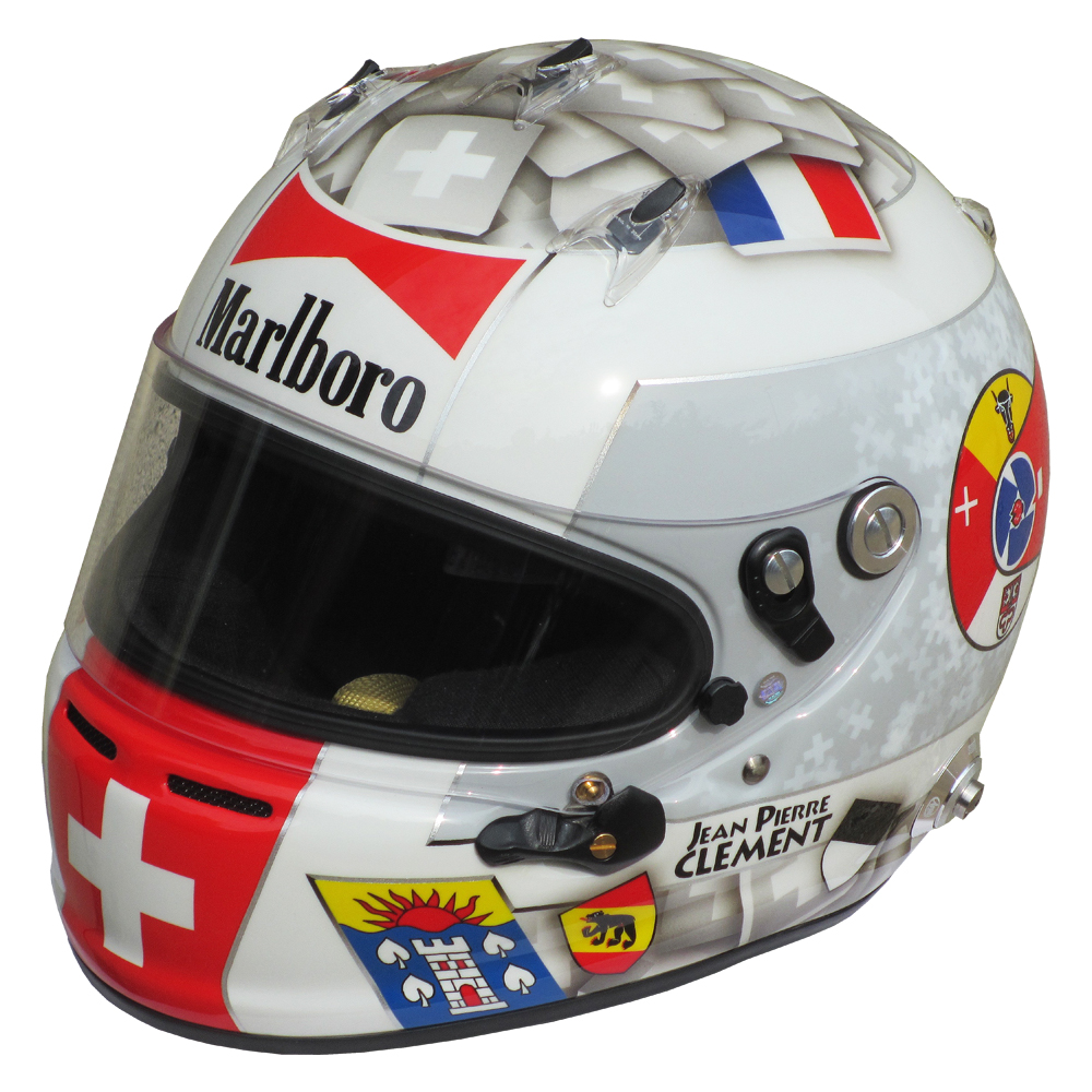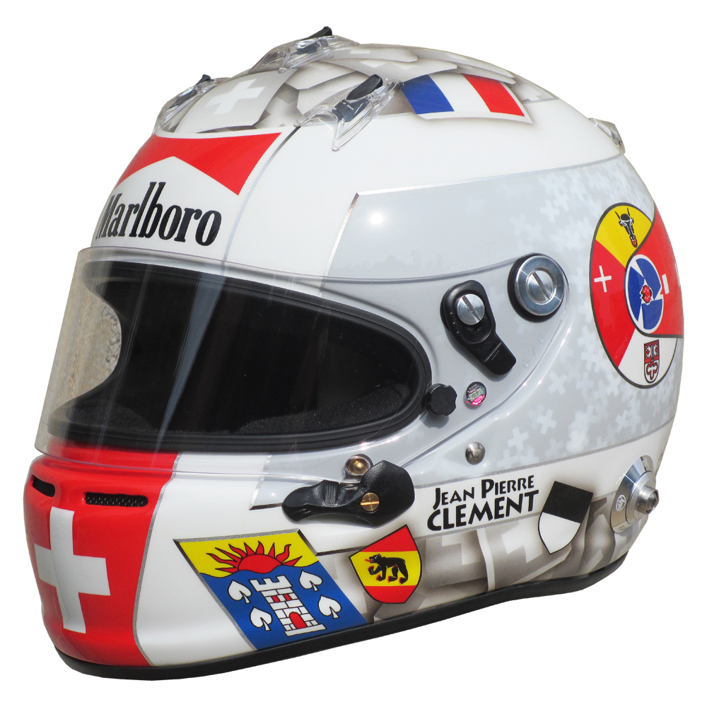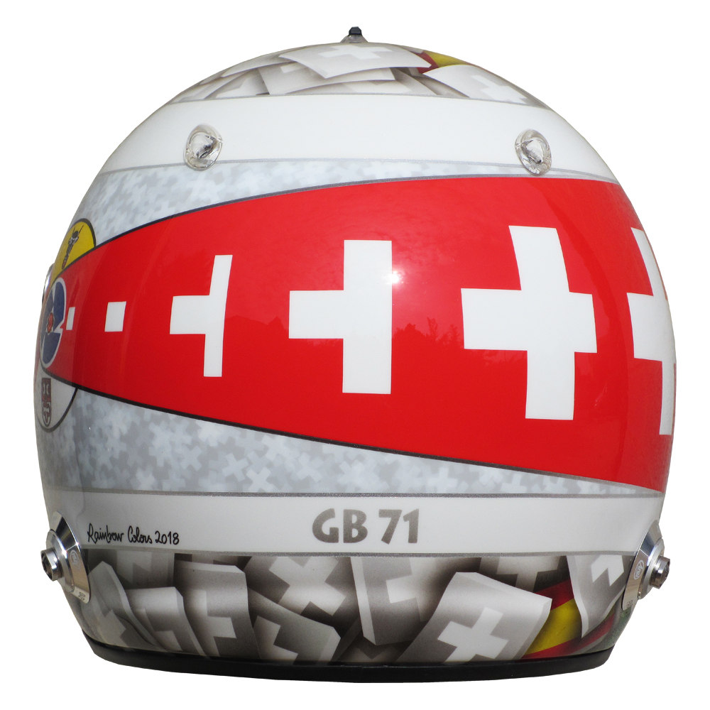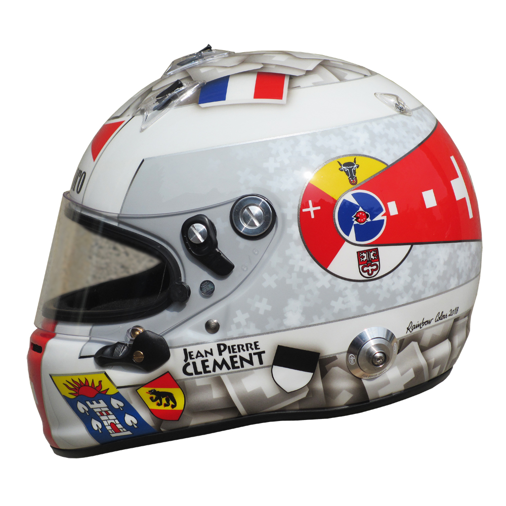 Circuit 2018 Jean Pierre CLÉMENT Casque Arai GP6 RC, peint par Christian Roux / Rainbow Colors en 2018 pour Jean Pierre Clément. Précédent Suivant