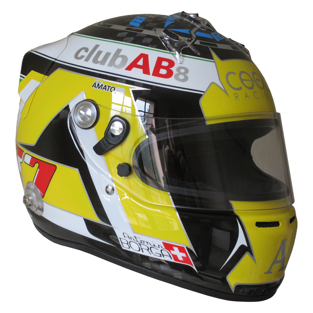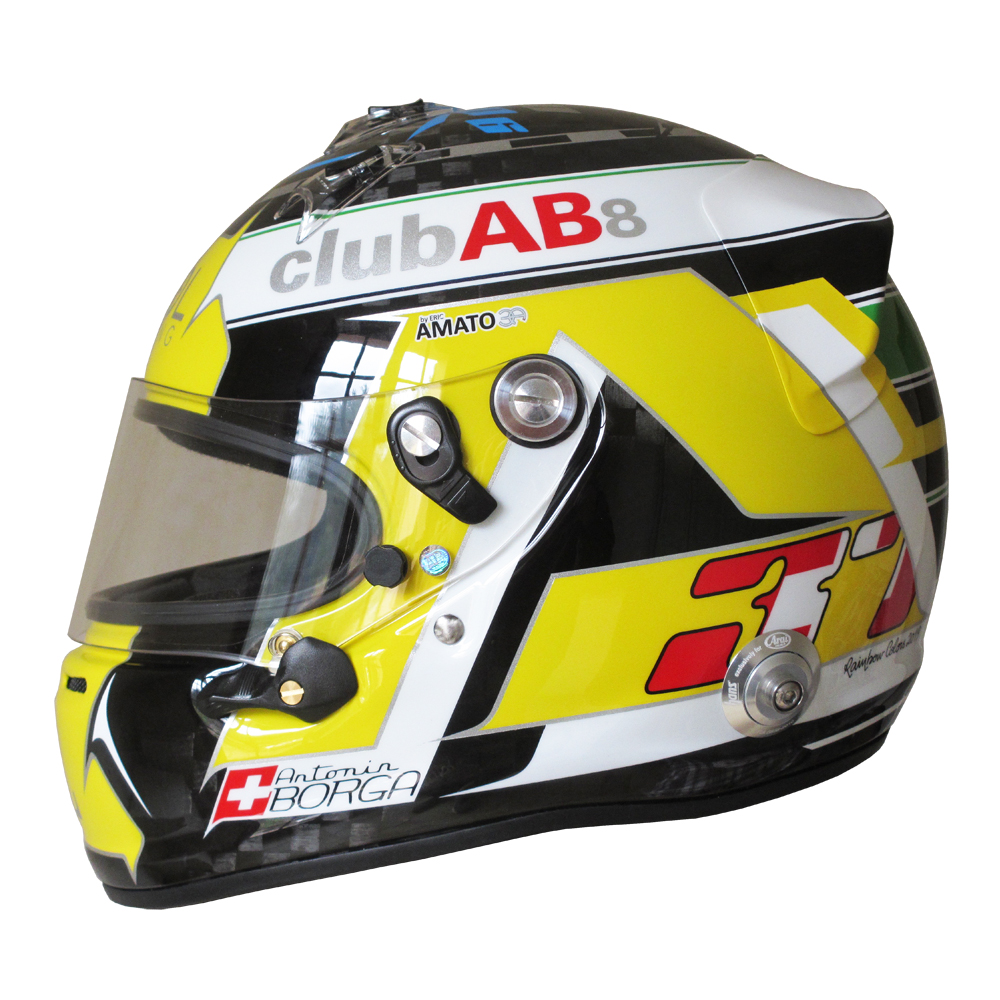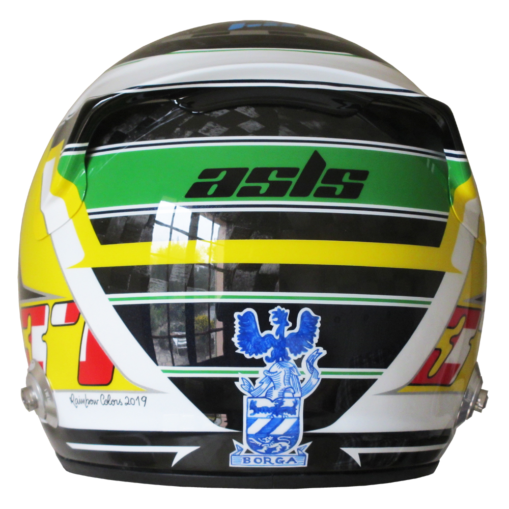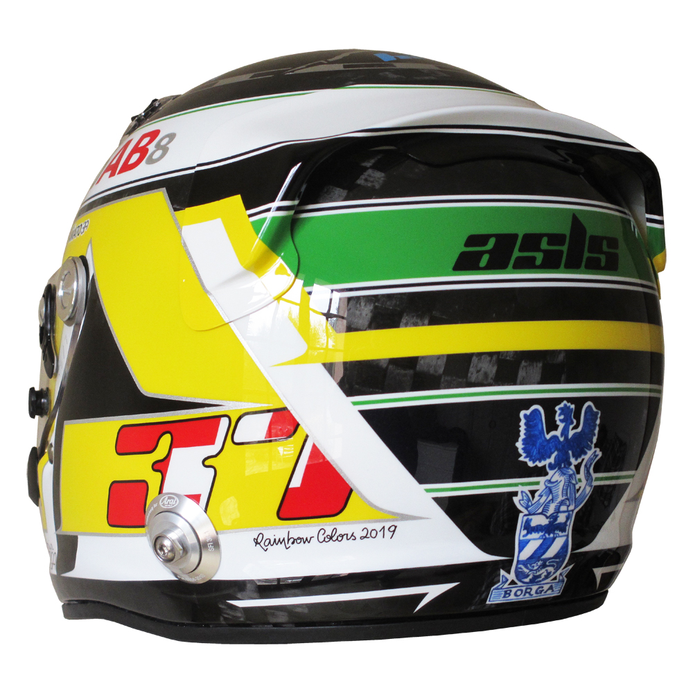 Circuit 2019 Antonin BORGA Casque Arai GP6 RC, peint par Christian Roux / Rainbow Colors en 2019 pour Antonin Borga, Team Cool Racing. Précédent Suivant