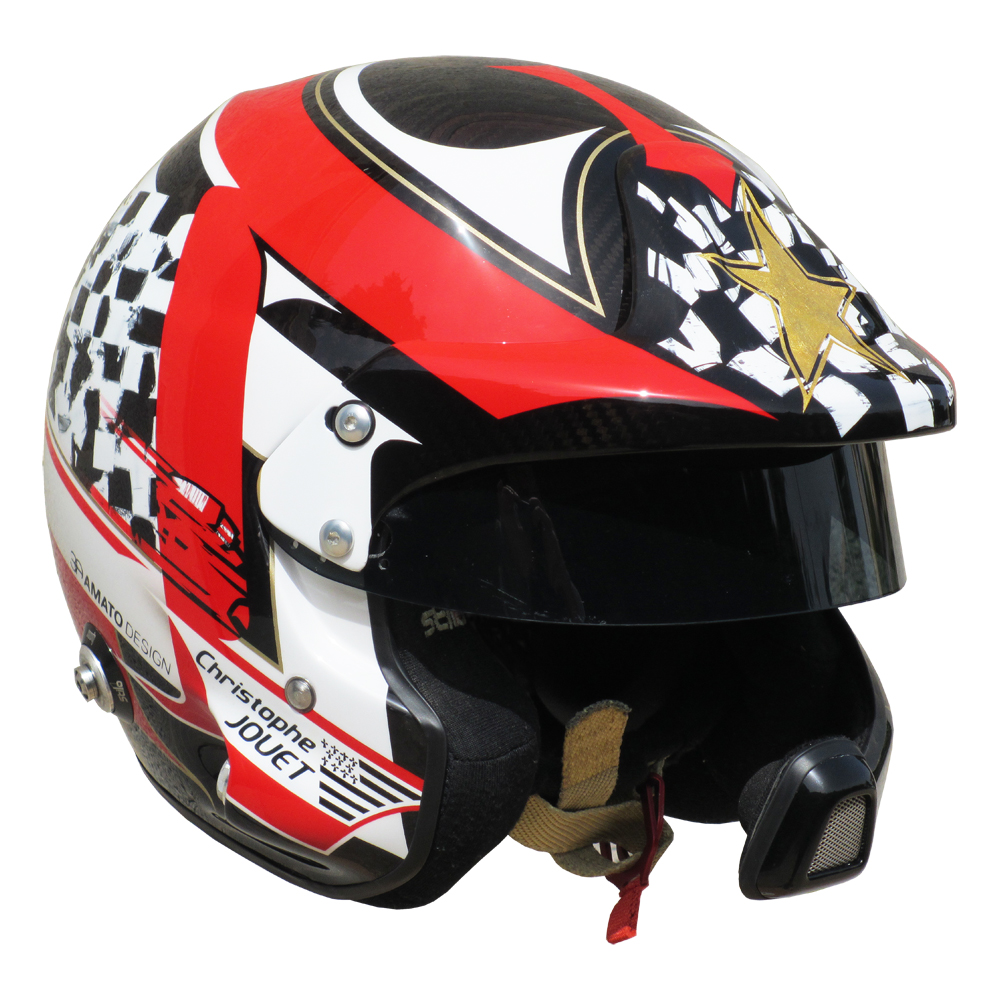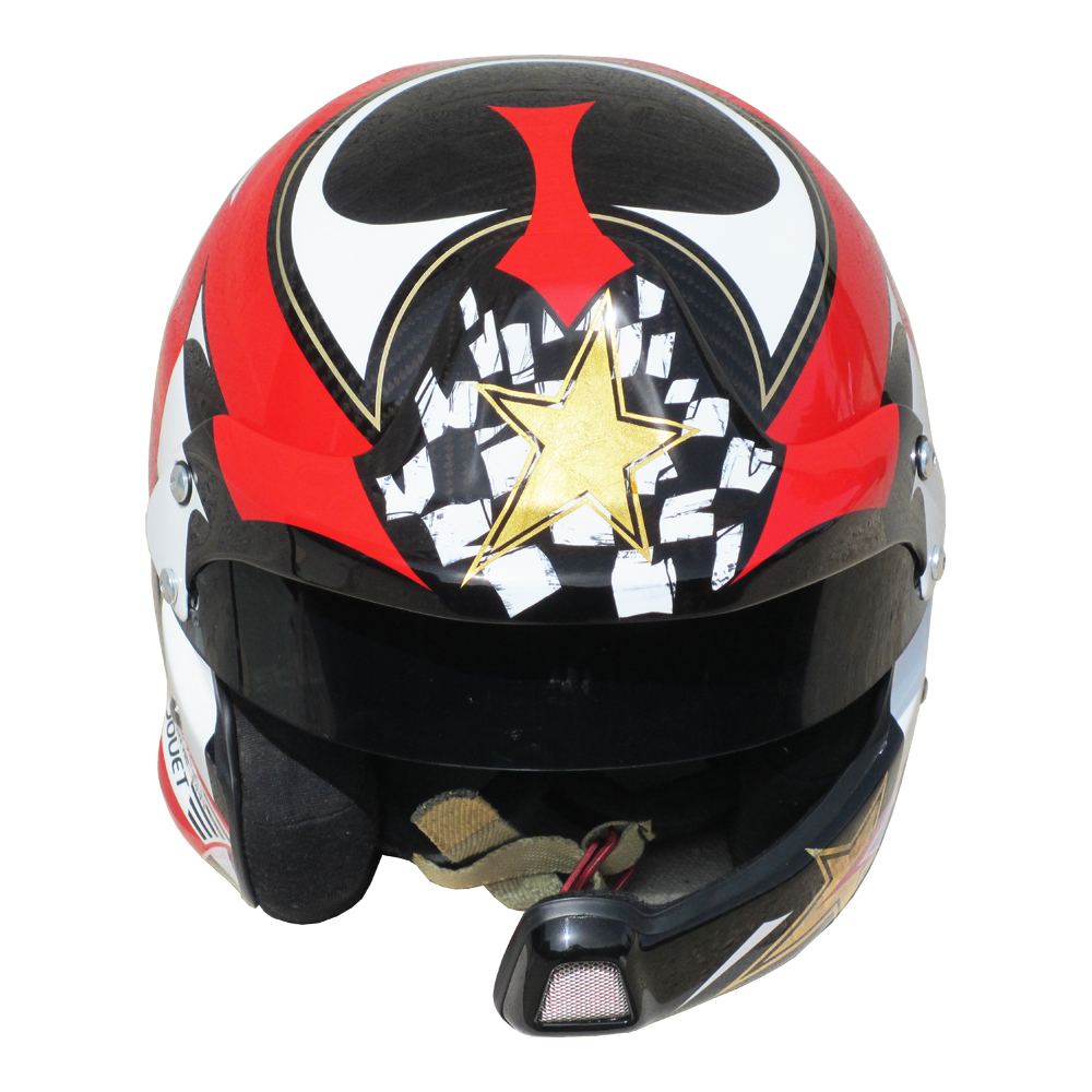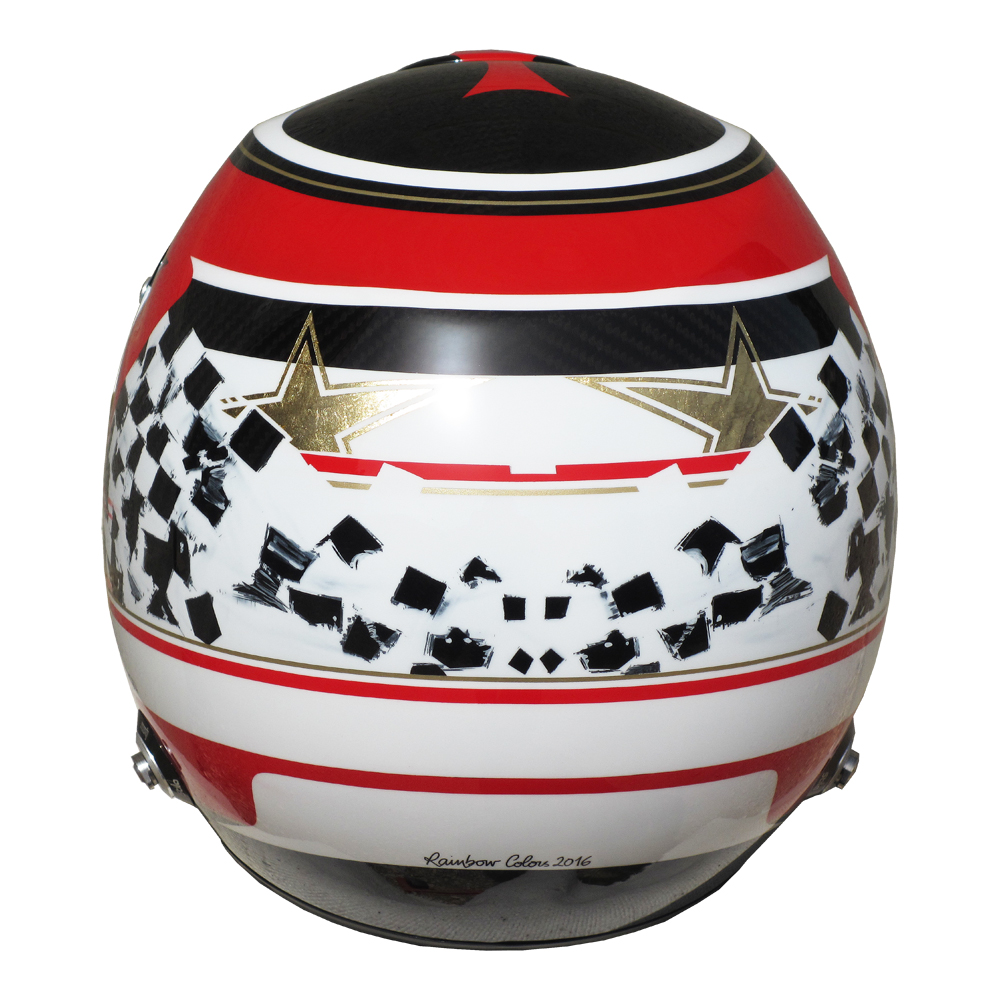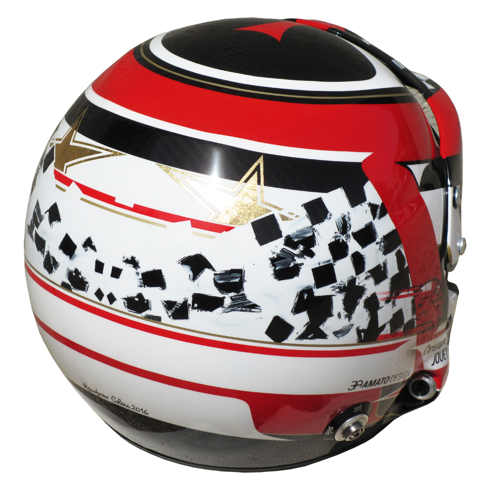 Circuit 2016 Christophe JOUET Casque Stilo WRC DES, peint par Christian Roux / Rainbow Colors en 2016 pour Christophe Jouet, d'après une peinture sur toile. Précédent Suivant