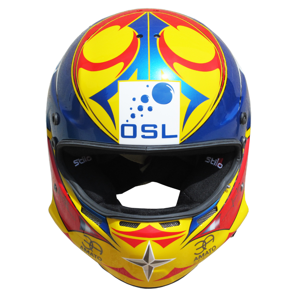 Circuit 2015 Jim PLA Casque Stilo ST4 W, peint par Christian Roux / Rainbow Colors en 2015 pour Jim Pla. Précédent Suivant