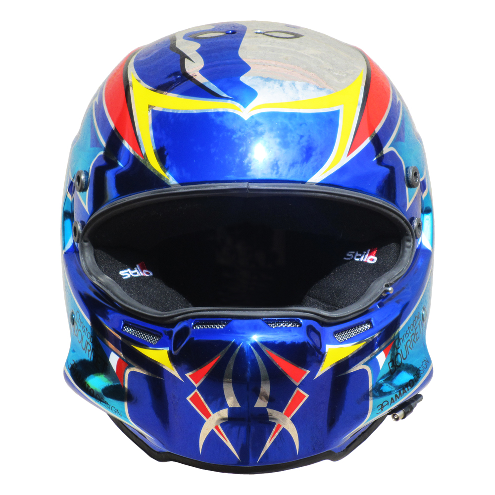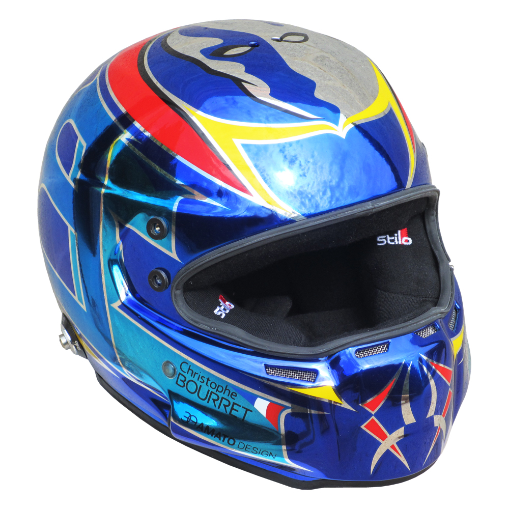 Circuit 2015 Christophe BOURRET Casque Stilo ST4 W, peint par Christian Roux / Rainbow Colors en 2015 pour Christophe Bourret. Précédent Suivant