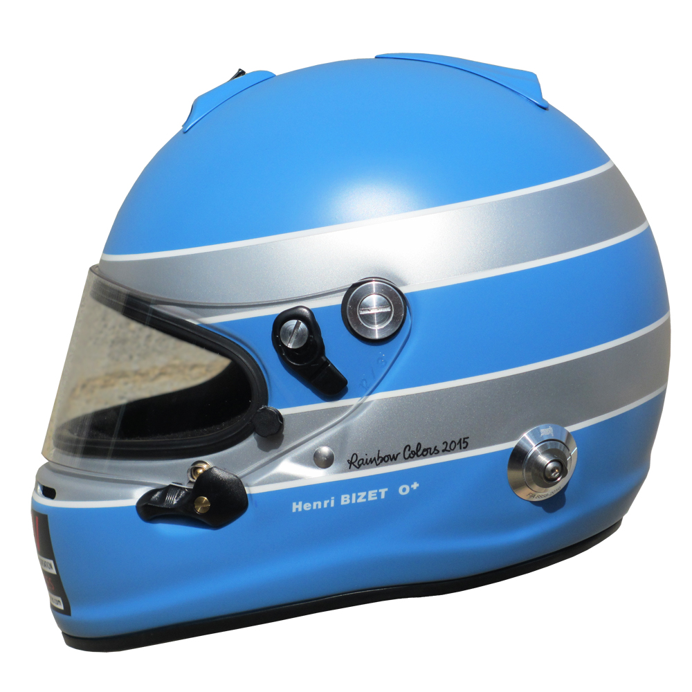 Circuit 2015 Henri BIZET Casque Arai GP 6 S, peint par Christian Roux / Rainbow Colors en 2015 pour Henri Bizet, Coupe Caterham. Précédent Suivant