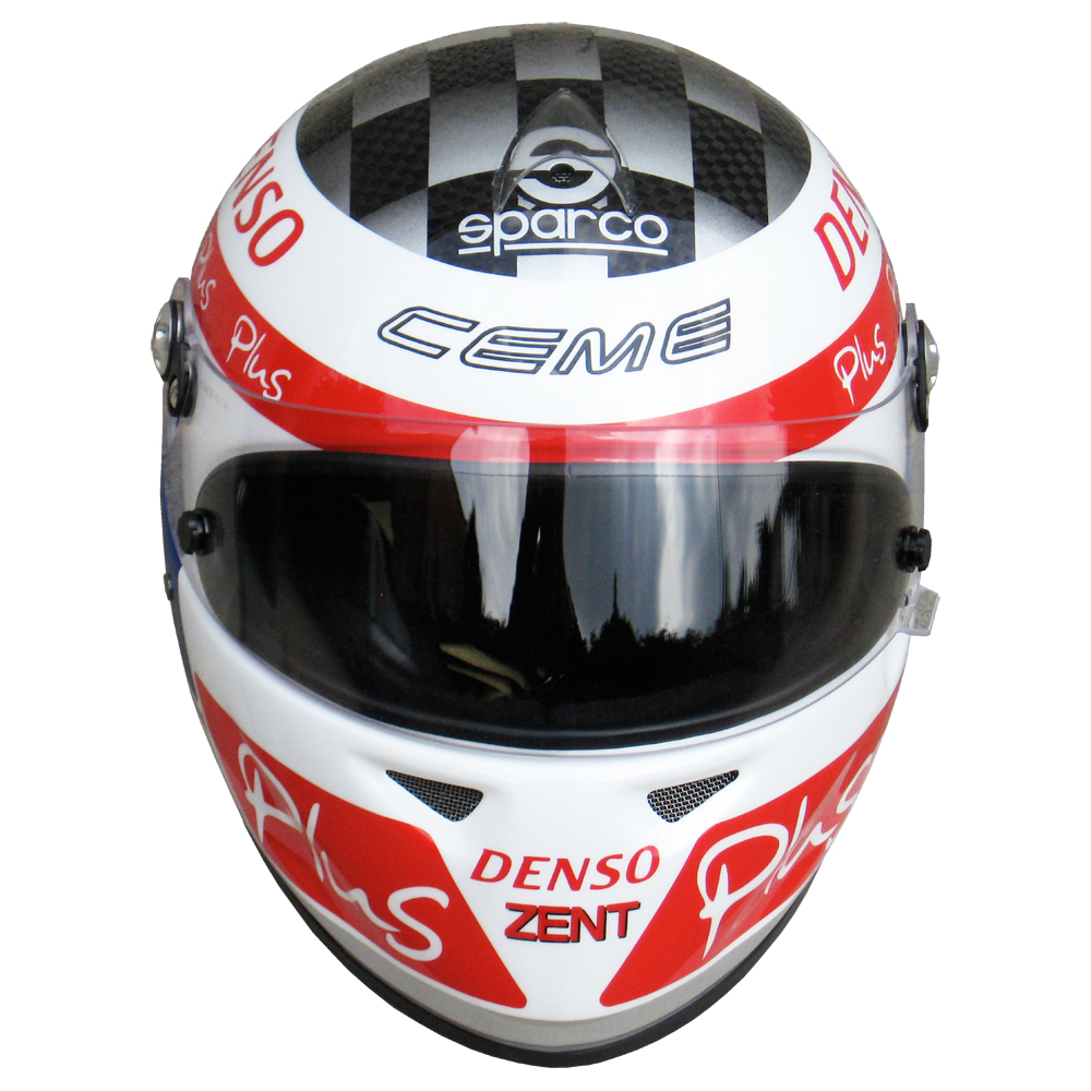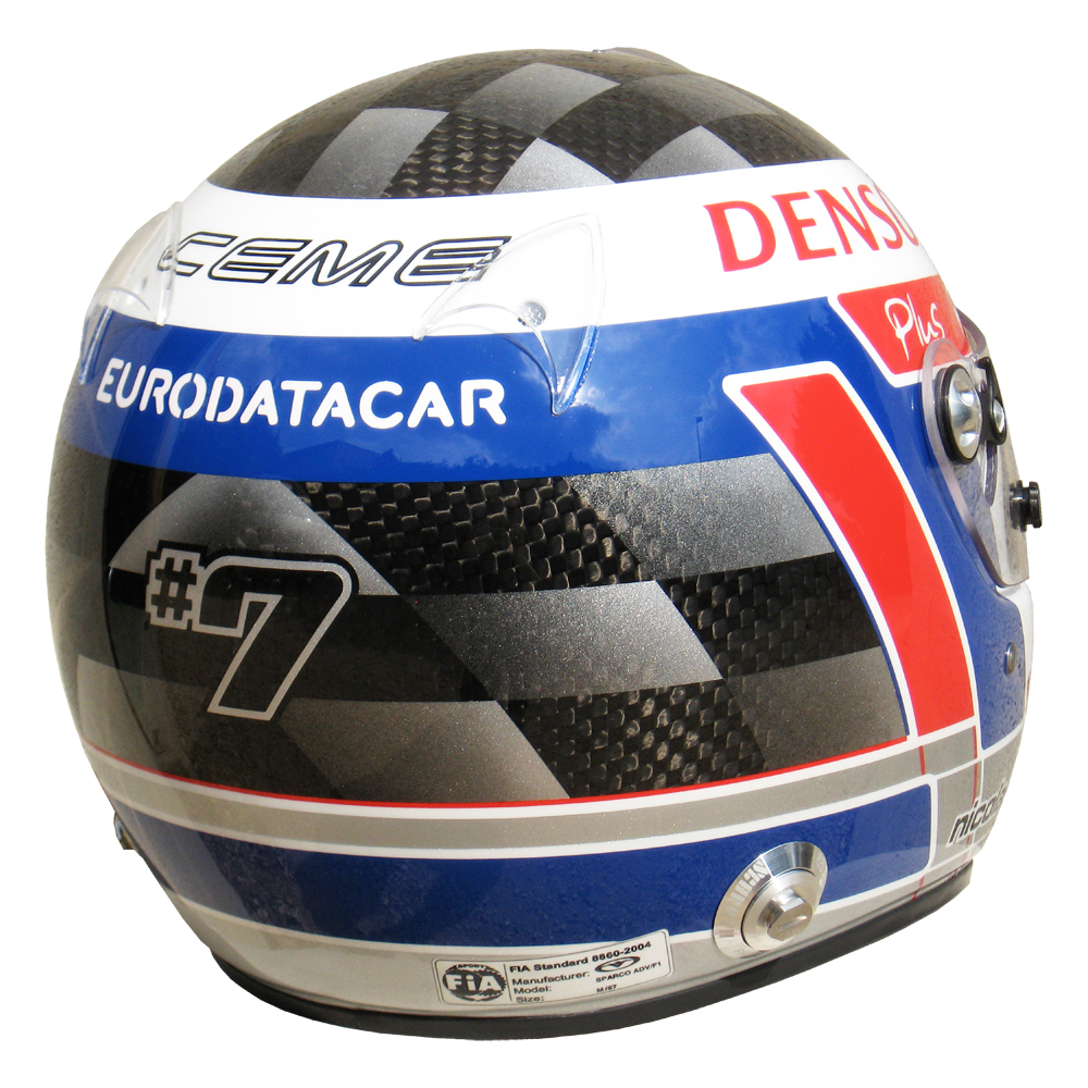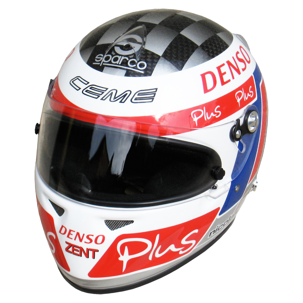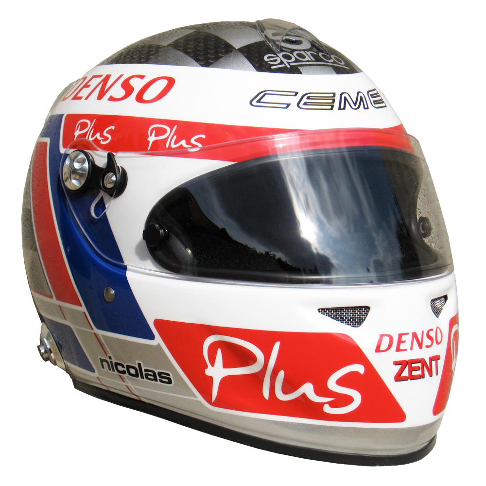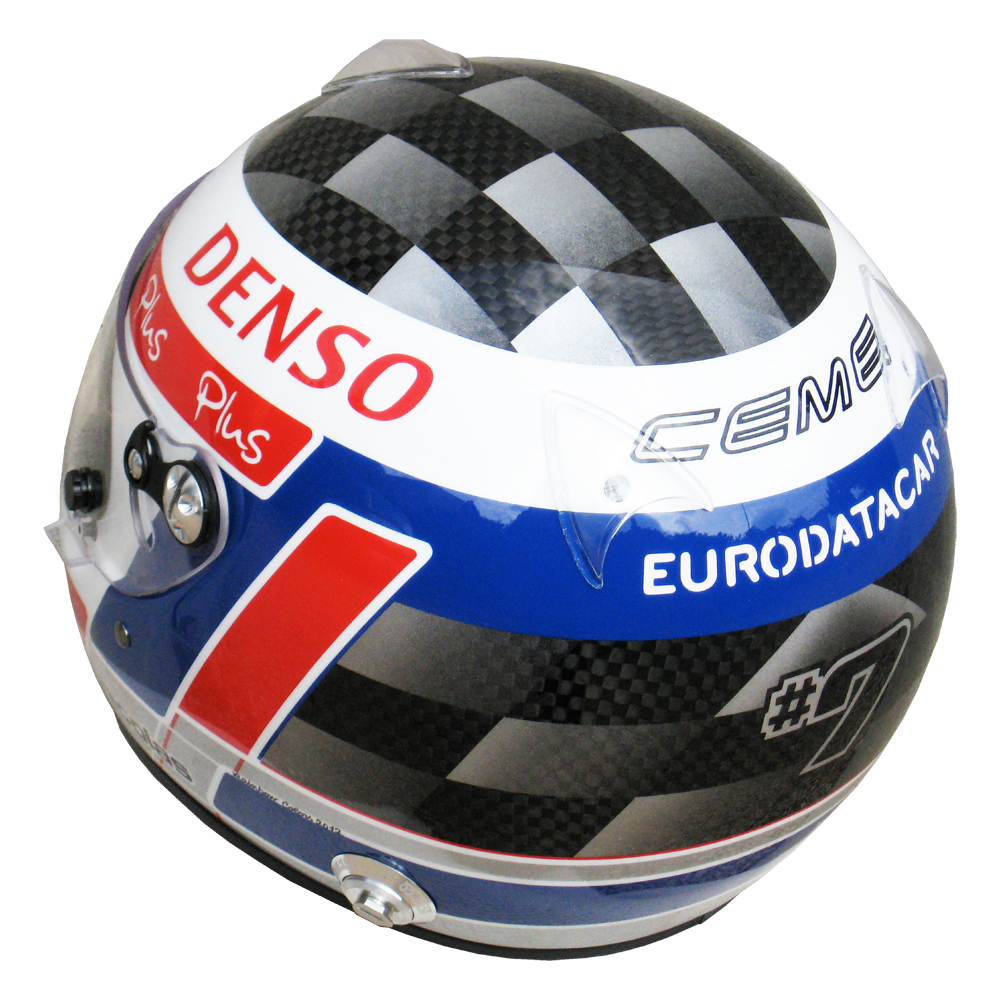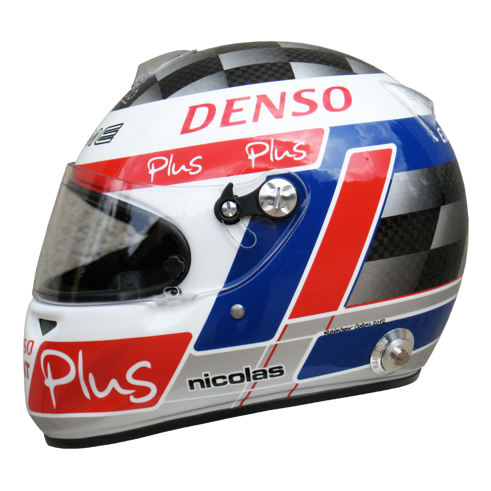Circuit 2012 Nicolas LAPIERRE #2 Casque Sparco F1-ADV, peint par Christian Roux / Rainbow Colors en 2012 pour Nicolas Lapierre, 3ème du Championnat du Monde d'Endurance, Team Toyota Racing. Précédent Suivant