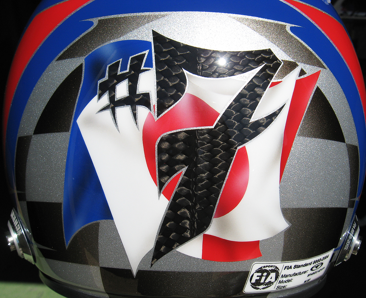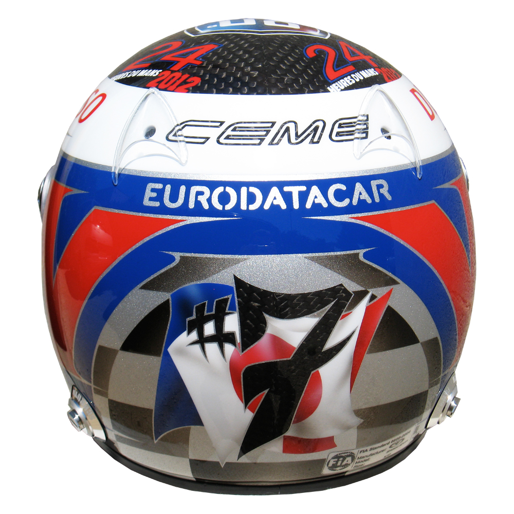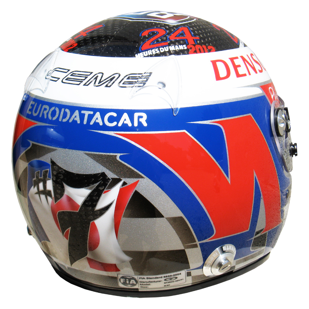 Circuit 2012 Nicolas LAPIERRE #3 24 Heures du Mans Casque Sparco F1-ADV, peint par Christian Roux / Rainbow Colors en 2012 pour Nicolas Lapierre, 24 Heures du Mans, Team Toyota Racing. Précédent Suivant