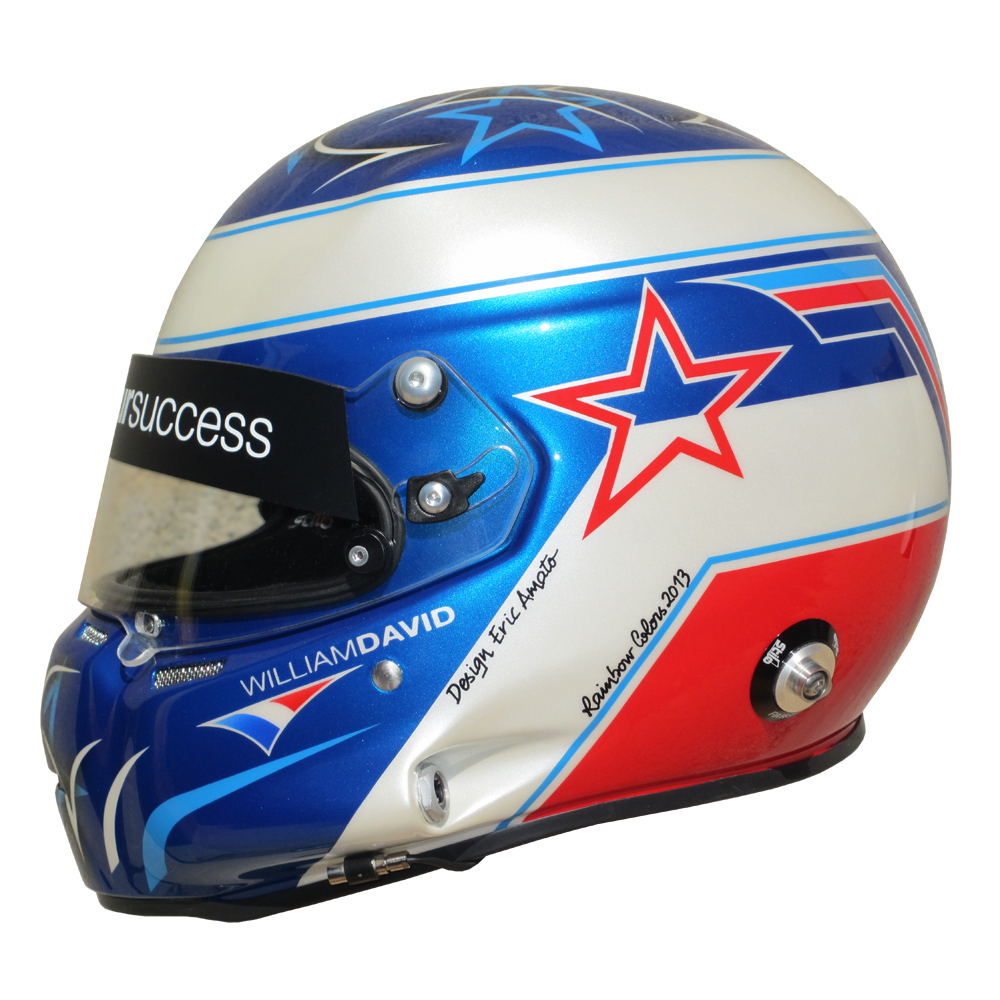 Circuit 2013 William DAVID Casque Stilo ST 4 F, peint par Christian Roux / Rainbow Colors en 2013 pour William David, 3ème Grand Prix de Pau Electrique. Précédent Suivant