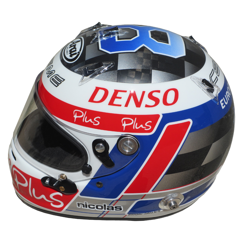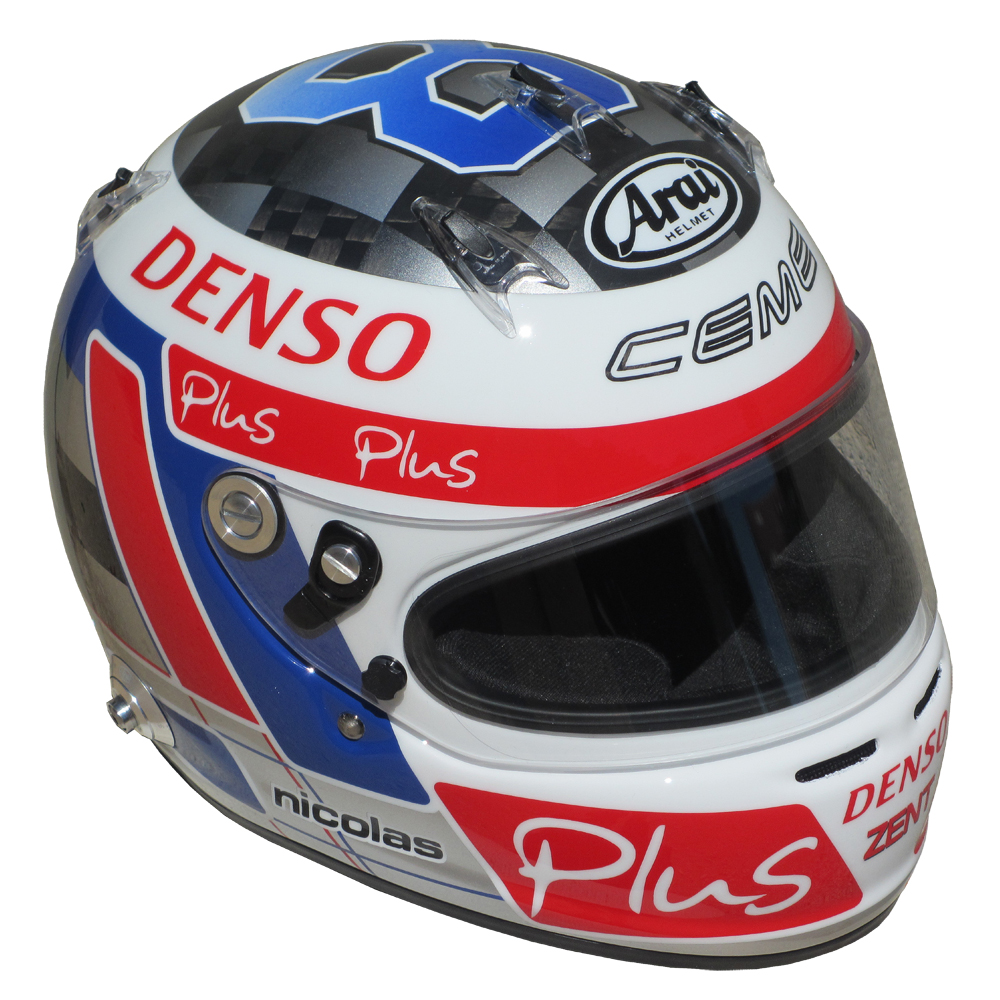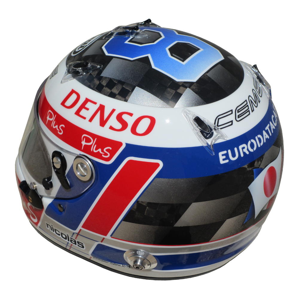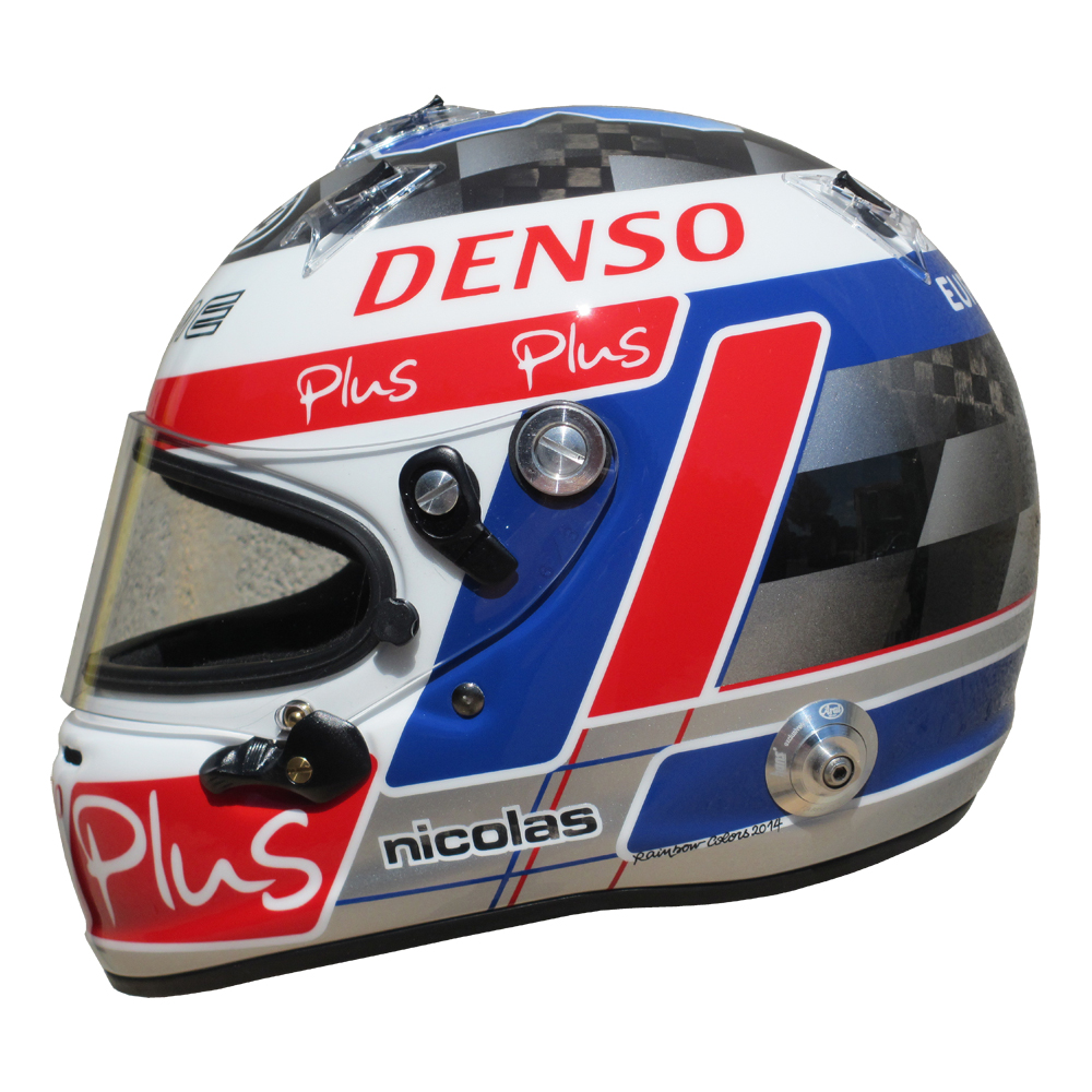 Circuit 2014 Nicolas LAPIERRE #2 Casque Arai GP 6 RC, peint par Christian Roux / Rainbow Colors en 2014 pour Nicolas Lapierre, Team Toyota Racing, Championnat du Monde d'Endurance. Précédent Suivant