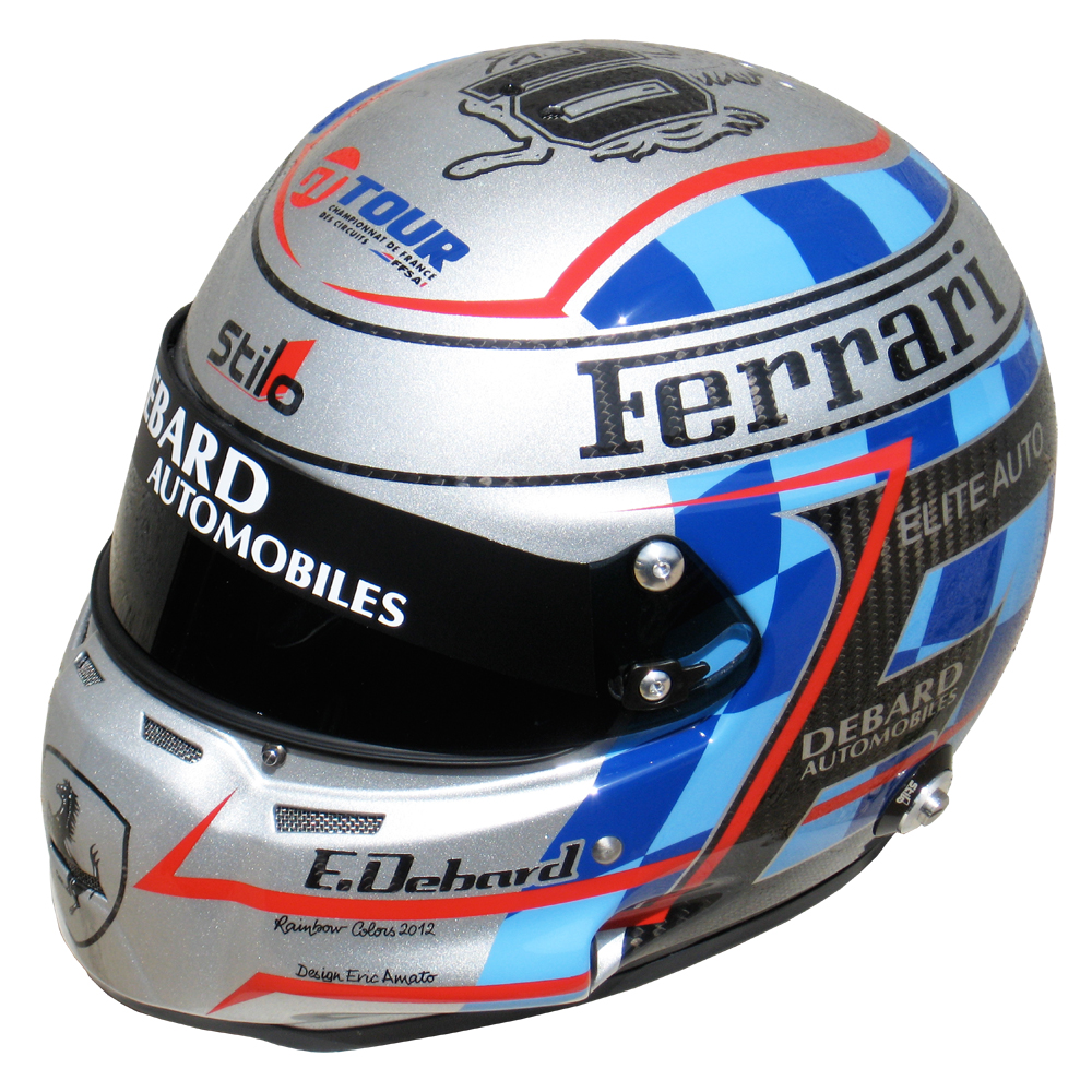 Circuit 2012 Eric DEBARD Casque Stilo ST 4 F Carbone, peint par Christian Roux / Rainbow Colors en 2012 pour Eric Debard, Team Sofrev ASP, GT Tour. Précédent Suivant