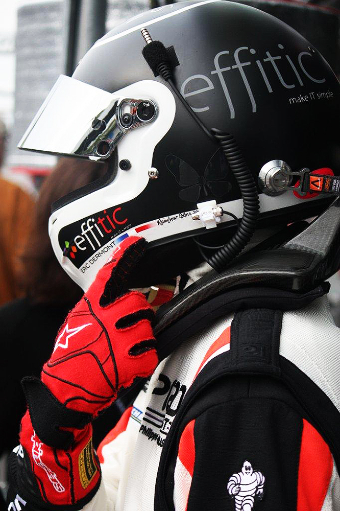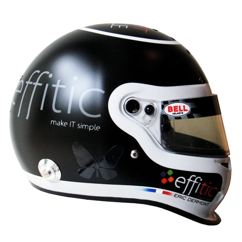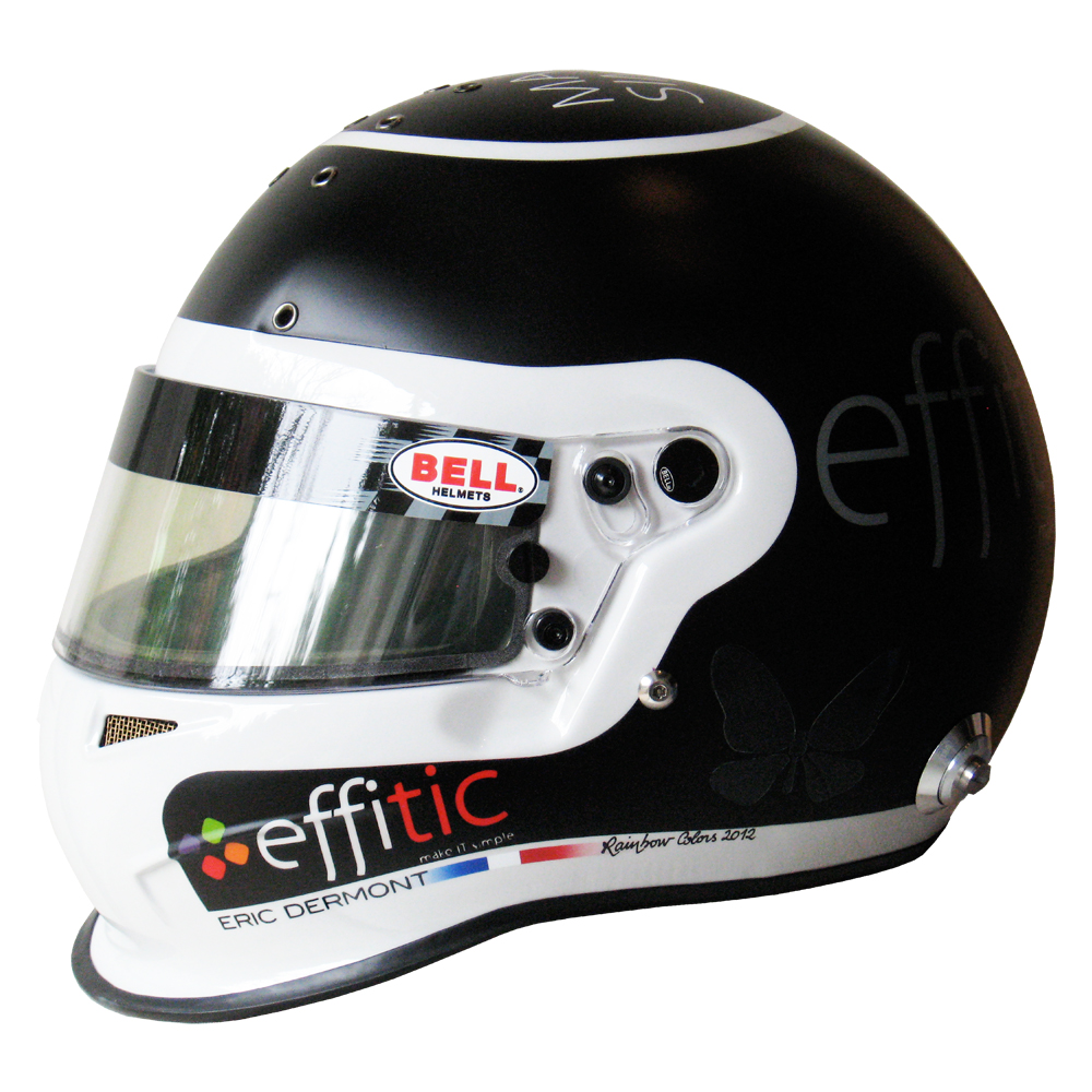 Circuit 2012 Eric DERMONT Casque Bell HP 3, peint par Christian Roux / Rainbow Colors en 2012 pour Eric Dermont, Team Pro GT By Almeras, Porsche Carrera Cup. Précédent Suivant