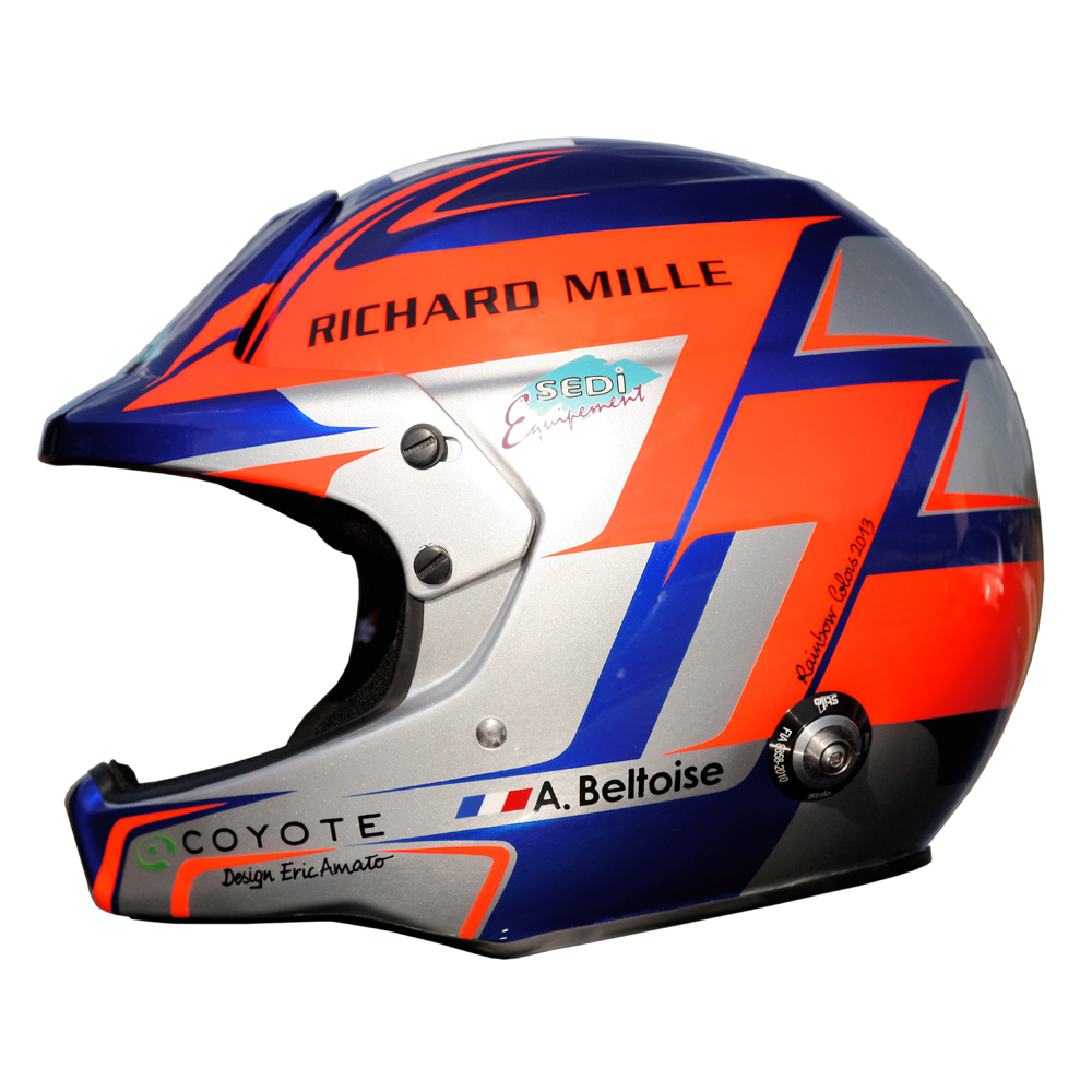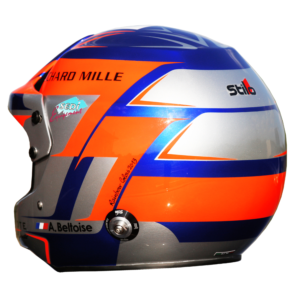 Circuit 2013 Anthony BELTOISE Casque Stilo WRC DES, peint par Christian Roux / Rainbow Colors en 2013 pour Anthony Beltoise, Sebastien Loeb Racing, Vice Champion de France FFSA GT. Précédent Suivant