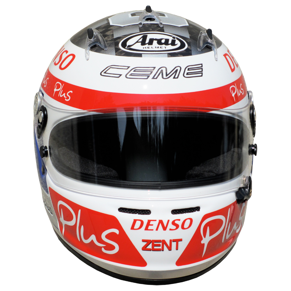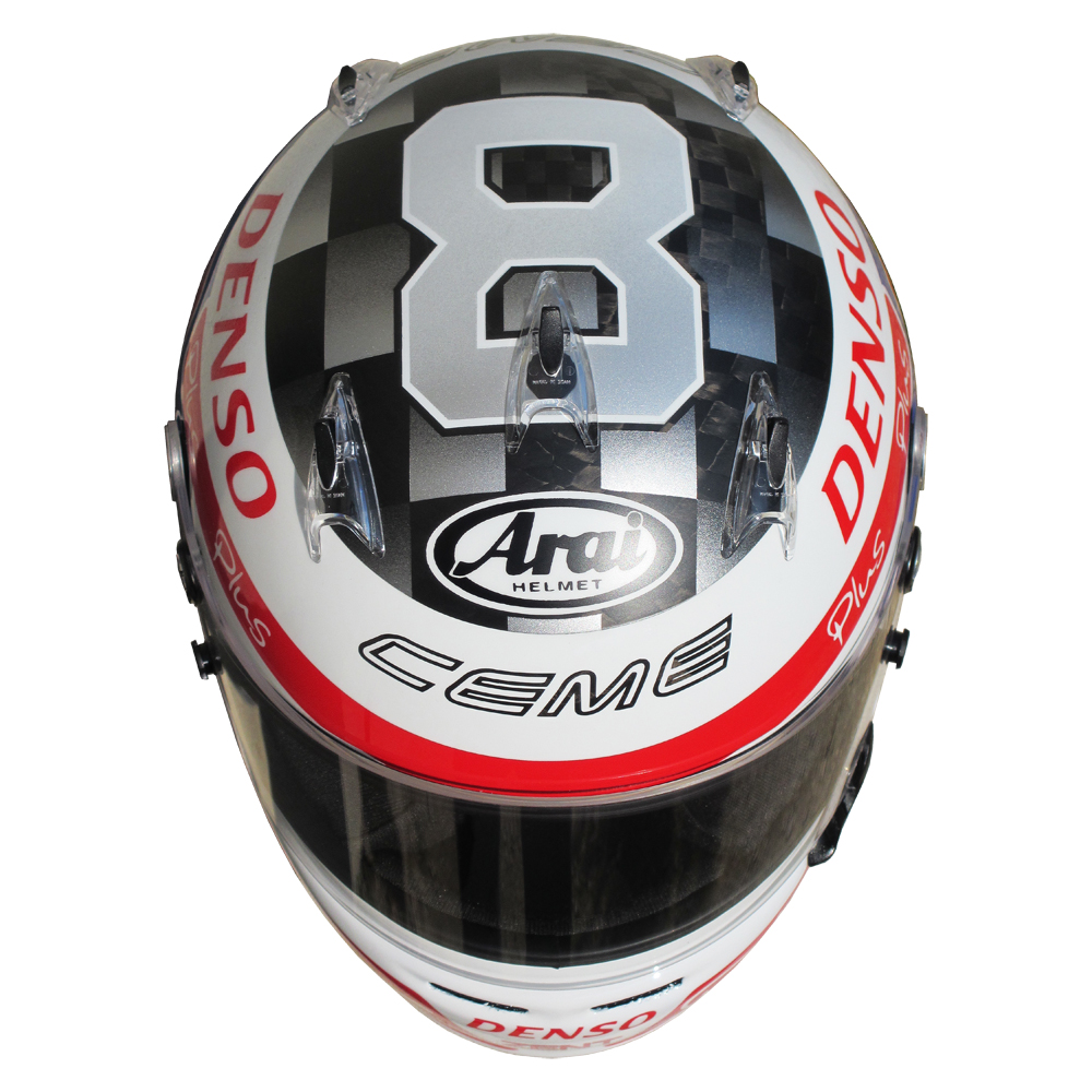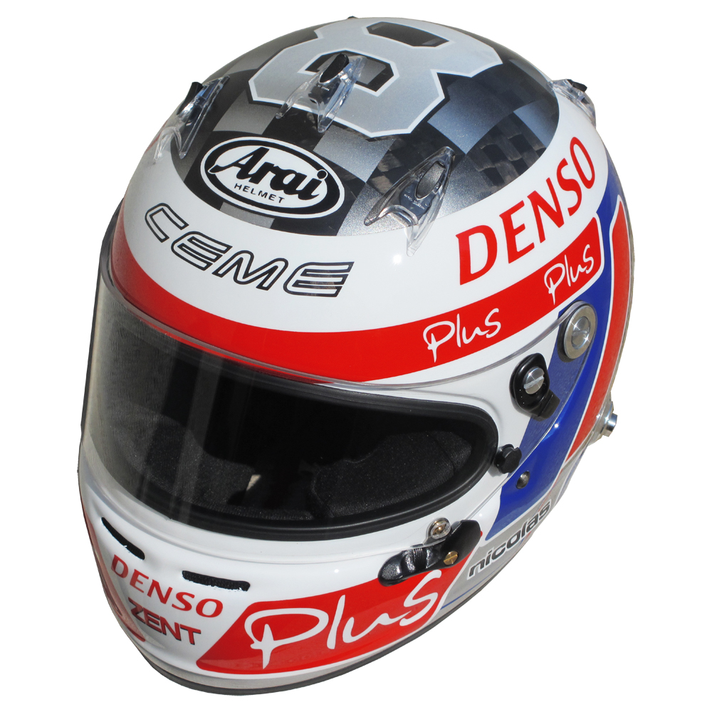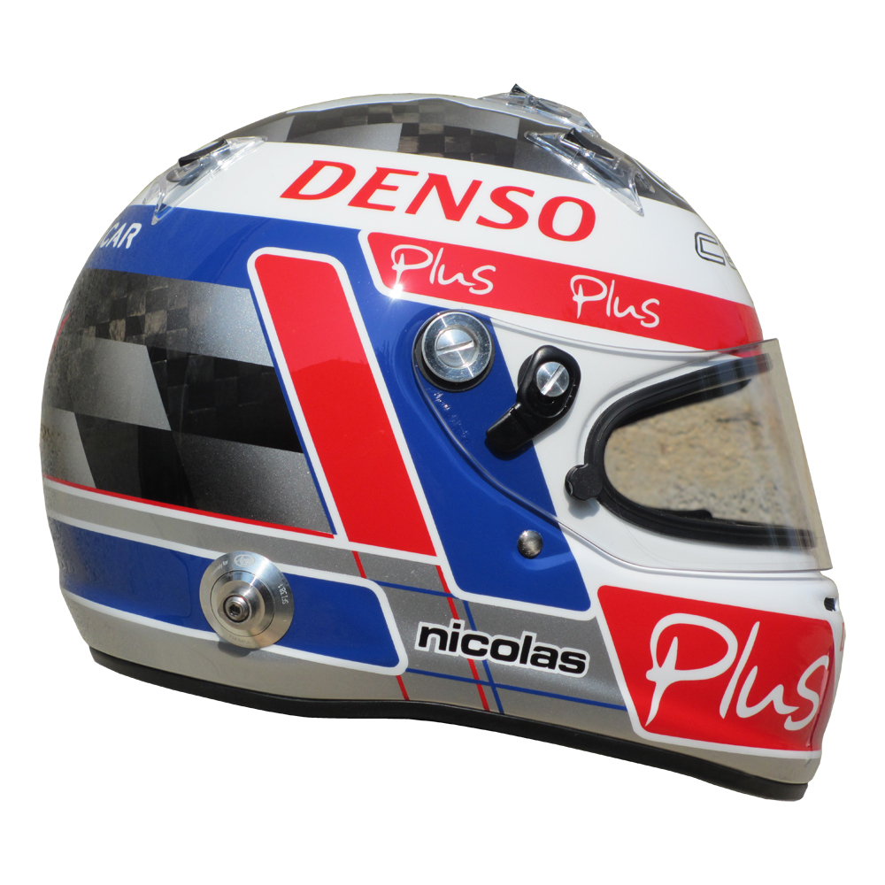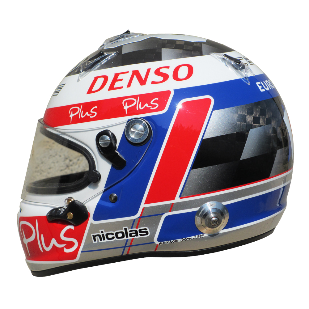 Circuit 2014 Nicolas LAPIERRE #1 Casque Arai GP 6 RC, peint par Christian Roux / Rainbow Colors en 2014 pour Nicolas Lapierre, Team Toyota Racing, Championnat du Monde d'Endurance. Précédent Suivant