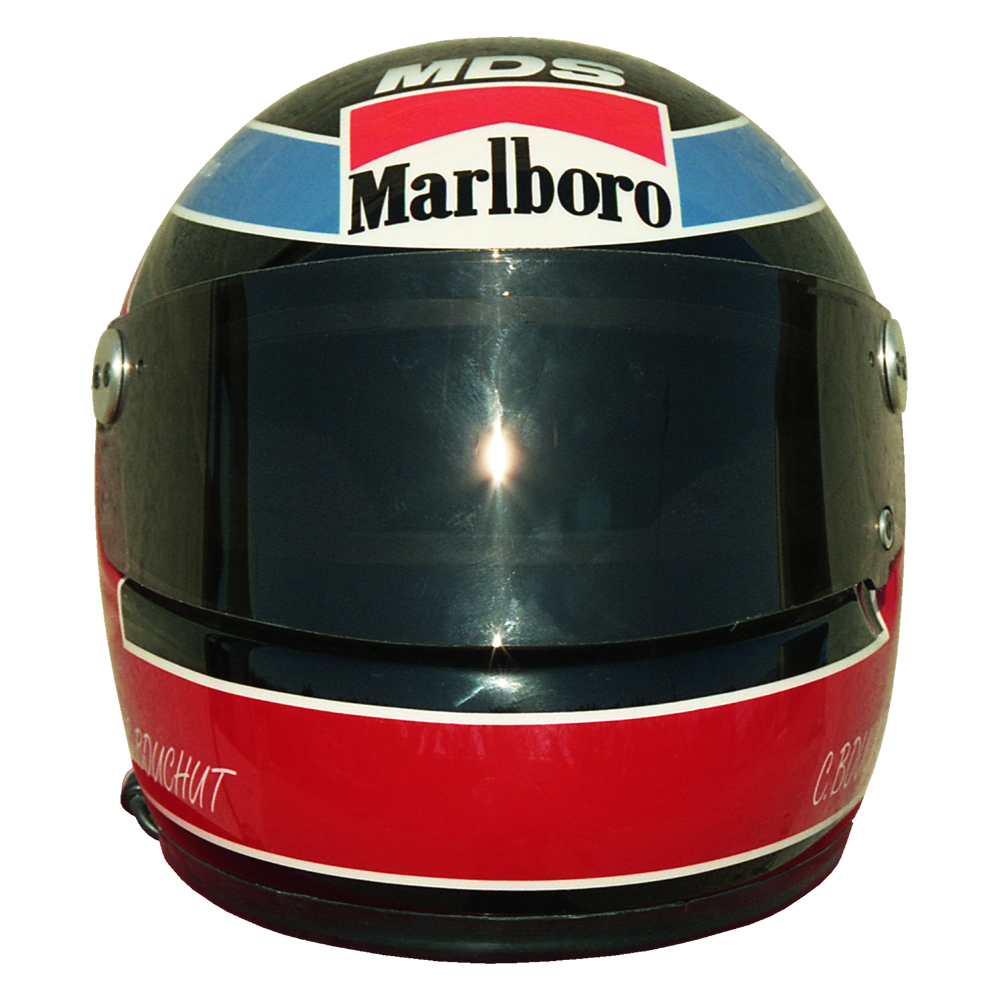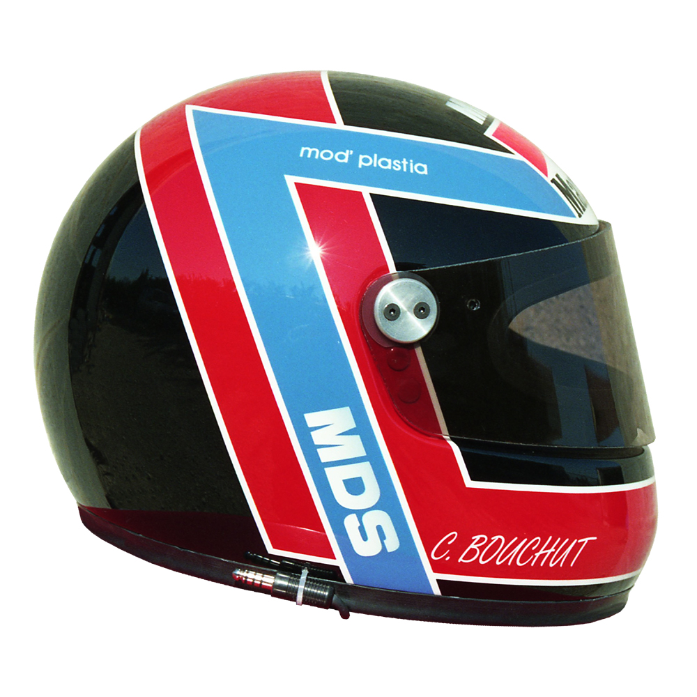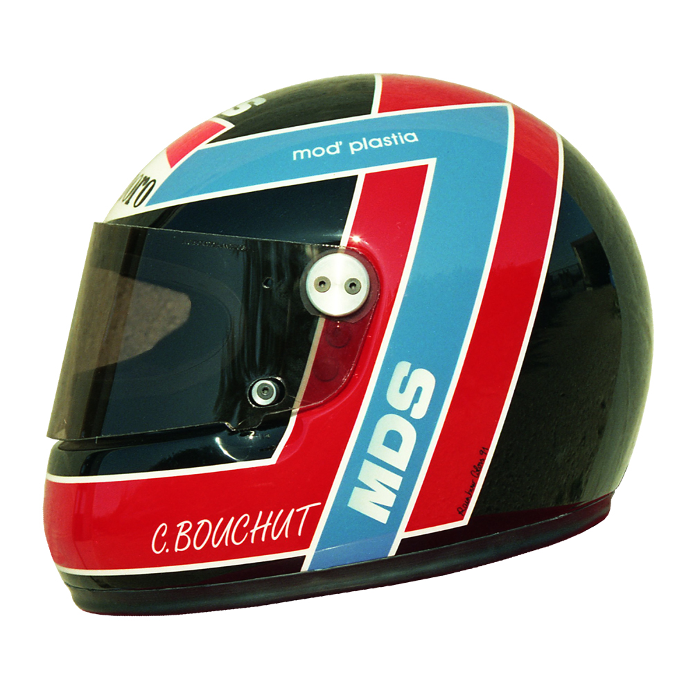 Circuit 1991 Christophe BOUCHUT #1 Casque MDS F1, peint par Christian Roux / Rainbow Colors en 1991 pour Christophe Bouchut, Team Graff Racing, Champion de France de Formule 3. Précédent Suivant