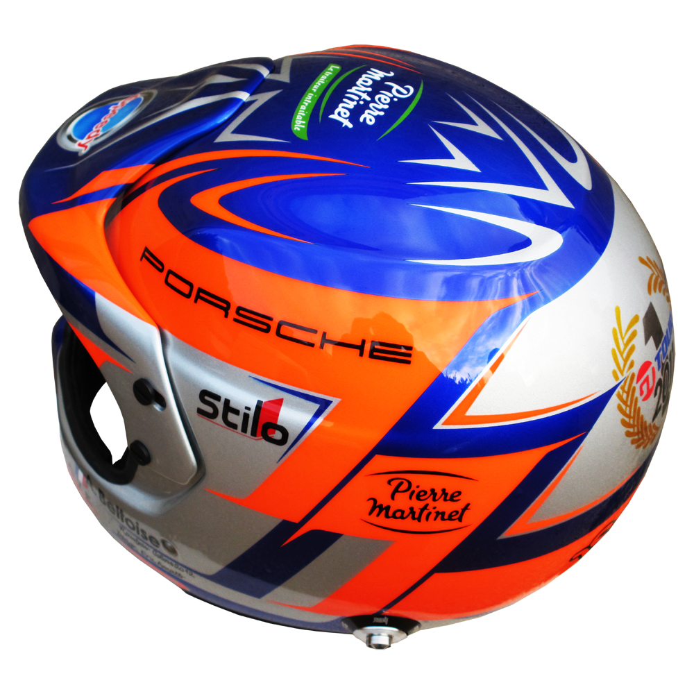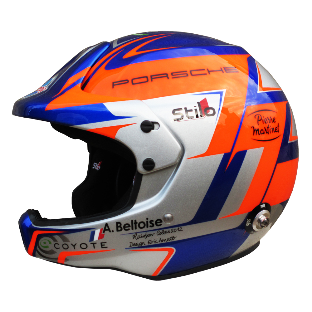 Circuit 2012 Anthony BELTOISE Casque Stilo WRC DES, peint par Christian Roux / Rainbow Colors en 2012 pour Anthony Beltoise, Team Pro GT by Alméras, Champion de France FFSA GT. Précédent Suivant