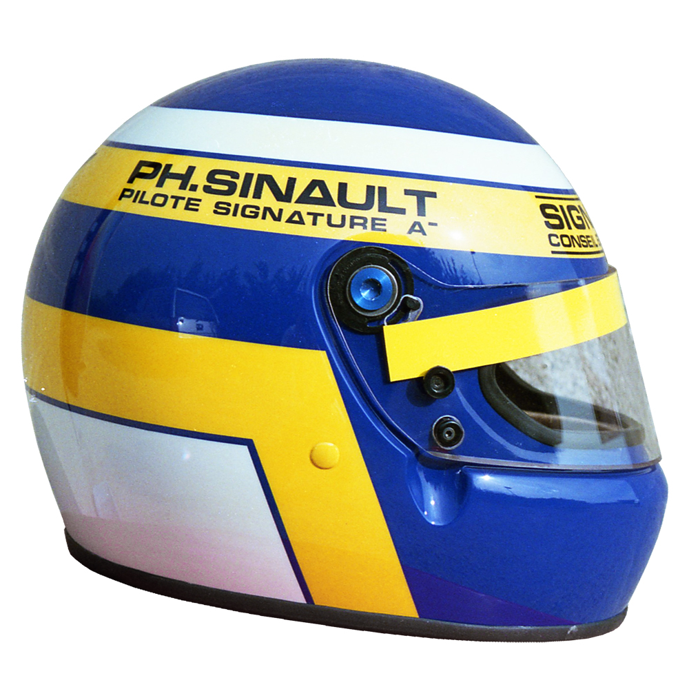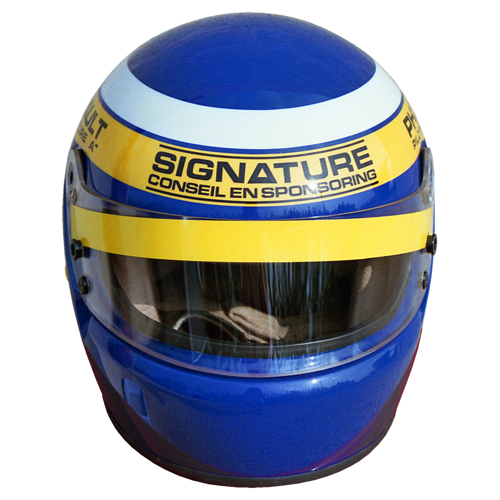 Circuit 1990 Philippe SINAULT Casque Bell XFM-1, peint par Christian Roux / Rainbow Colors en 1990 pour Philippe Sinault, Championnat de France de Formule Renault. Précédent Suivant