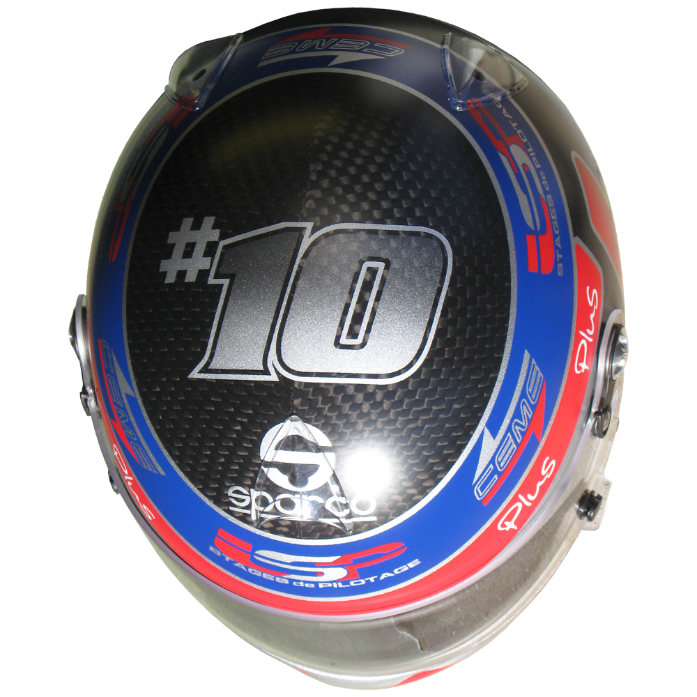 Circuit 2011 Nicolas LAPIERRE #1 Casque Sparco F1-ADV, peint par Christian Roux / Rainbow Colors en 2011 pour Nicolas Lapierre, Team Oreca Matmut, Peugeot 908 HDI FAP. Précédent Suivant