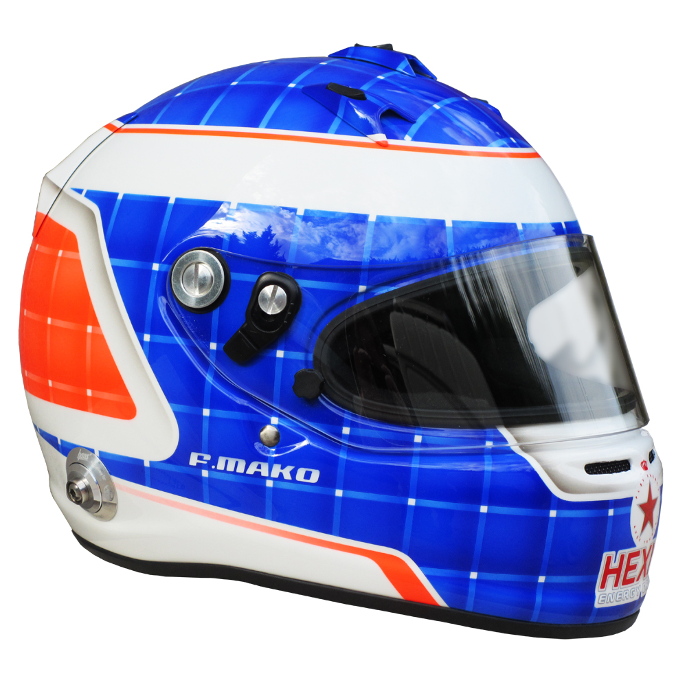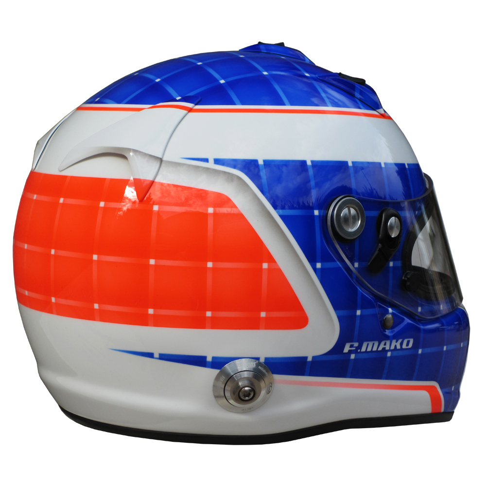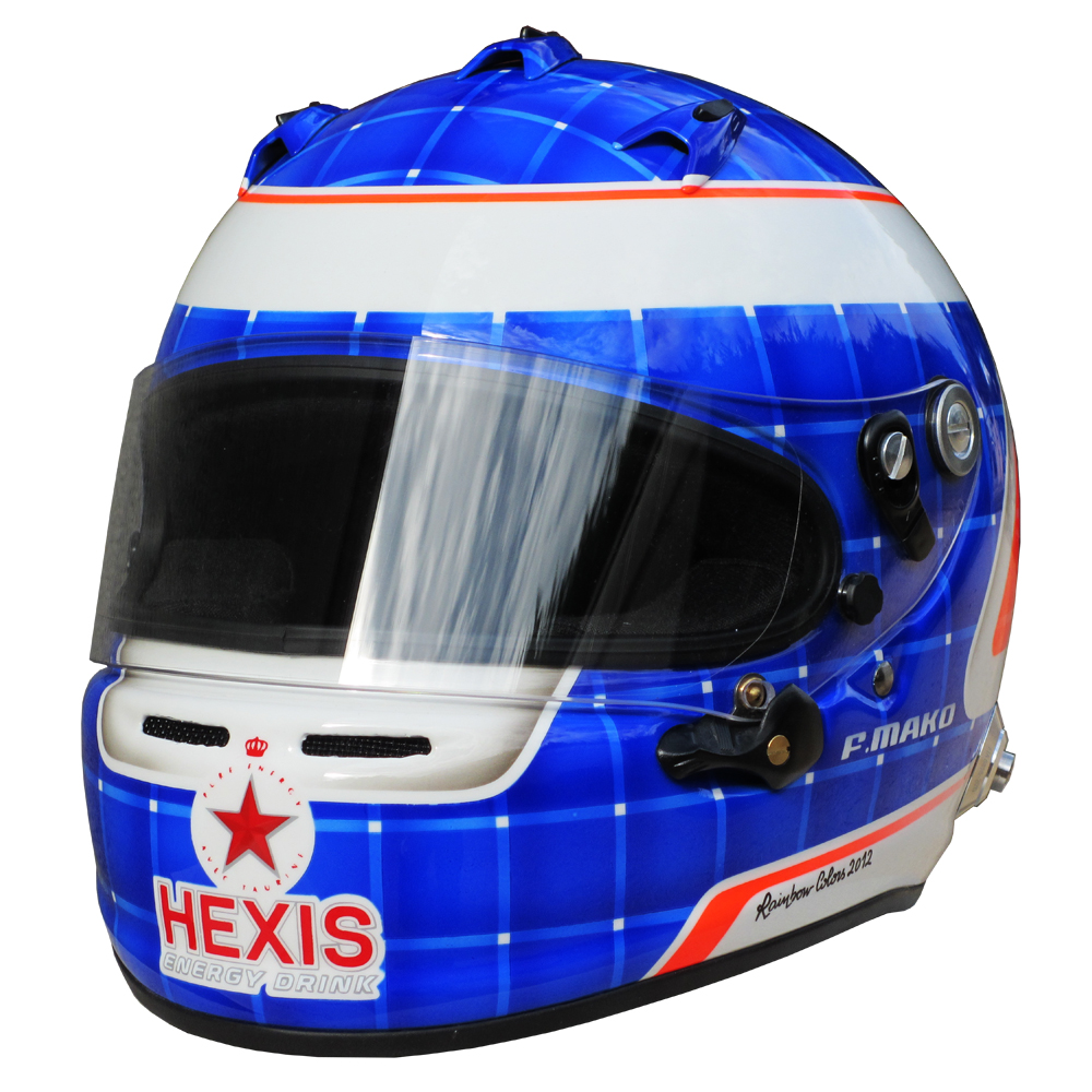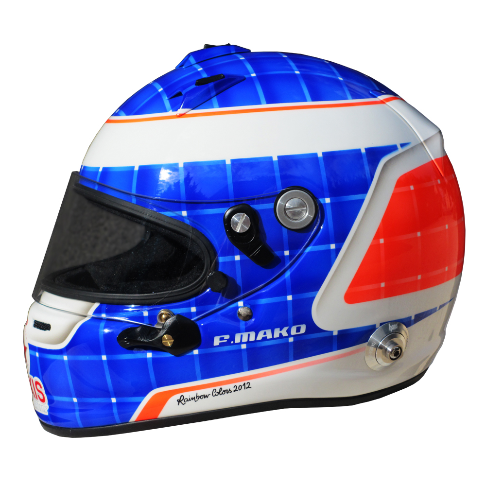 Circuit 2012 Frédéric MAKOWIECKI Casque Arai GP6 RC, peint par Christian Roux / Rainbow Colors en 2012 pour Frédéric Makowiecki, Team Hexis Racing, 2ème Championnat du Monde FIA GT1. Précédent Suivant