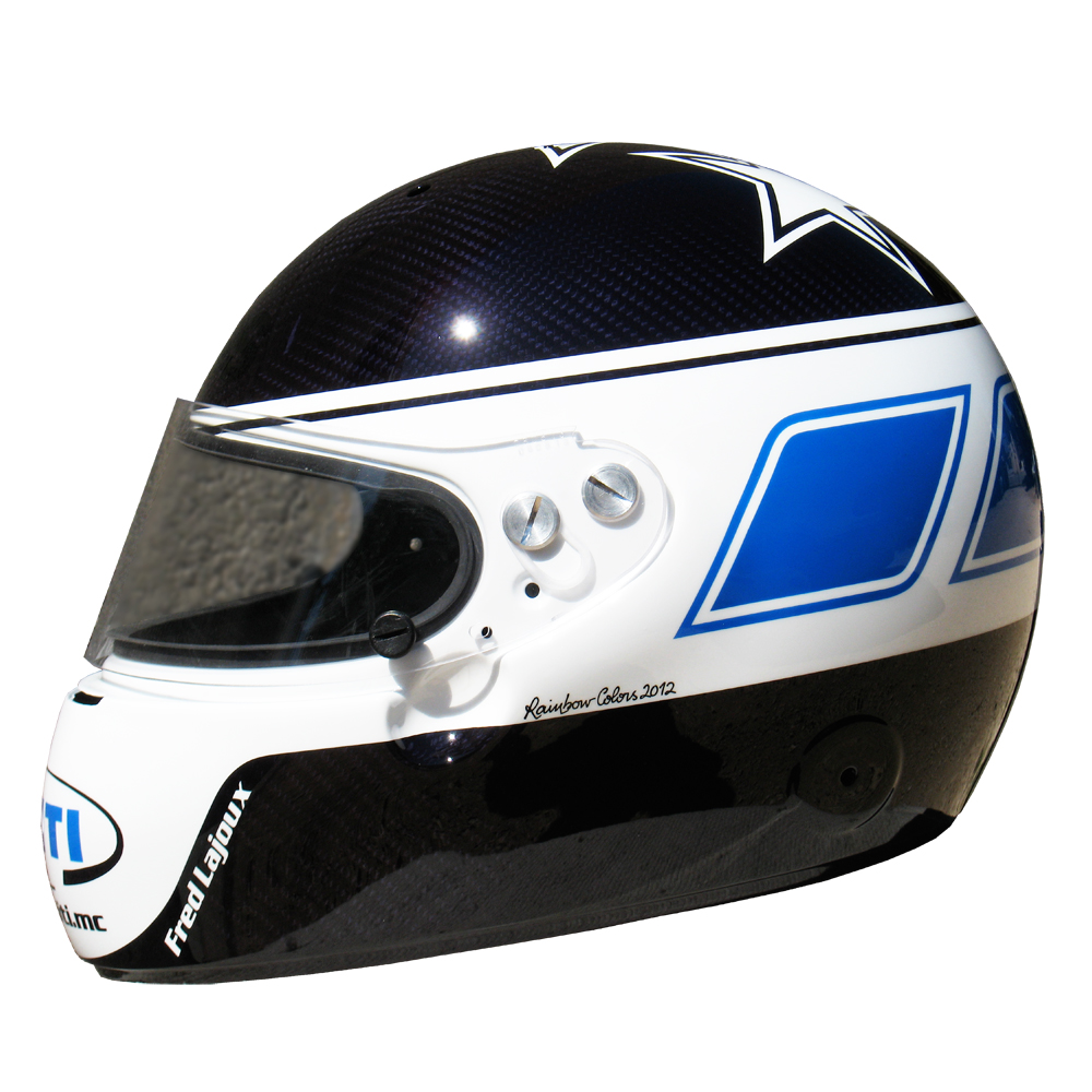 Circuit 2012 Frédéric LAJOUX Casque Stand 21 IVOS, Peint par Christian Roux / Rainbow Colors en 2012 pour Frédéric Lajoux, Grand Prix de Monaco Historique de Formule 3. Précédent Suivant