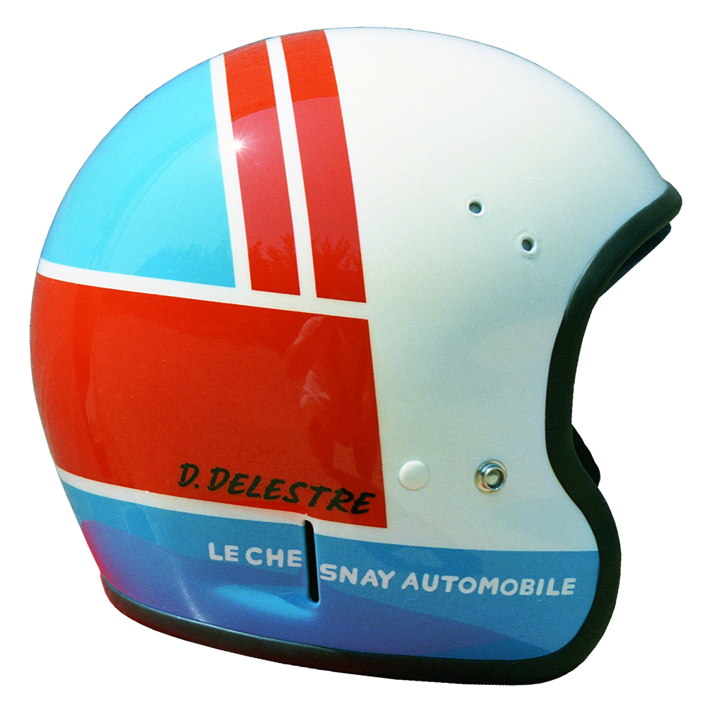 Circuit 1990 Dominique DELESTRE Casque Bell Mag 4, peint par Christian Roux / Rainbow Colors en 1990 pour Dominique Delestre, Coupe 309 Peugeot, Écurie Apomatox. Précédent Suivant