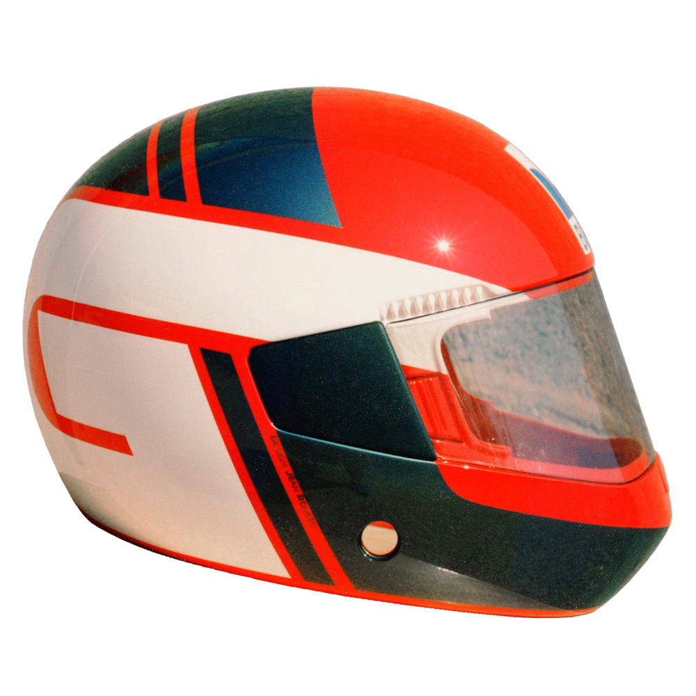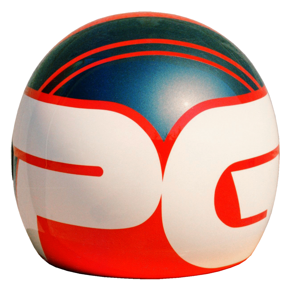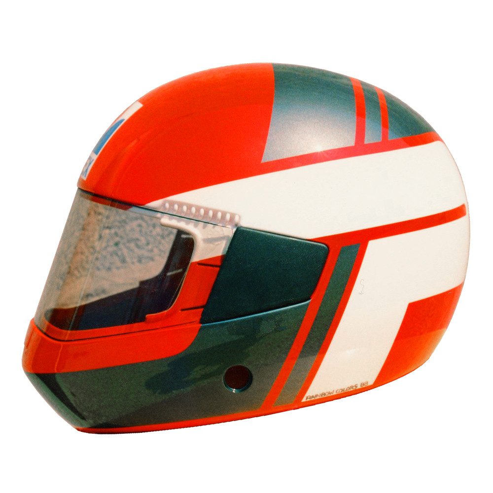 Circuit 1988 Patrick GONIN Casque GPA C2G, peint par Christian Roux / Rainbow Colors en 1988 pour Patrick Gonin, Équipe Legeay Sports Mécanique, Vice Champion de la Coupe d'Europe Renault Elf Turbo. Précédent Suivant
