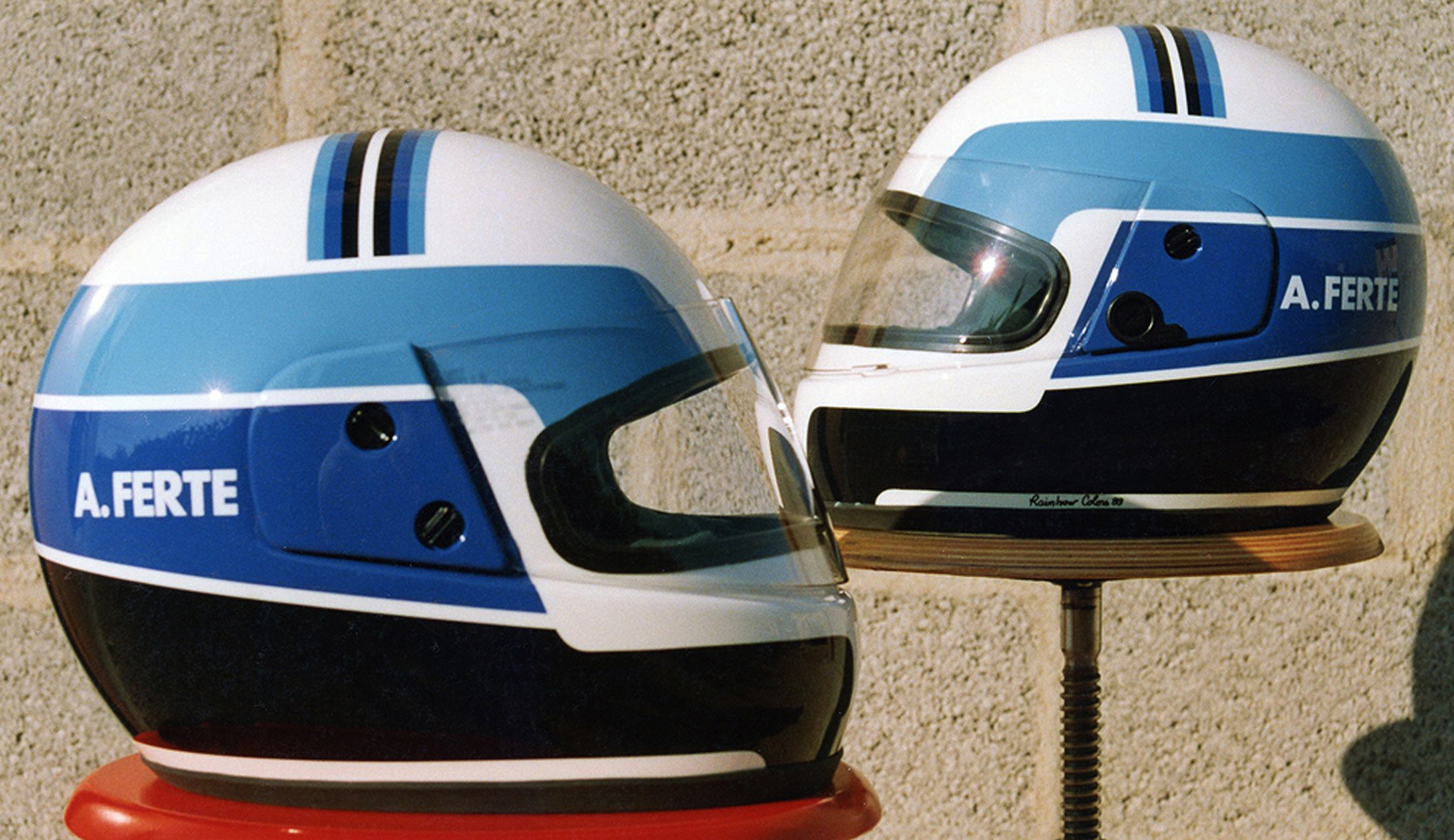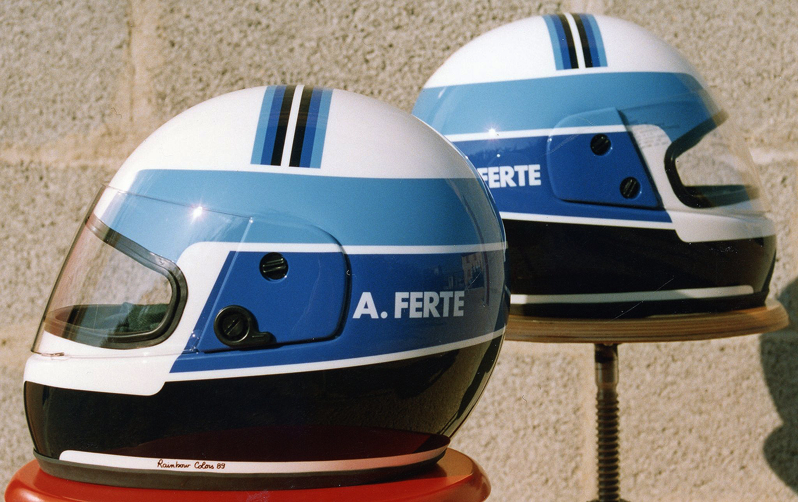 Circuit 1989 Alain FERTÉ #1 Casques Shoei ZRF-Z, peints par Christian Roux / Rainbow Colors en 1989 pour Alain Ferté, Team Cobra Motorsport, Championnat International de Formule 3000, Wolf Racing, Championnat DTM, Team Silk Cut Jaguar, 24 Heures du Mans. Précédent Suivant