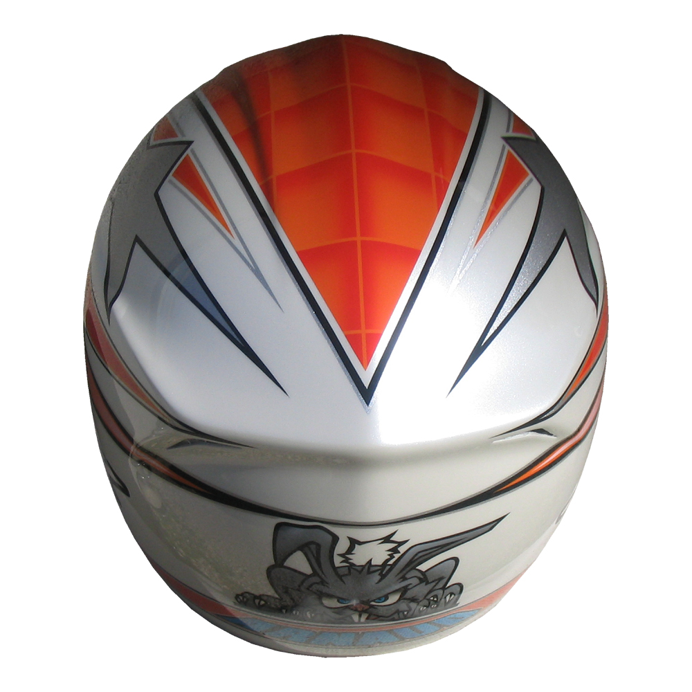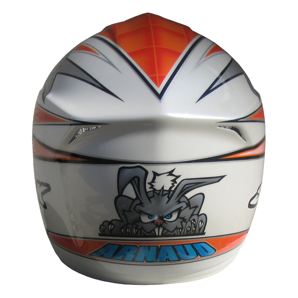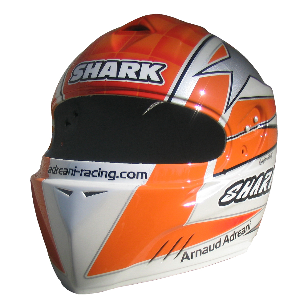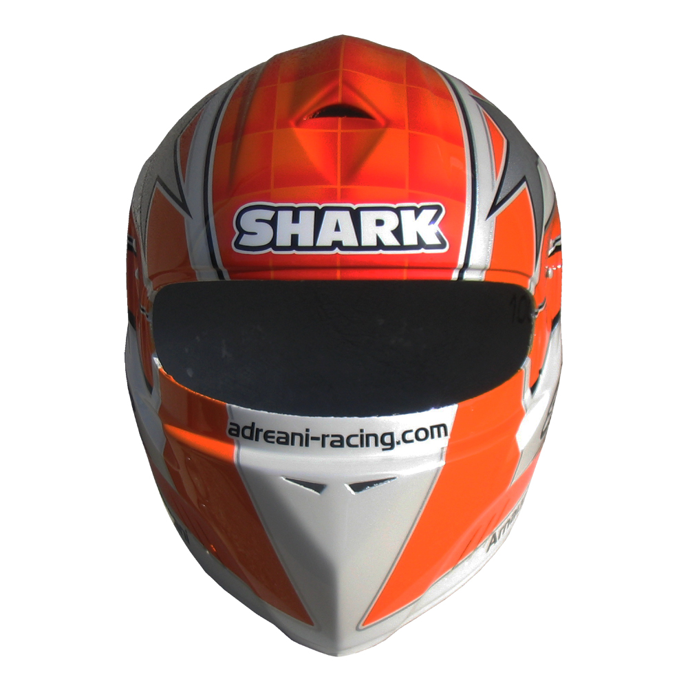 Circuit 2007 Arnaud ADREANI Casque Shark RS 4 F1, peint par Christian Roux / Rainbow Colors en 2007 pour Arnaud Adreani, Team Exigence Motorsport, Coupe Renault Clio France. Précédent Suivant