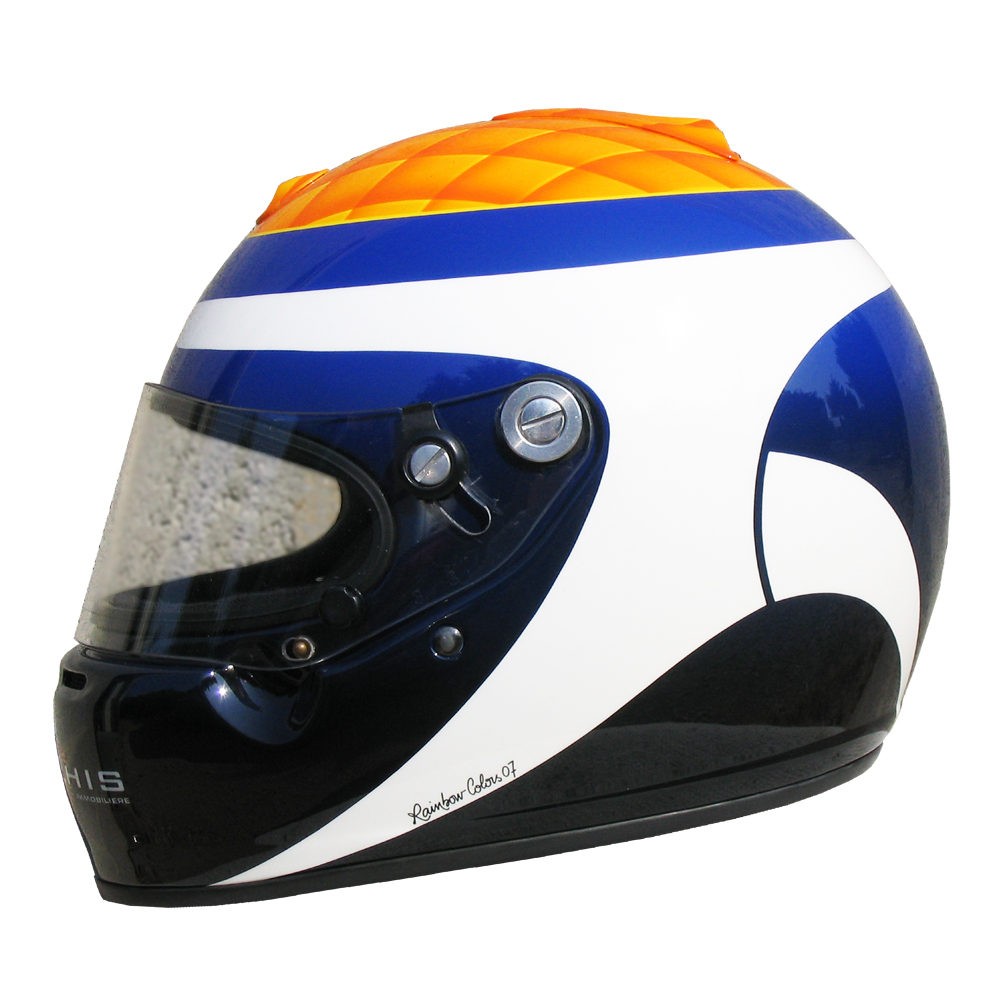 Circuit 2007 Patrice MANOPOULOS Casque Arai GP 5S, peint par Christian Roux / Rainbow Colors en 2007 pour Patrice Manopoulos, Team Luc Alphand Aventures, Le Mans Series LMGT1. Précédent Suivant