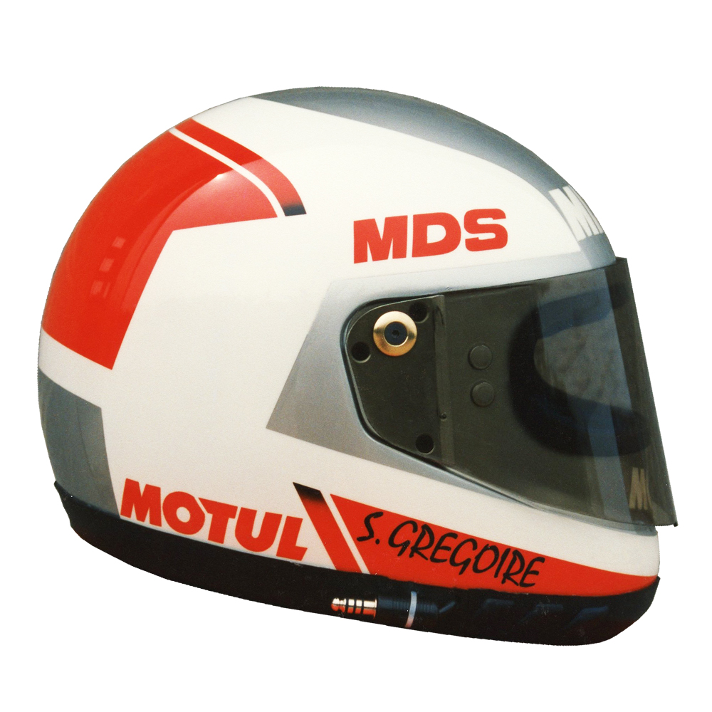 Circuit 1989 Stéphane GREGOIRE Casque MDS F1, crée et peint par Christian Roux / Rainbow Colors en 1989 pour Stéphane Gregoire, Team Motul Nogaro, 5ème du Championnat de France de Formule Renault. Précédent Suivant