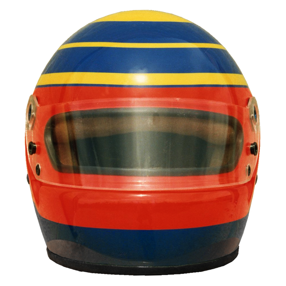 Circuit 1988 Hervé LECLERC Casque Bell XFM-1, peint par Christian Roux / Rainbow Colors en 1988 pour Hervé Leclerc, Team AA Sport, 8ème du Grand Prix de Monaco de Formule 3. Précédent Suivant