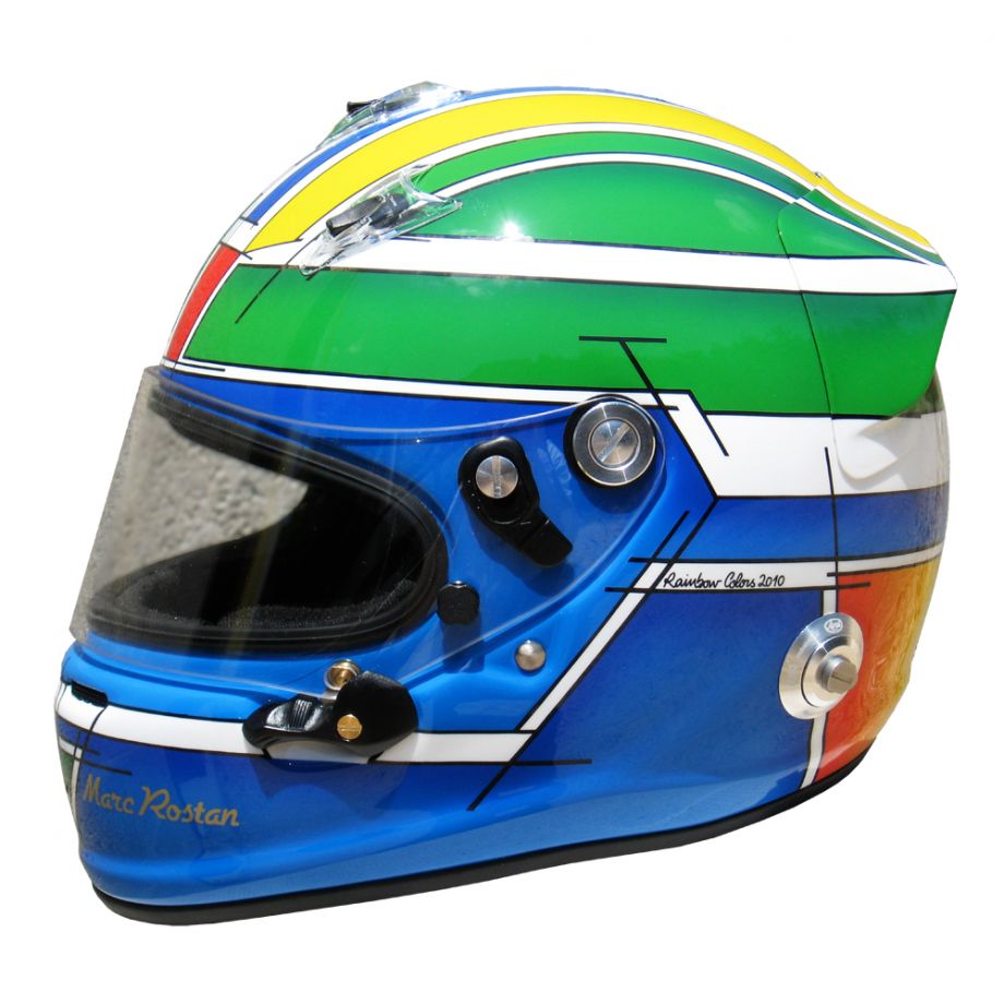 Retrouvez les casques des pilotes dans les différentes disciplines de sport automobile sur circuit peints par Christian Roux au travers des nombreuses saisons depuis les débuts de l'activité de Rainbow Colors en 1979.