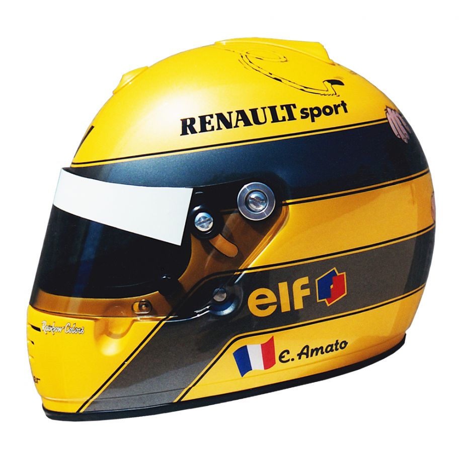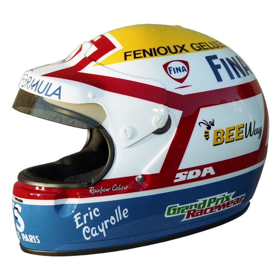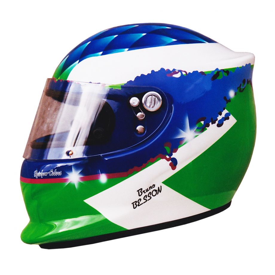 Retrouvez les casques des pilotes dans les différentes disciplines de sport automobile sur circuit peints par Christian Roux au travers des nombreuses saisons depuis les débuts de l'activité de Rainbow Colors en 1979.