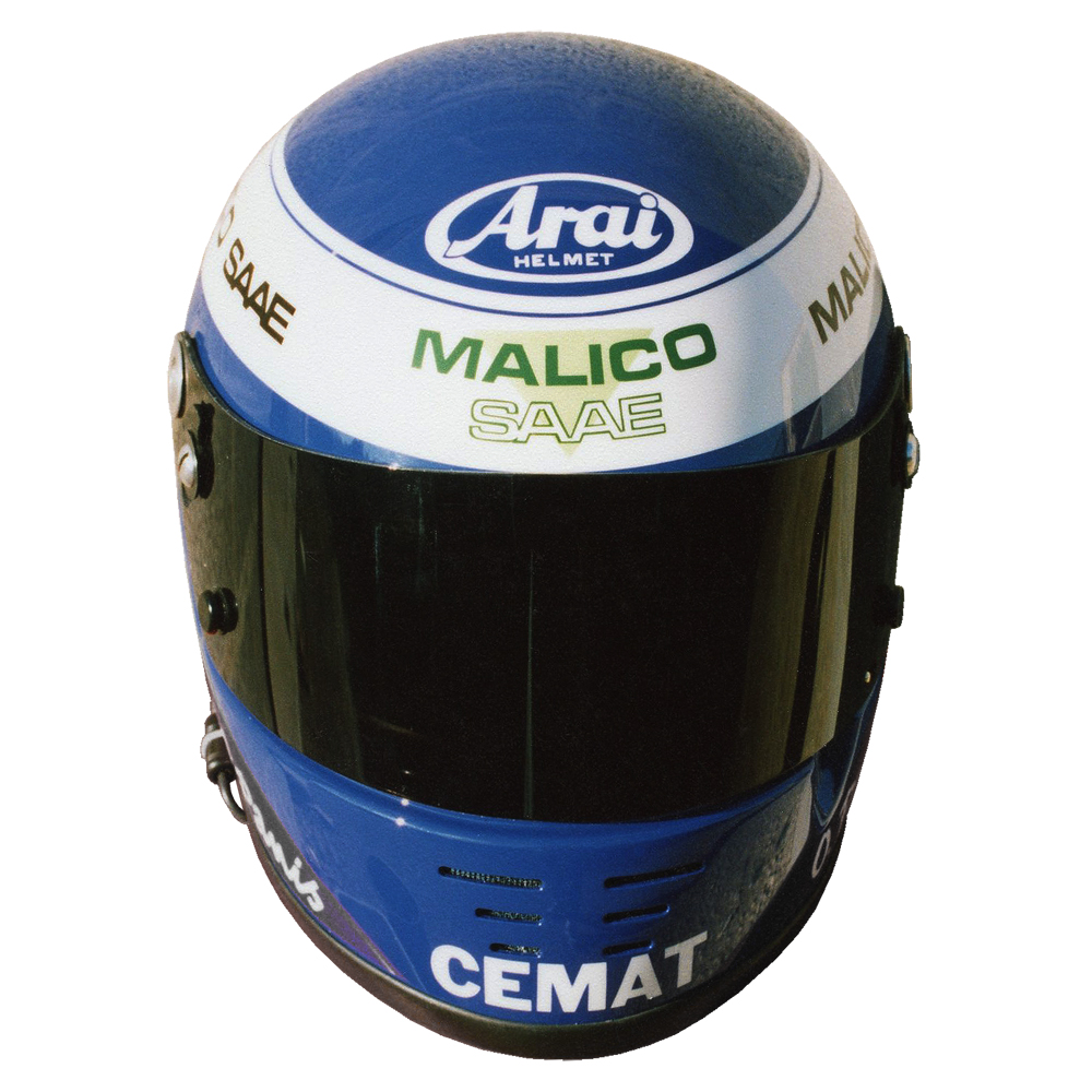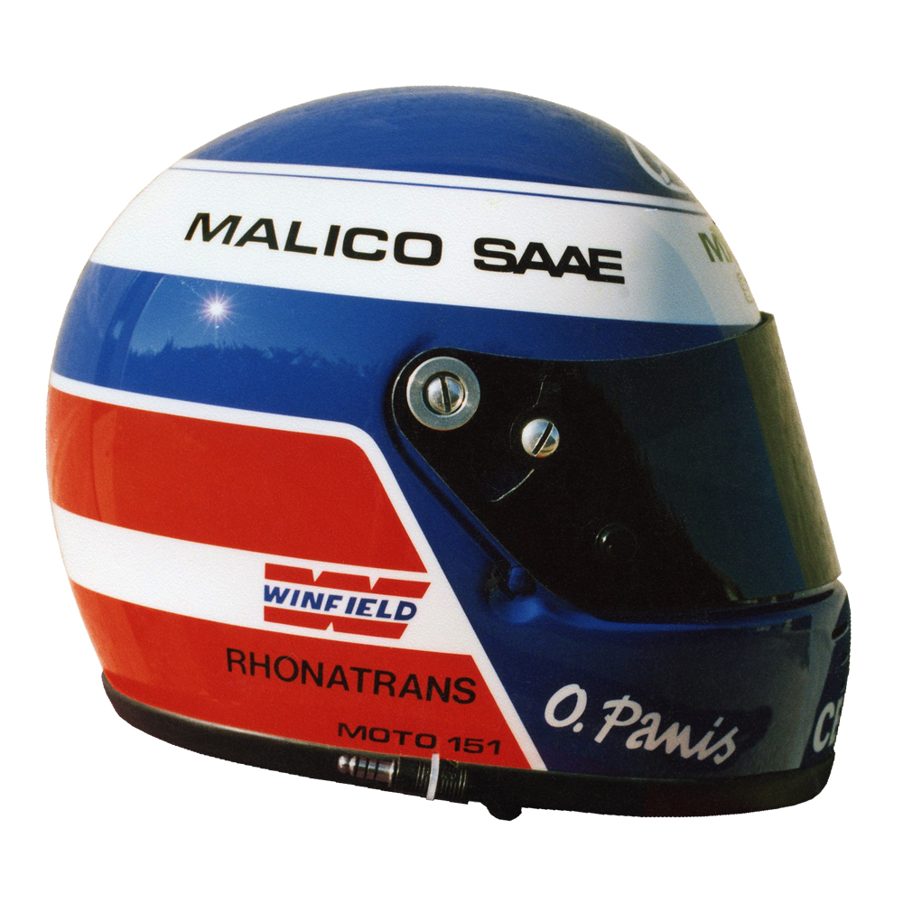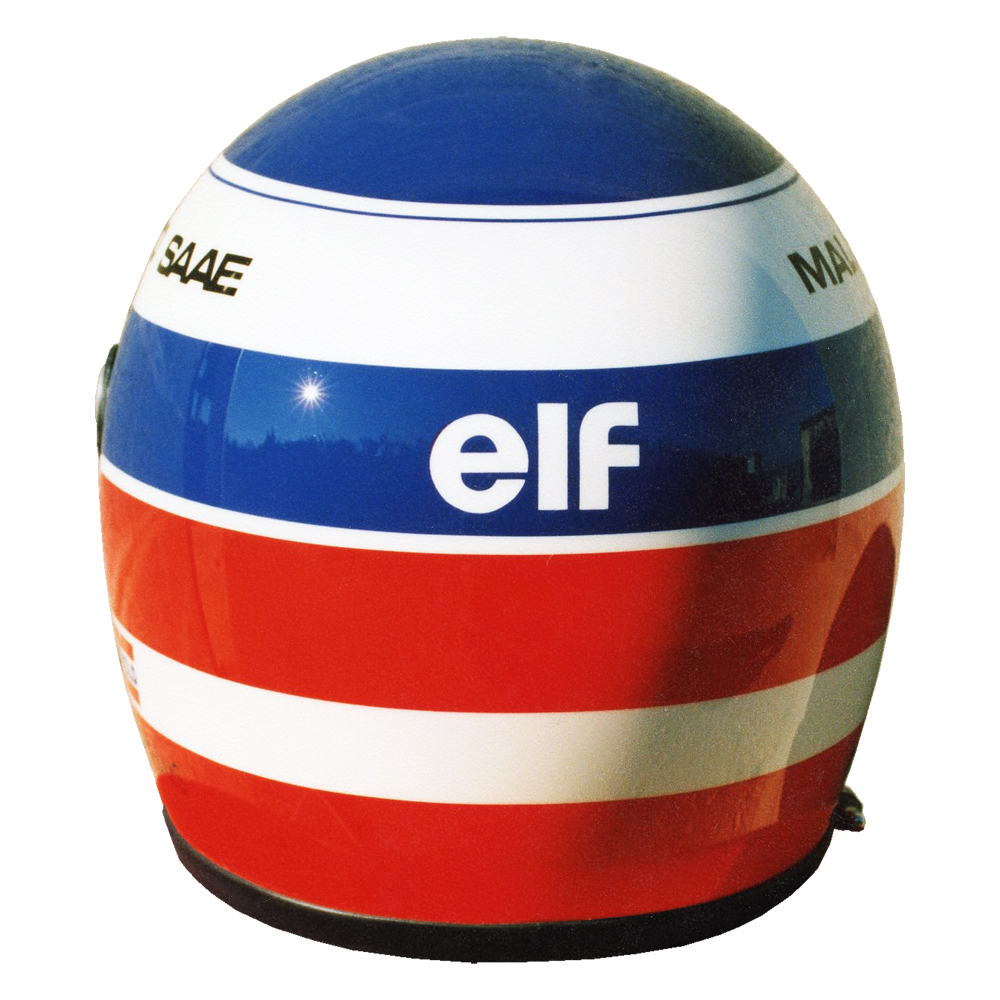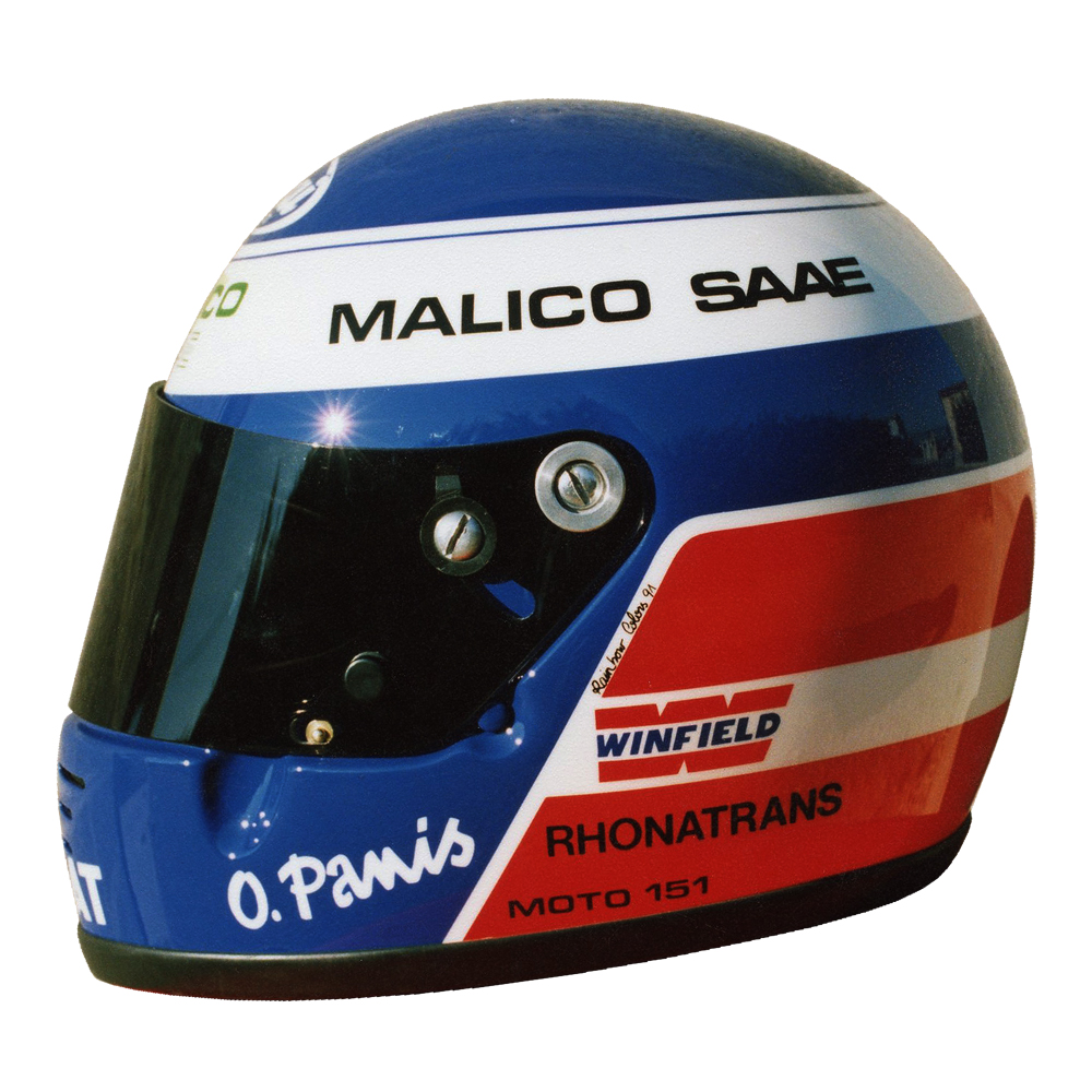 Formule 1 1991 Olivier PANIS #1 Casque Arai GP 2, peint par Christian Roux / Rainbow Colors en 1991 pour Olivier Panis, Team la Filière Elf, Vice Champion de France Formule 3. Précédent Suivant