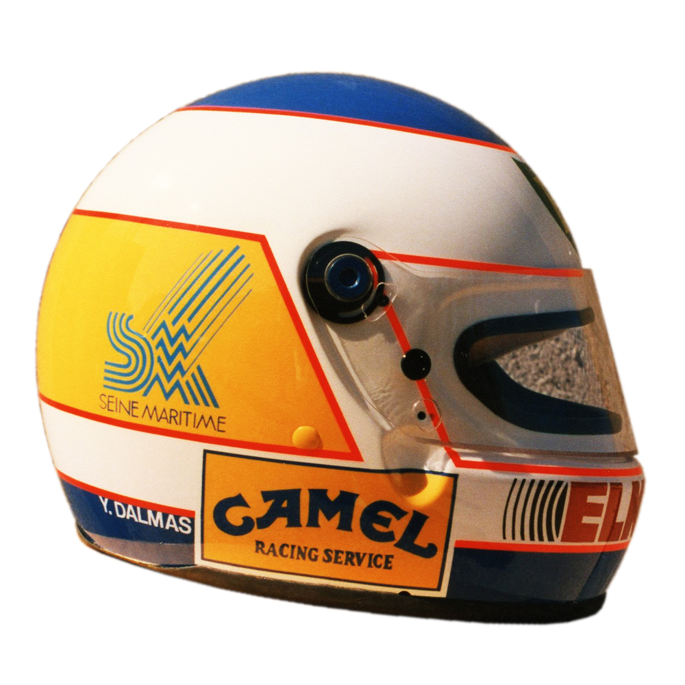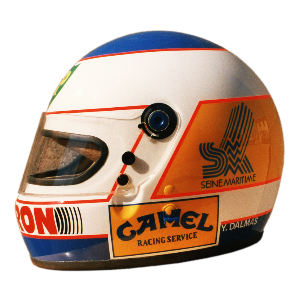 Formule 1 1988 Yannick DALMAS #1 Casque Bell XFM-1, peint par Christian Roux / Rainbow Colors en 1988 pour Yannick Dalmas, Team Larrousse et Camels F1, Championnat du Monde de Formule 1. Précédent Suivant