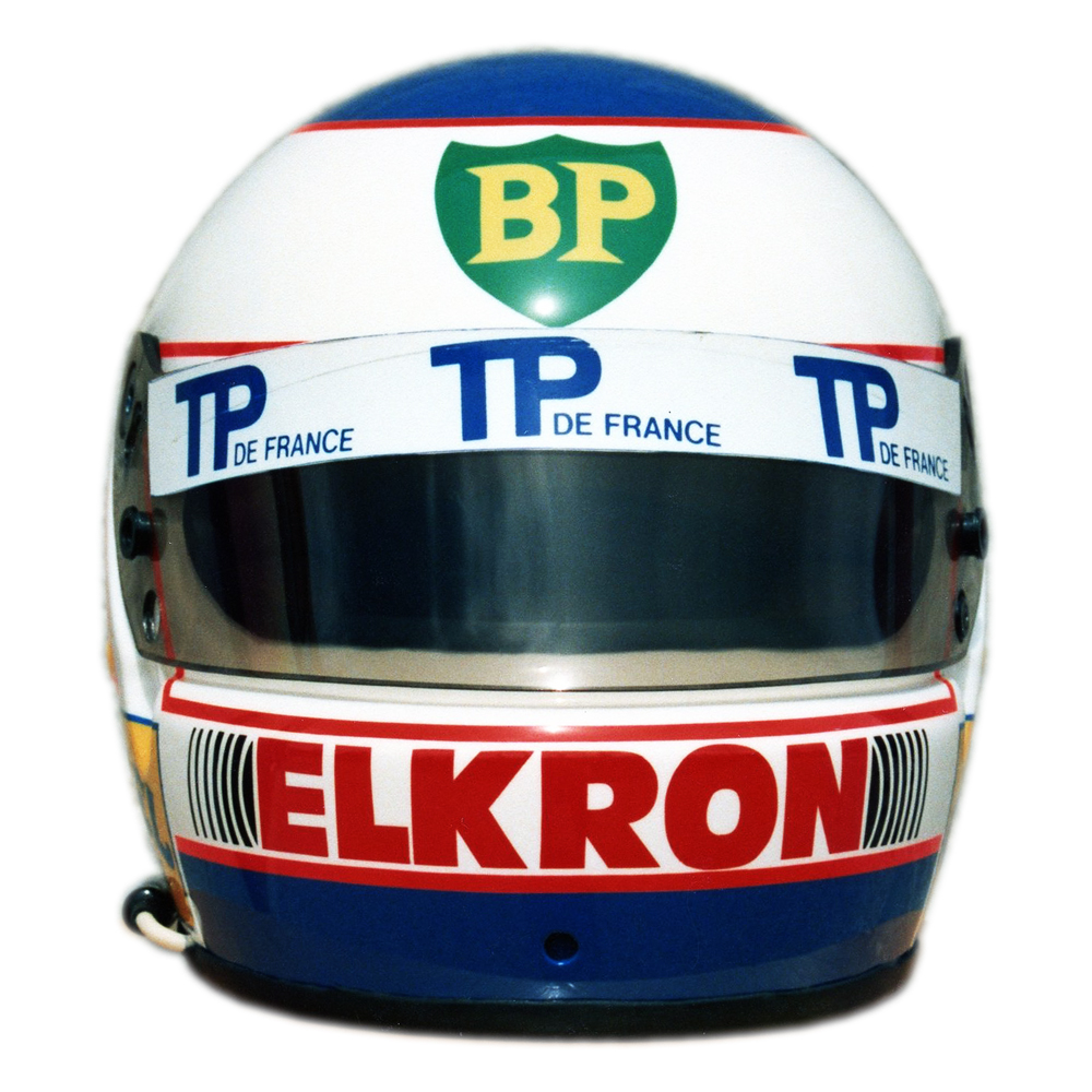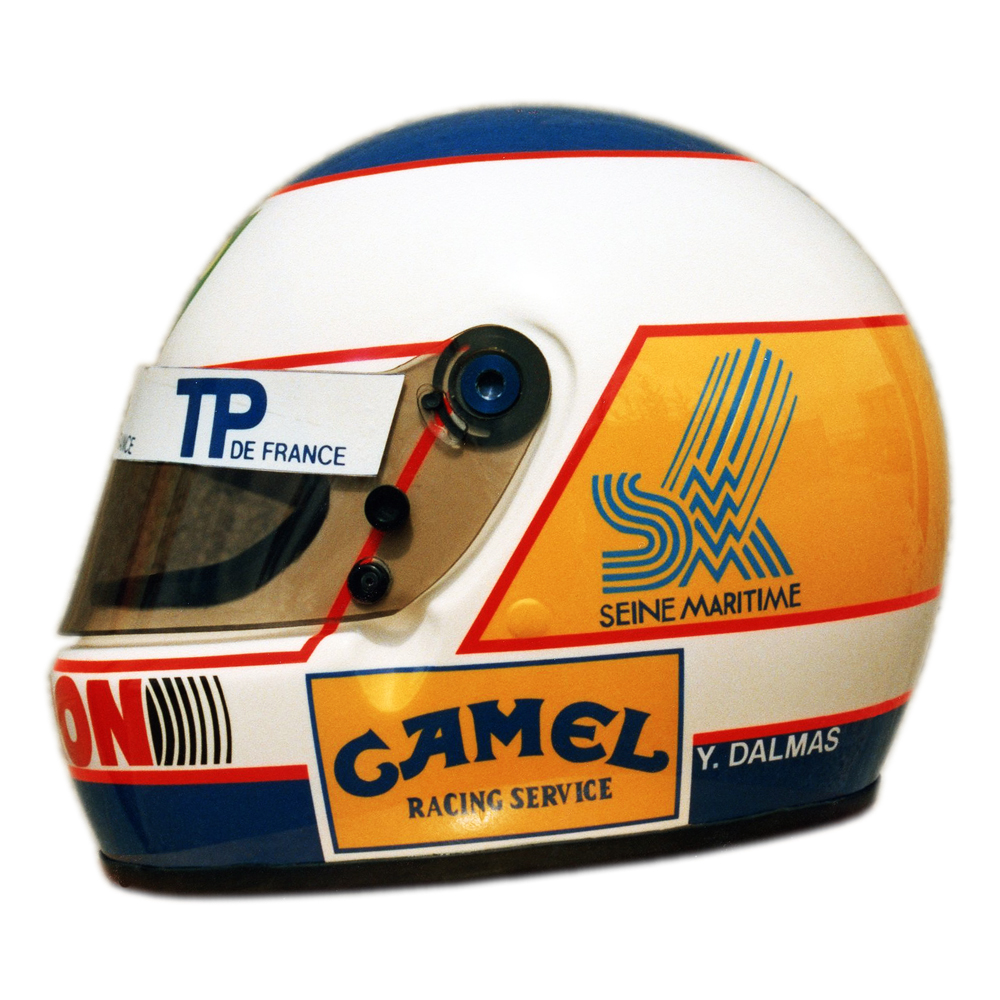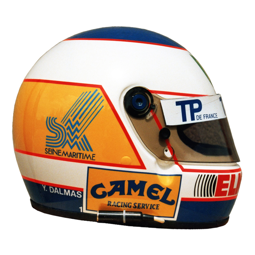 Formule 1 1988 Yannick DALMAS #2 Casque Bell XFM-1, peint par Christian Roux / Rainbow Colors en 1988 pour Yannick Dalmas, Team Larrousse et Calmels F1, Championnat du Monde de Formule 1. Précédent Suivant