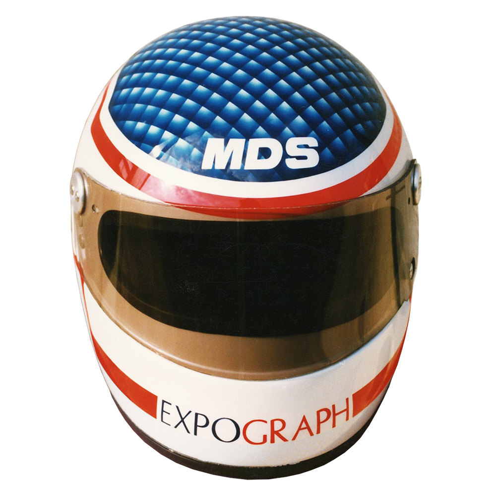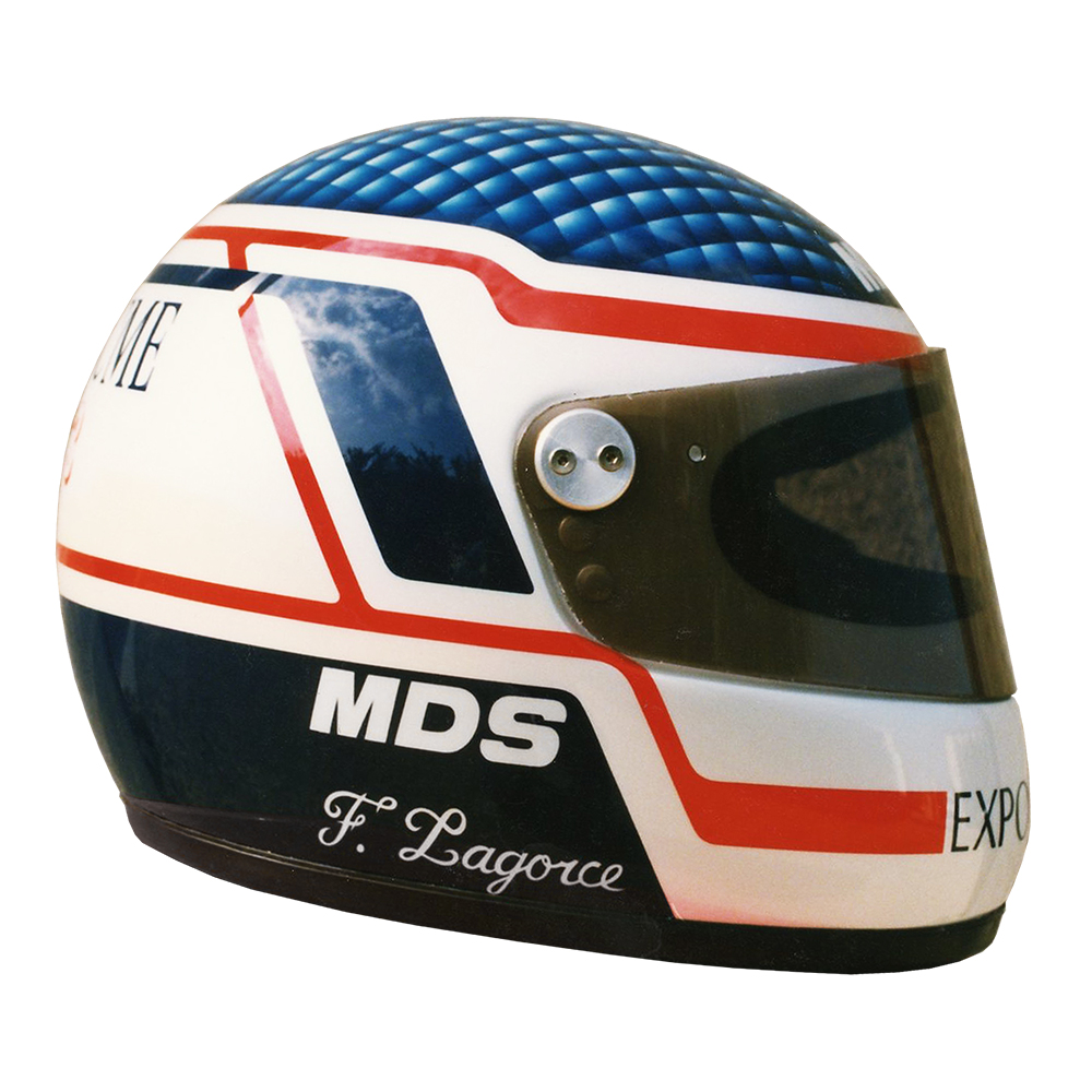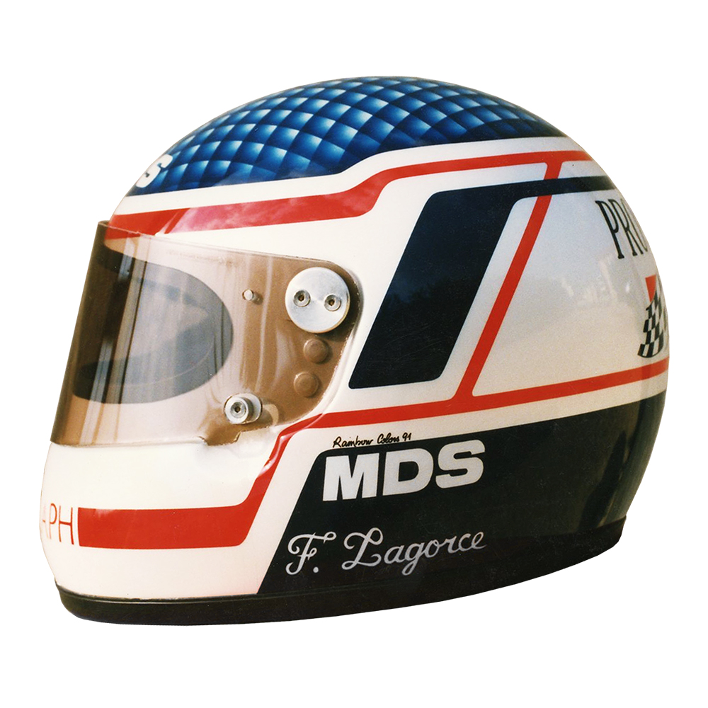 Formule 1 1991 Franck LAGORCE #1 Casque MDS F1, peint par Christizn Roux / Rainbow Colors en 1991 pour Franck Lagorce, Écurie Promatecme, 4ème du Championnat de France de Formule 3. Précédent Suivant