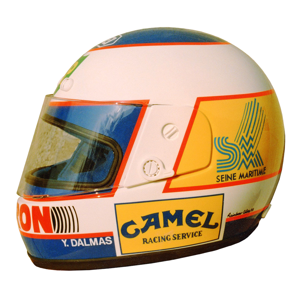 Formule 1 1988 Yannick DALMAS #5 Casque Shoei ZRF-Z, peint par Christian Roux / Rainbow Colors en 1988 pour Yannick Dalmas, Team Larrousse et Calmels F1, Championnat du Monde de Formule 1. Précédent Suivant