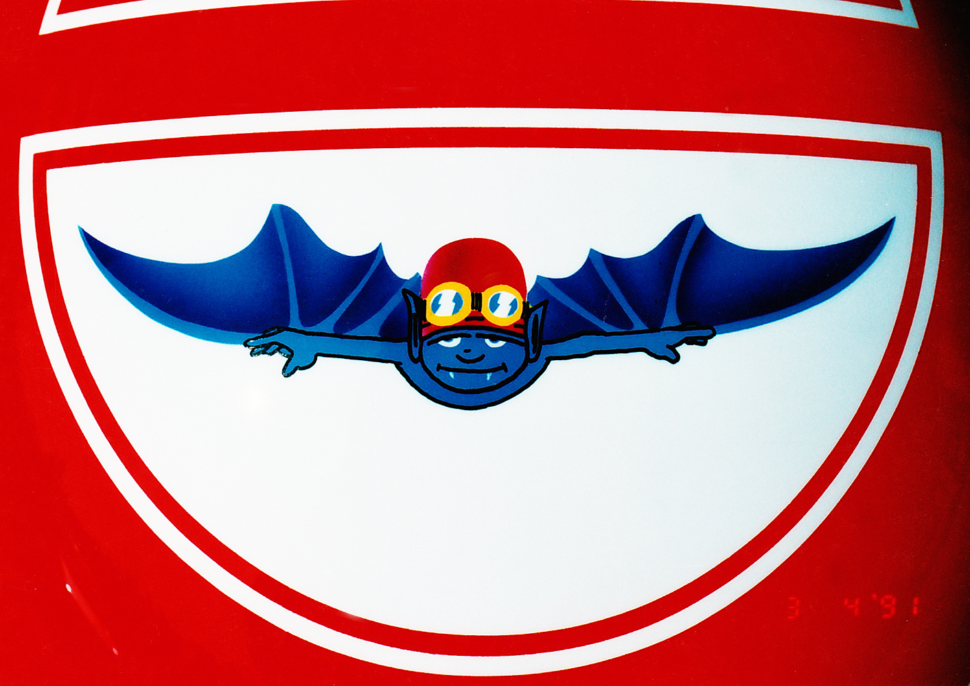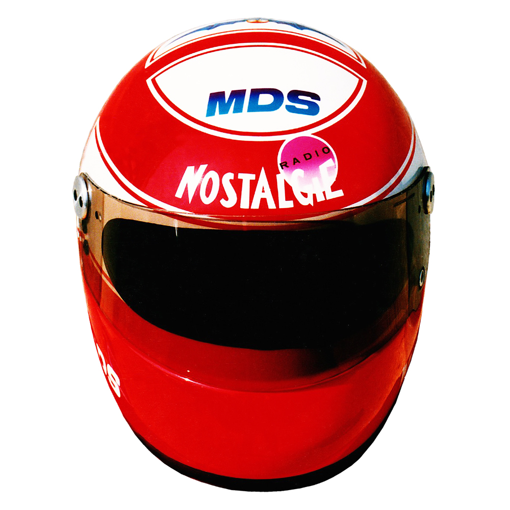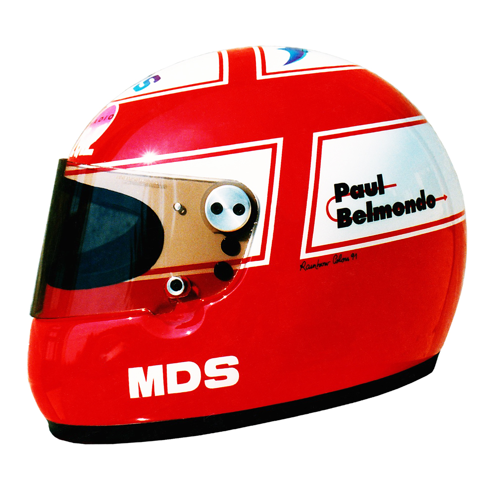 Formule 1 1991 Paul BELMONDO #1 Casque MDS Auto, peint par Christian Roux / Rainbow Colors en 1991 pour Paul Belmondo, écurie Apomatox. Précédent Suivant
