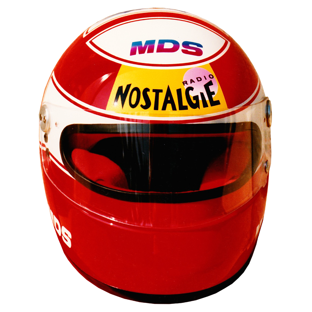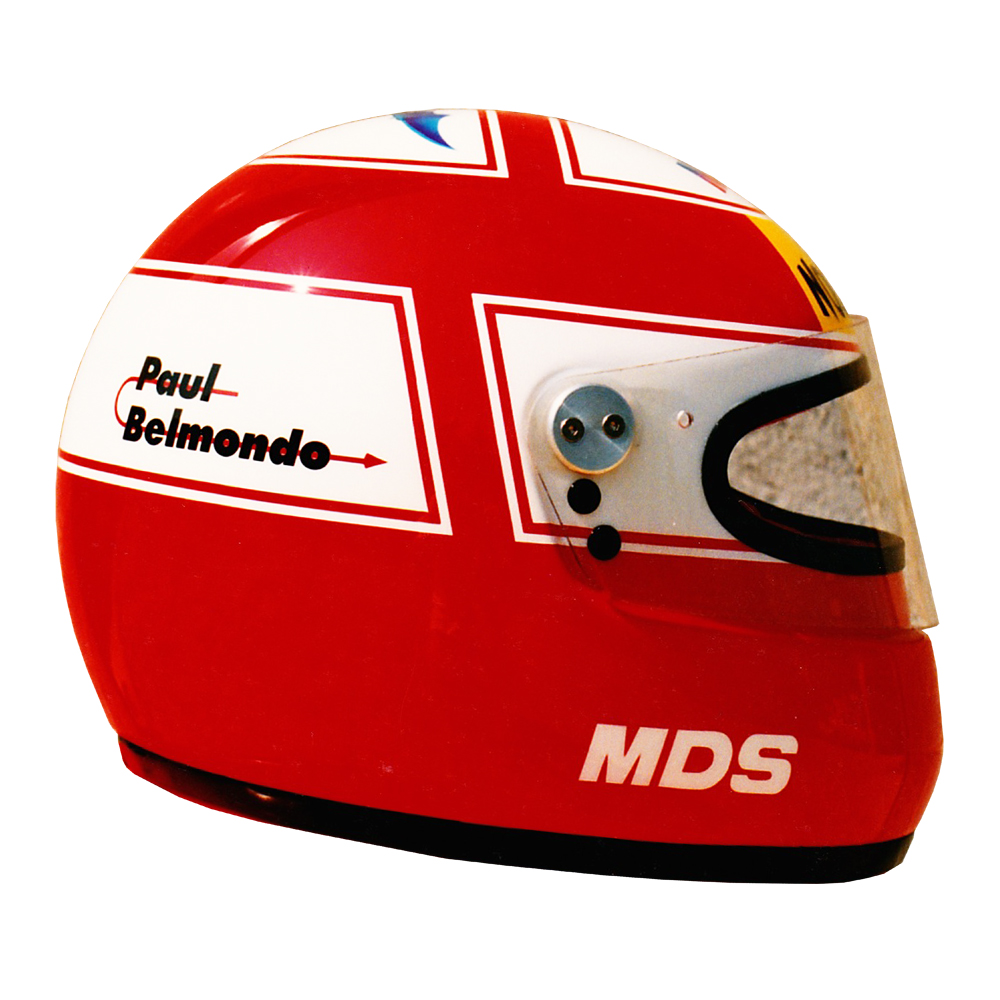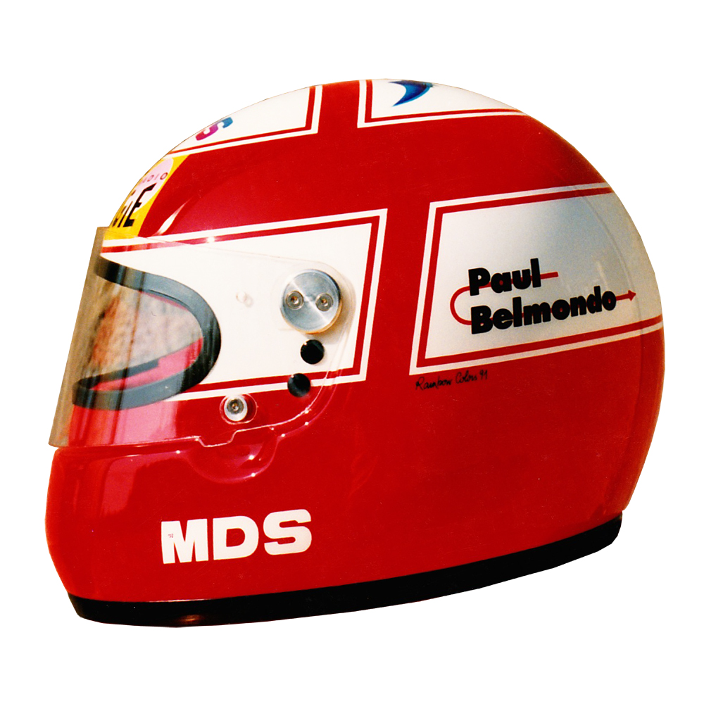 Formule 1 1991 Paul BELMONDO #3 Casque MDS Auto, peint par Christian Roux / Rainbow Colors en 1991 pour Paul Belmondo, écurie Apomatox. Précédent Suivant