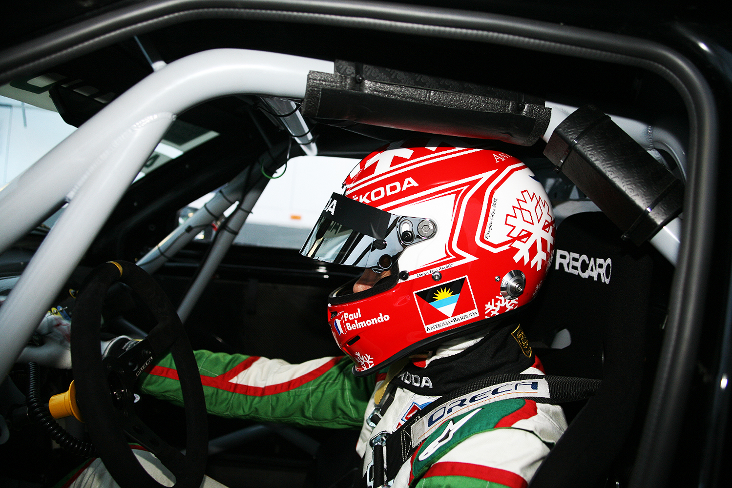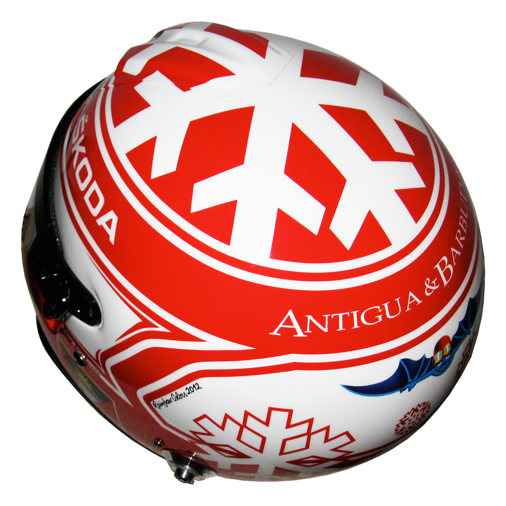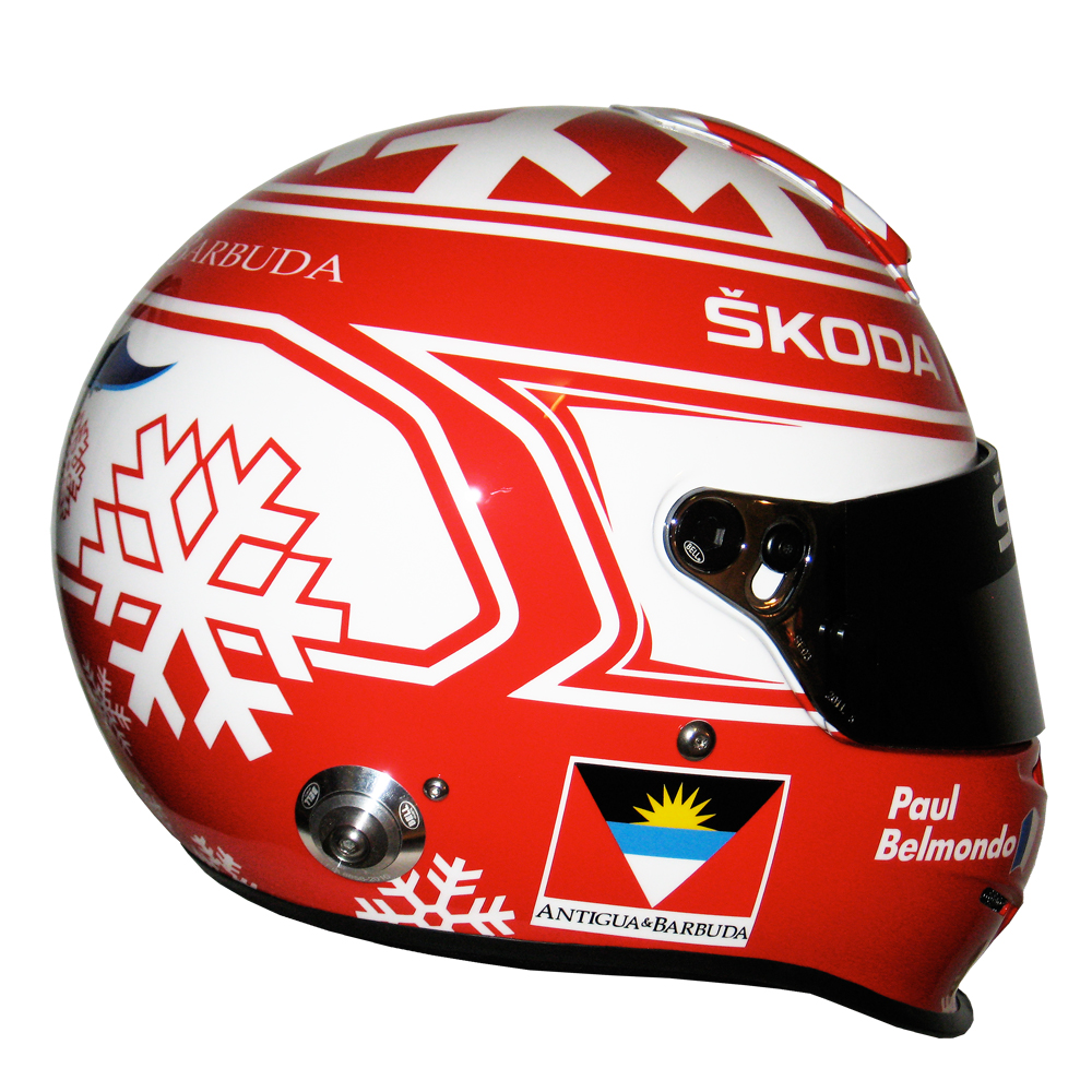 Formule 1 2012 Paul BELMONDO Casque Bell RS3, peint par Christian Roux / Rainbow Colors en 2012 pour Paul Belmondo, Team Skoda Trophée Andros. Précédent Suivant