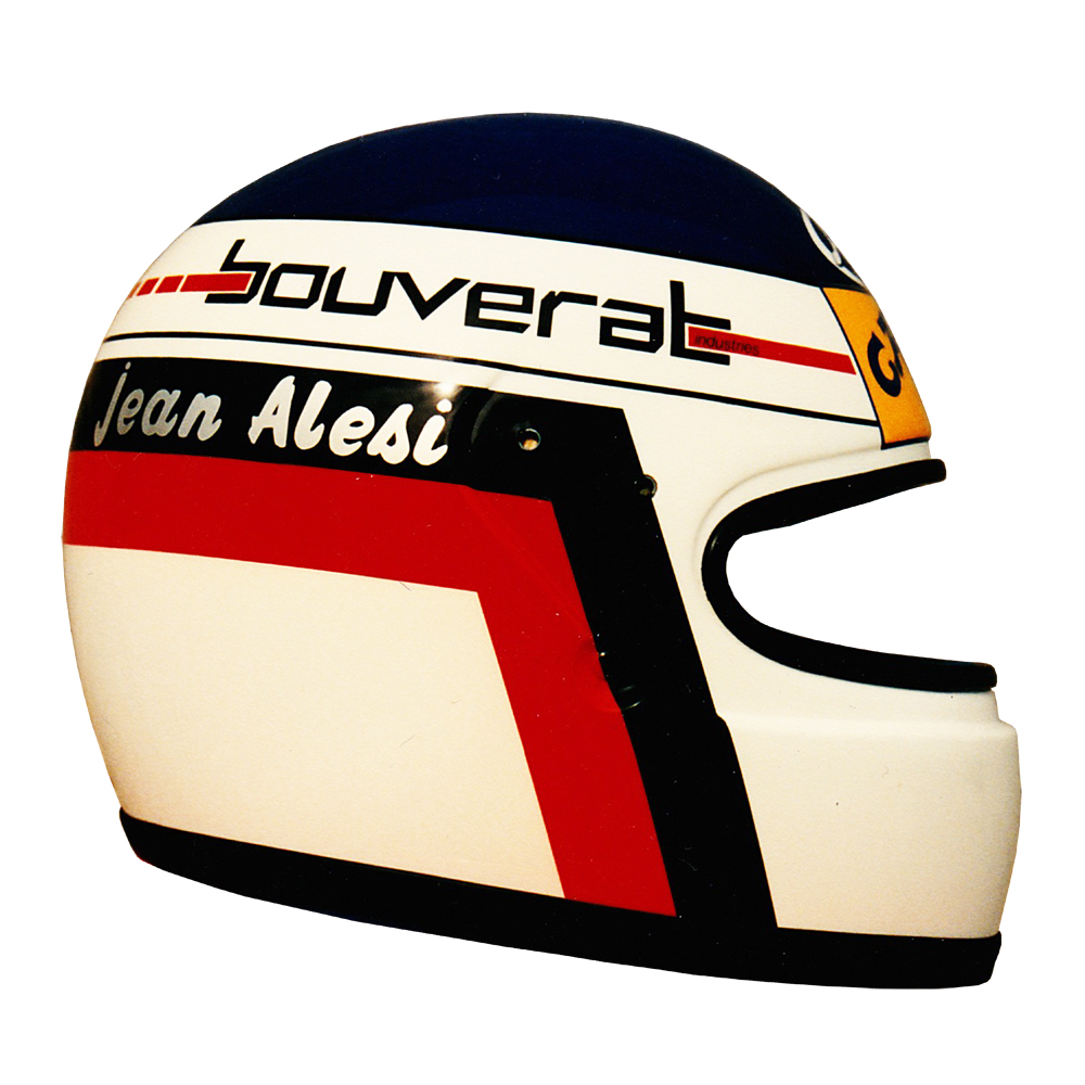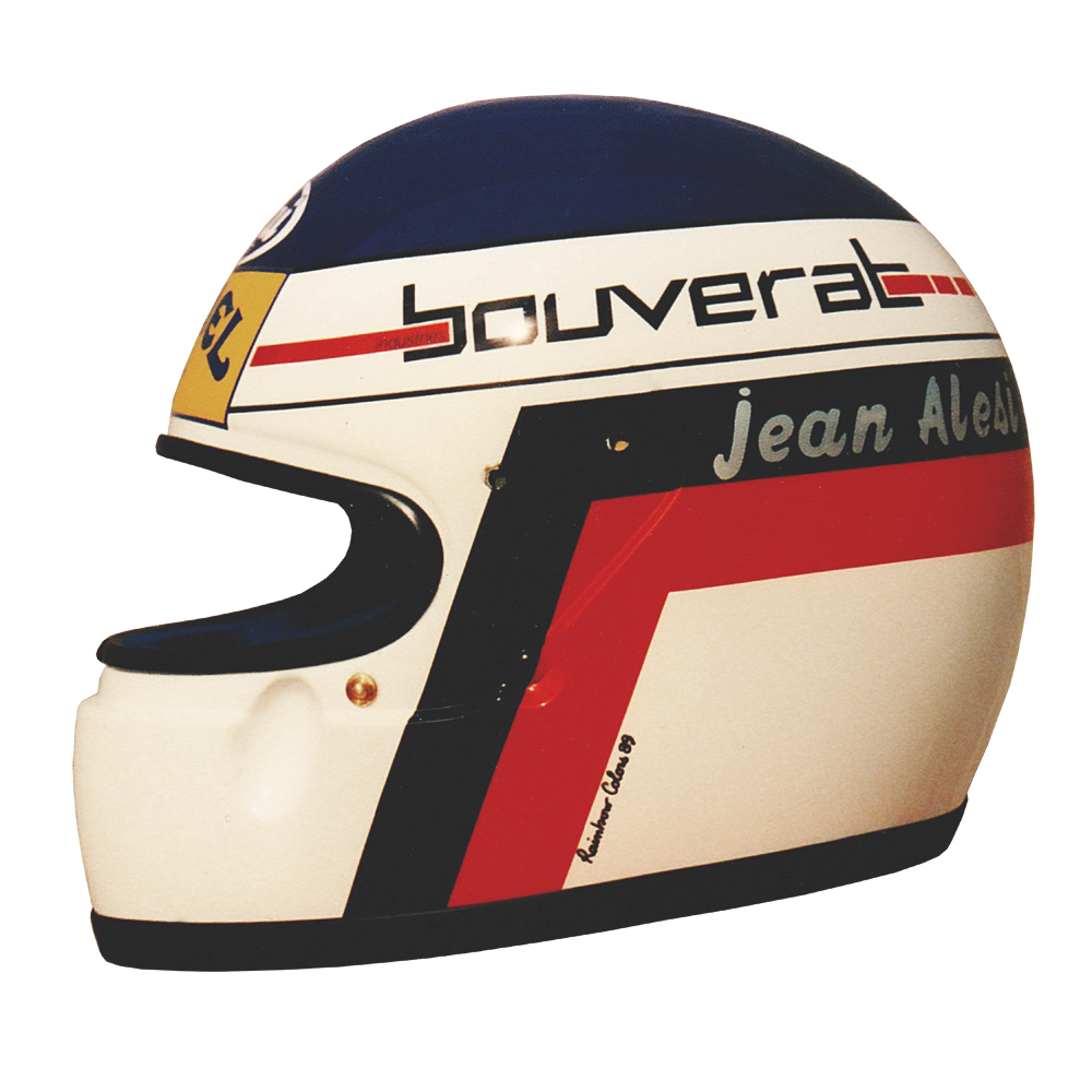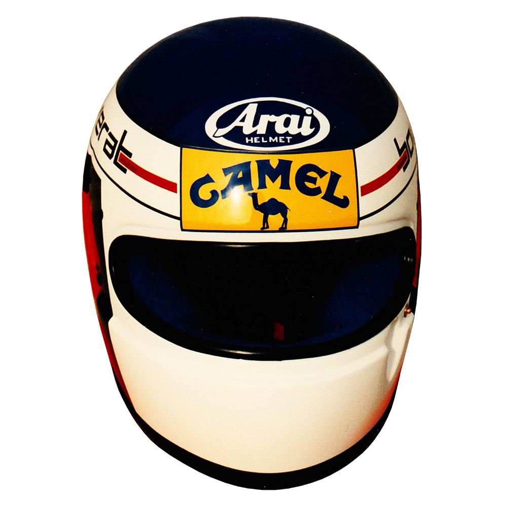 Formule 1 1989 Jean ALESI Casque Arai GP2, peint par Christian Roux / Rainbow Colors en 1989 pour Jean Alesi, F 3000, Eddie Jordan Racing. Précédent Suivant