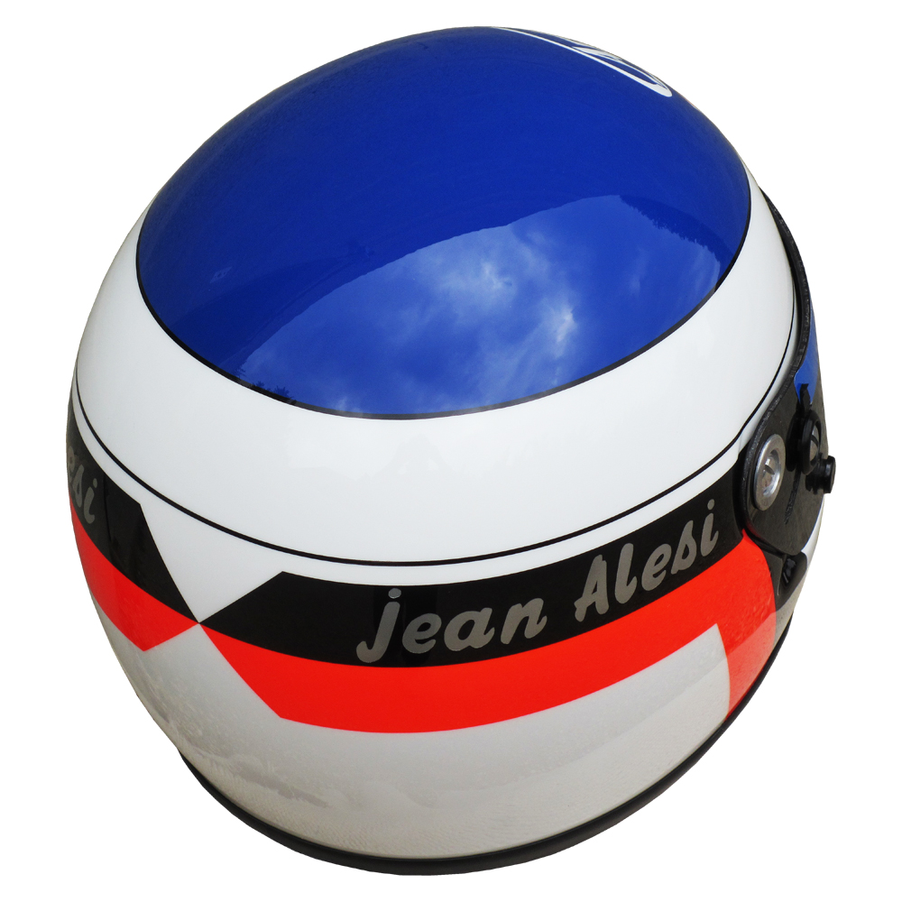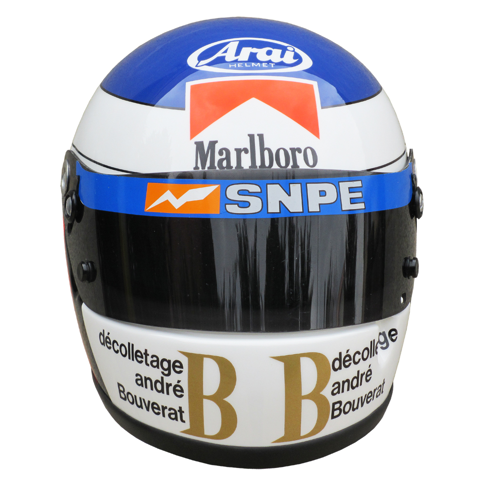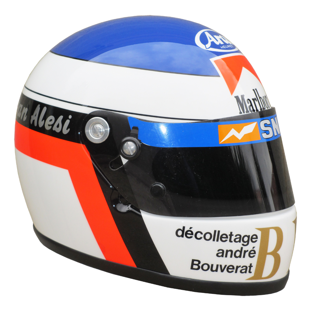 Formule 1 1988 Jean ALESI #2 Casque Arai GP2, peint par Christian Roux / Rainbow Colors en 1988 pour Jean Alesi, F 3000 équipe Oreca. Précédent Suivant