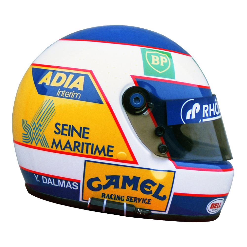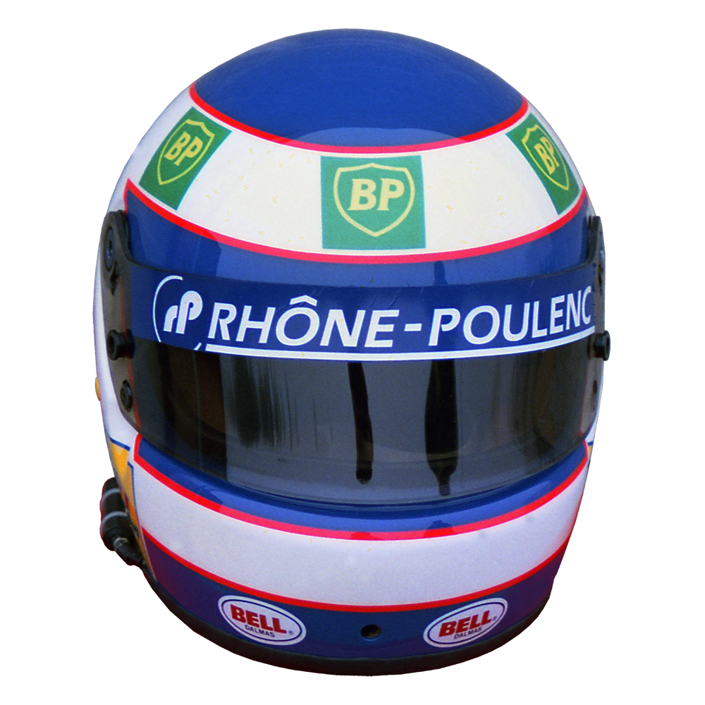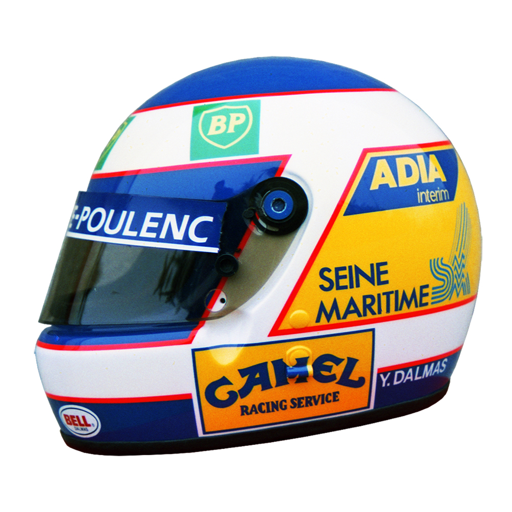 Formule 1 1989 Yannick DALMAS #1 Casque Bell XFM-1, peint par Christian Roux / Rainbow Colors en 1989 pour Yannick Dalmas, équipe Larrousse. Précédent Suivant
