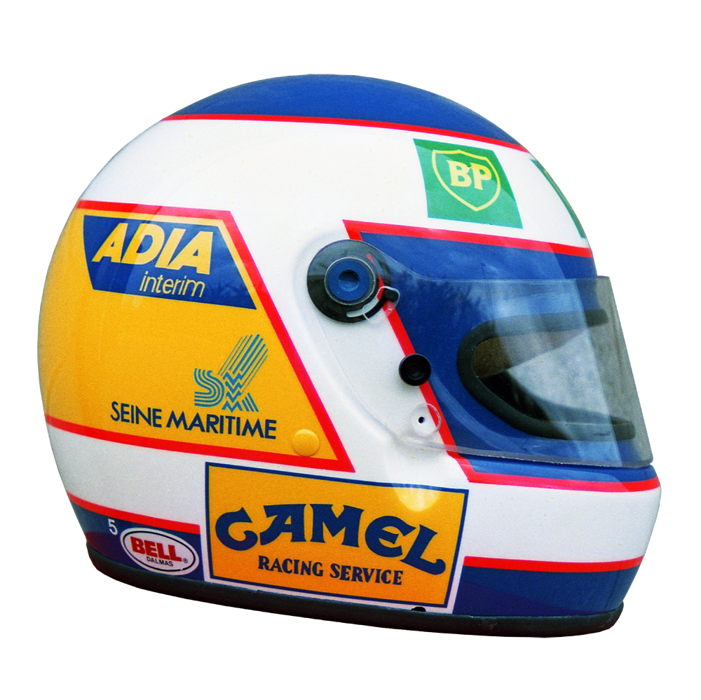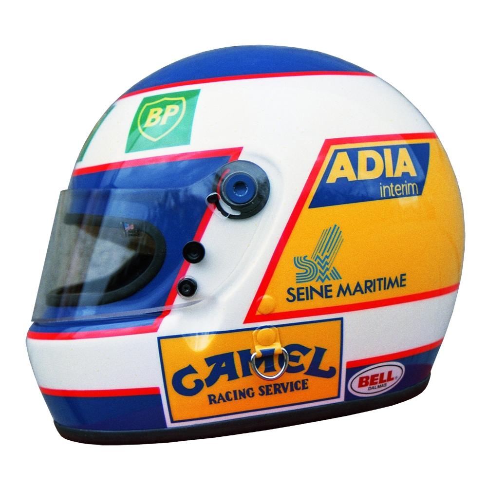 Formule 1 1989 Yannick DALMAS #2 Casque Bell XFM-1, peint par Christian Roux / Rainbow Colors en 1989 pour Yannick Dalmas, équipe Larrousse. Précédent Suivant