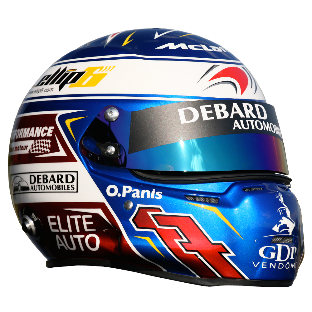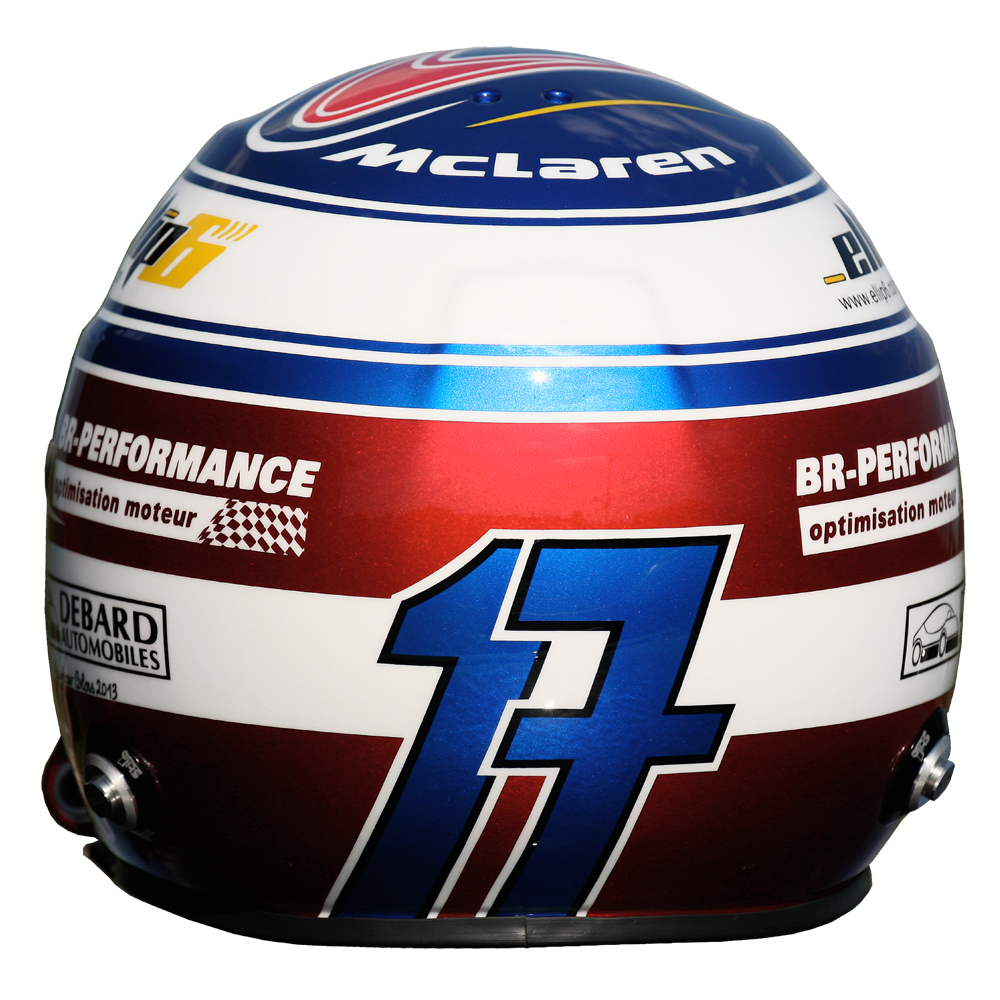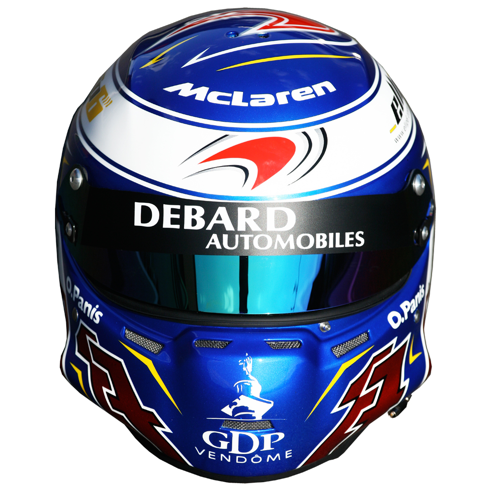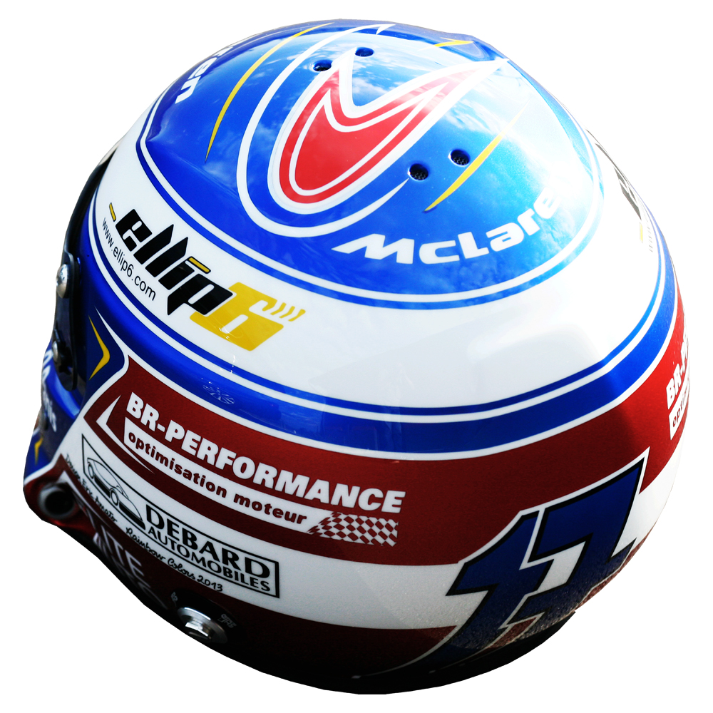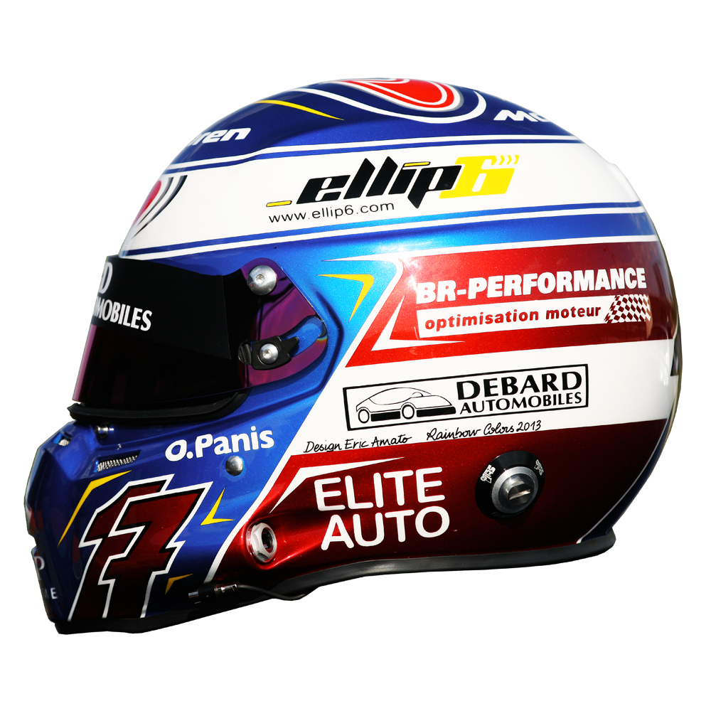 Formule 1 2013 Olivier PANIS #1 Casque Stilo ST 4, peint par Christian Roux / Rainbow Colors en 2013 pour Olivier Panis, GT Tour Team Hexis Mc Laren. Précédent Suivant