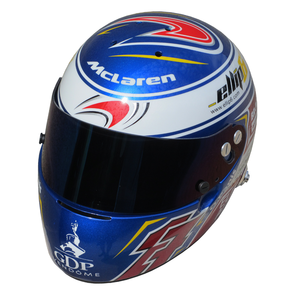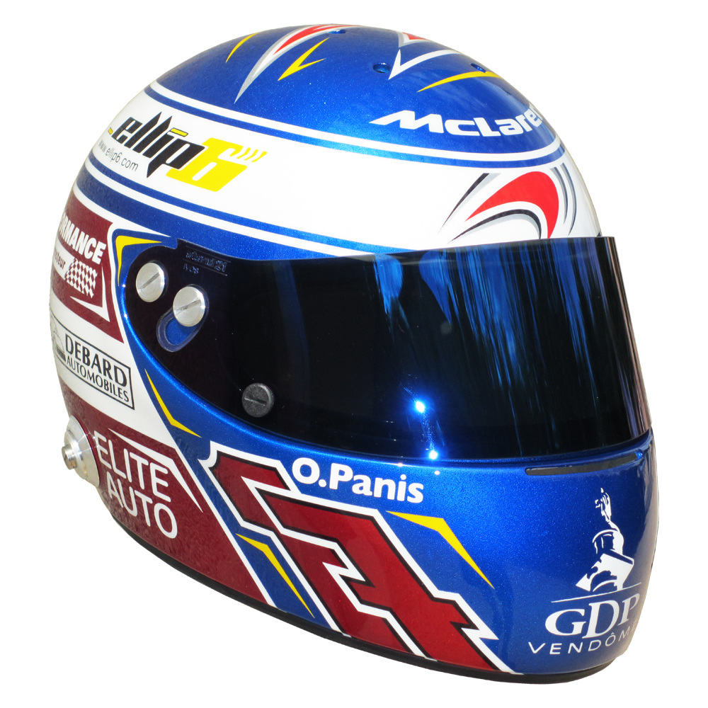 Formule 1 2013 Olivier PANIS #2 Casque Stand 21 IVOS, peint par Christian Roux / Rainbow Colors en 2013 pour Olivier Panis, GT Tour Team Hexis Mc Laren. Suivant