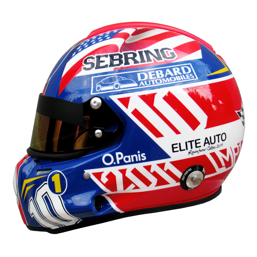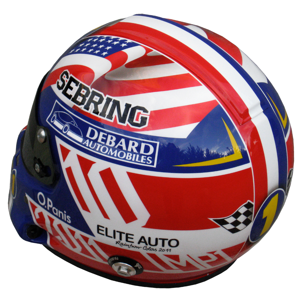 Formule 1 2011 Olivier PANIS #5 Casque Stilo ST 4 F, peint par Christian Roux / Rainbow Colors en 2011 pour Olivier Panis, GT Tour, Graff Racing. Précédent Suivant