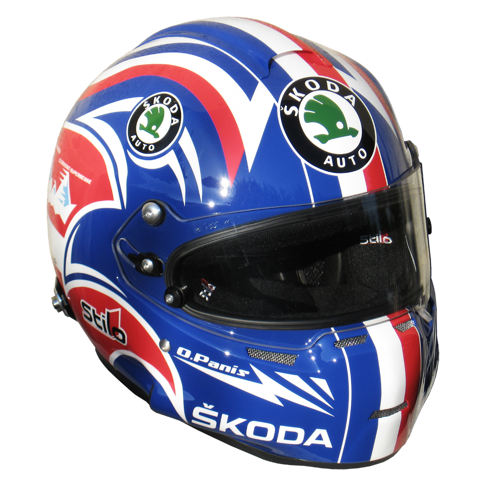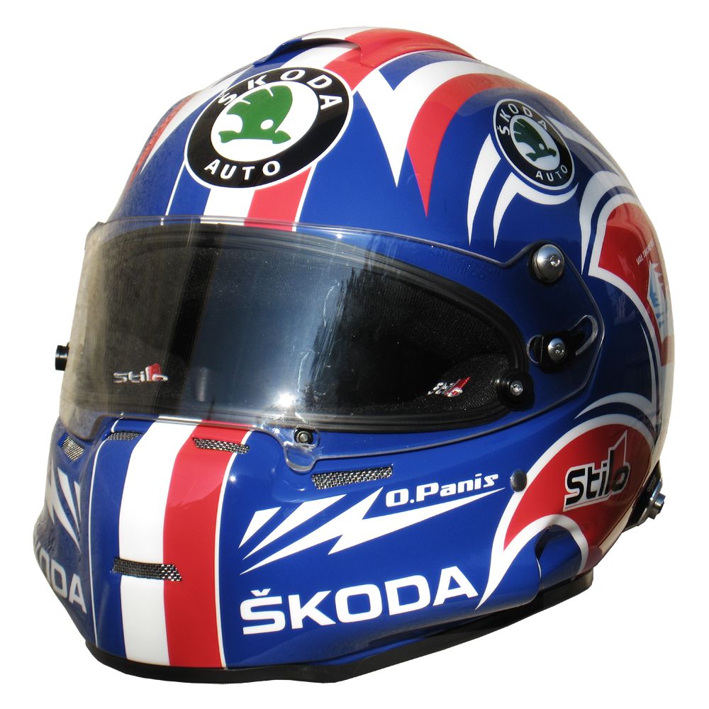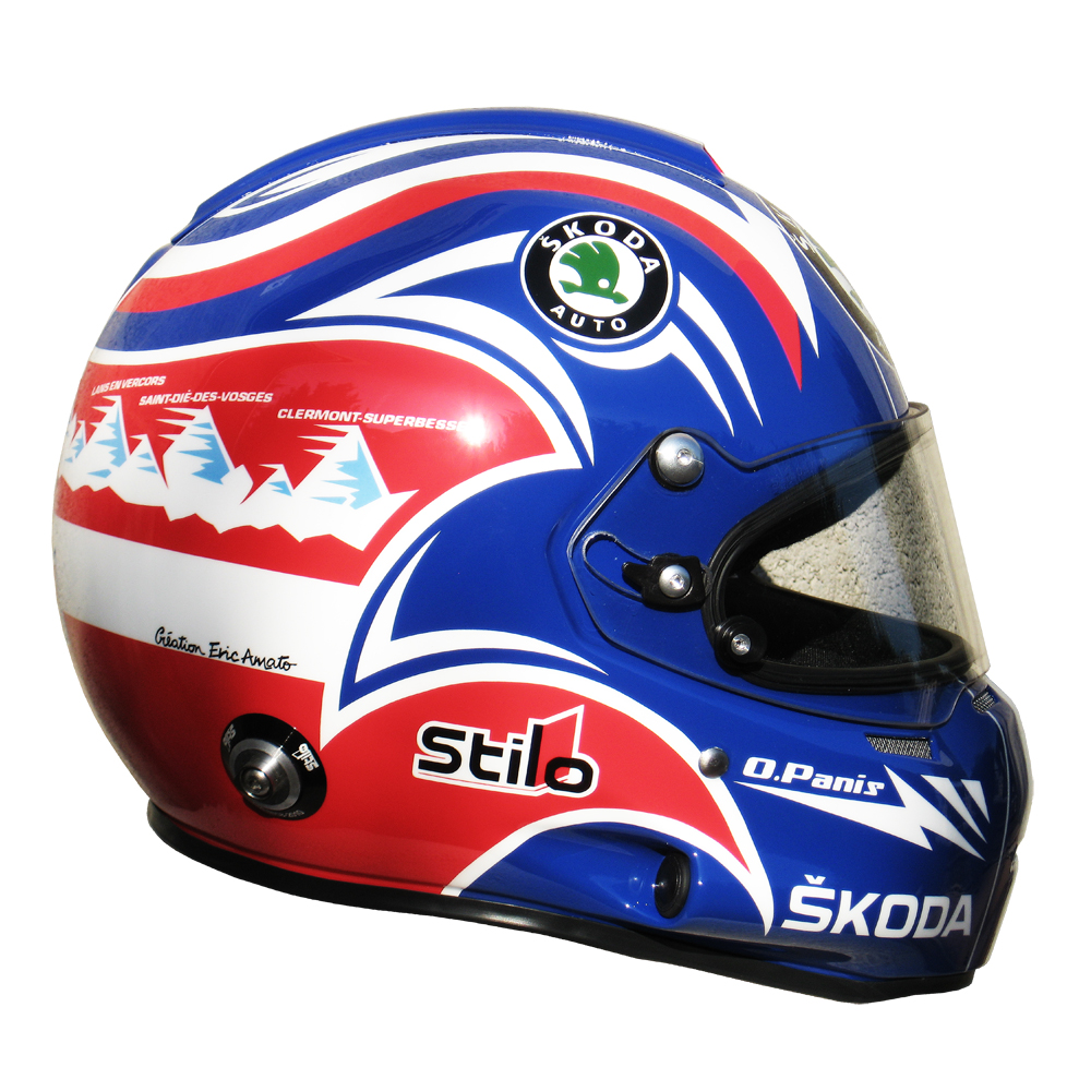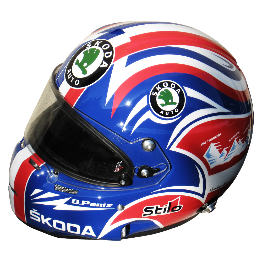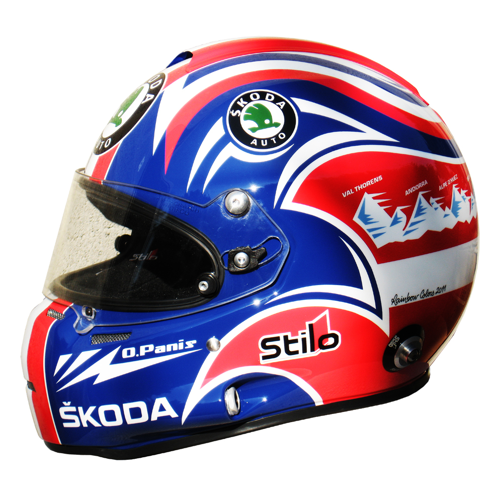 Formule 1 2011 Olivier PANIS #6 Casque Stilo ST 4 F, peint par Christian Roux / Rainbow Colors en 2011 pour Olivier Panis, Skoda Racing Team, Trophée Andros. Précédent Suivant