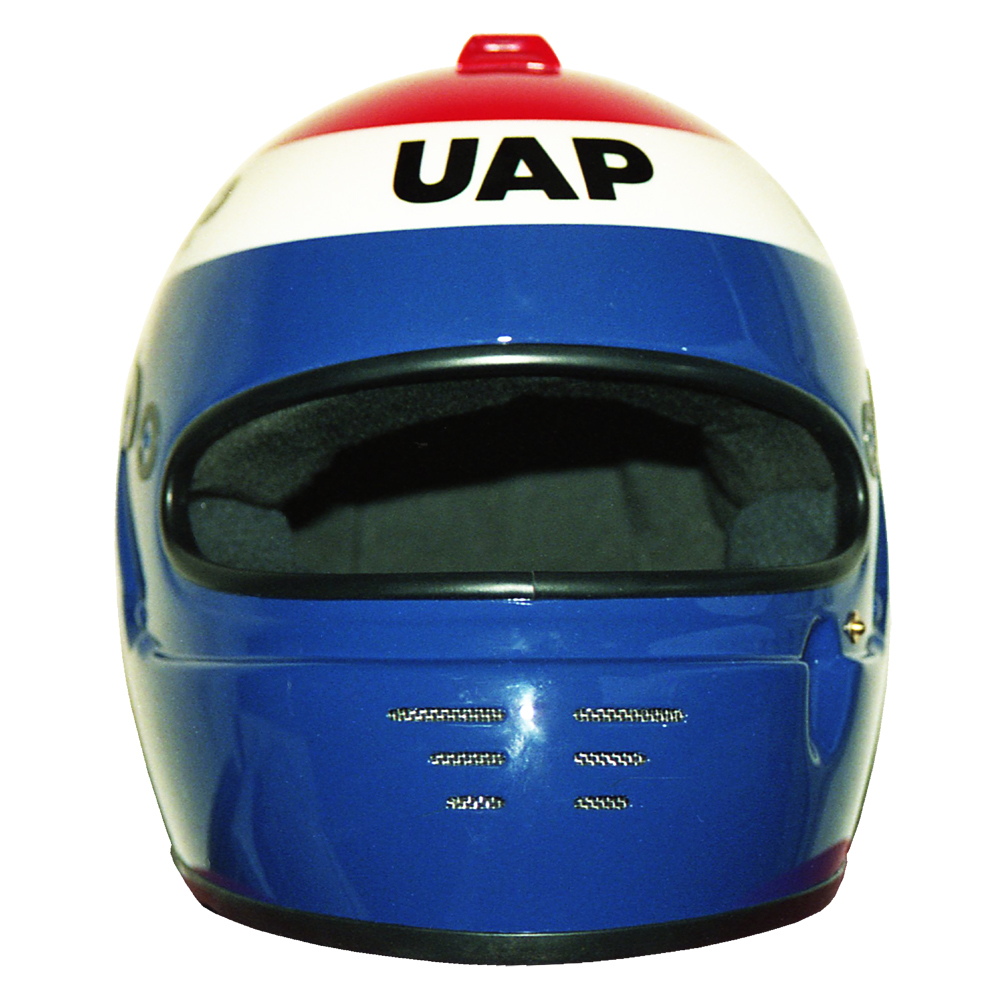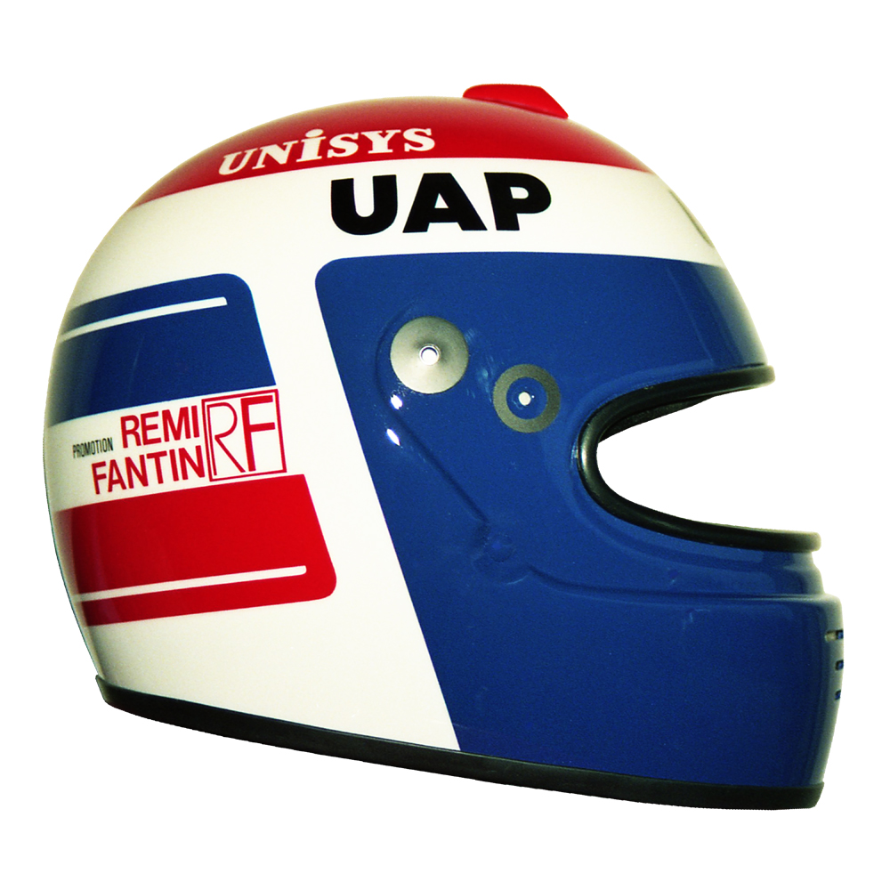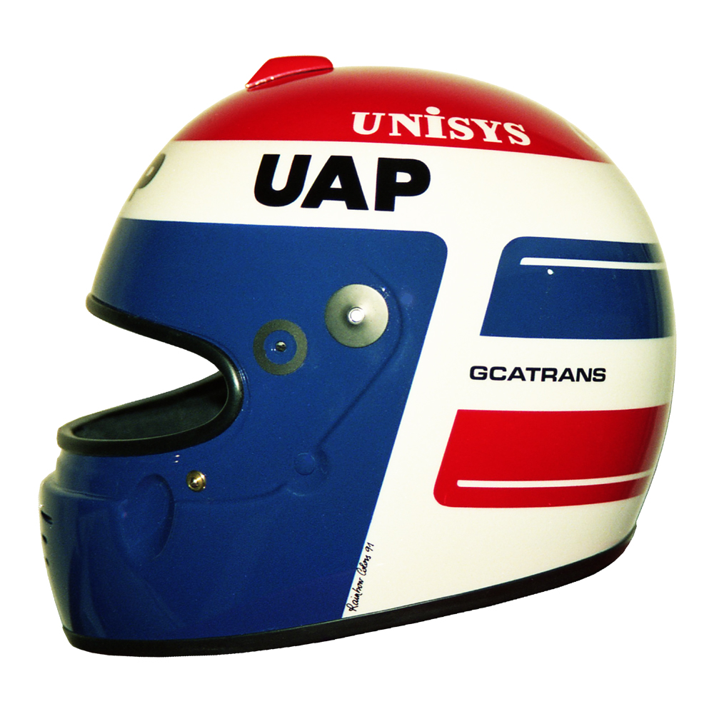 Formule 1 1991 Eric BERNARD #1 Casque Arai GP 3, peint par Christian Roux / Rainbow Colors en 1991 pour Eric Bernard, Écurie Larrousse, Championnat du Monde de Formule 1. Précédent Suivant
