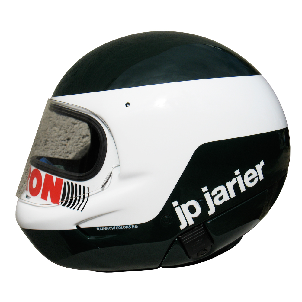 Formule 1 1988 Jean Pierre JARIER Casque Nefsud Auto, peint par Christian Roux / Rainbow Colors en 1988 pour Jean Pierre Jarier, Team Citroën Sport, Championnat de France Superproduction. Précédent Suivant